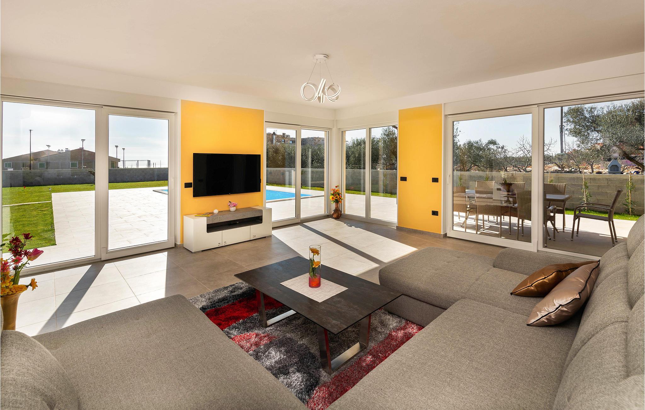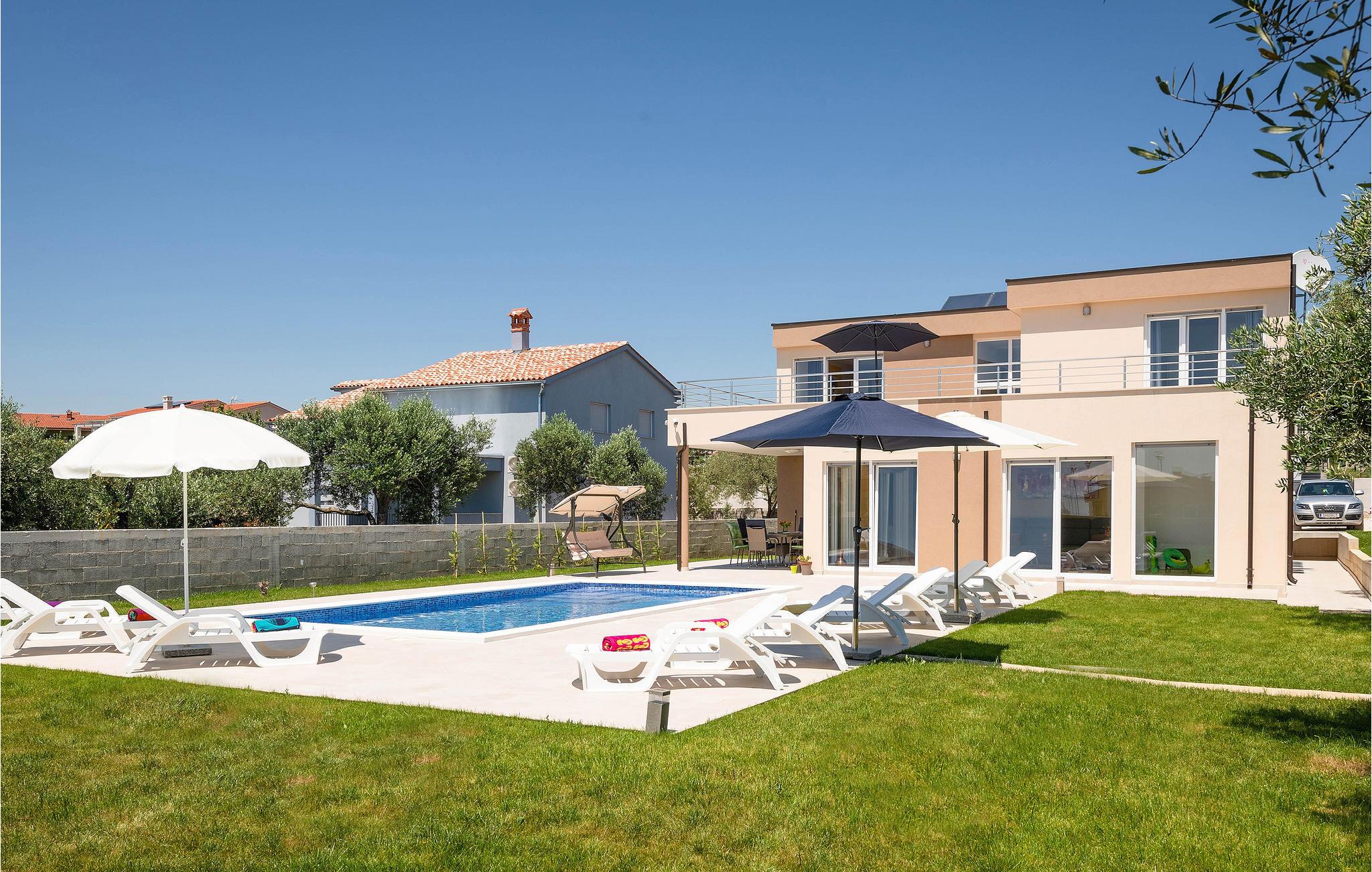 Dieses schöne Haus mit Pool lädt zum Ausruhen und Entspannen ein. Es befindet sich in der malerischen istrischen Stadt Vodnjan ist modern eingerichtet. Der Wohnbereich ist elegant und offen. Der Garten wird von einem schönen Außenpool dominiert, der sich ideal zur Erfrischung an heißen Sommertagen eignet. Auf den Terrassen können Sie sich entspannen und den Blick auf die Landschaft genießen. Die Lage ist ideal für aktive Ferien und die Erkundung der Umgebung. In Vodnjan können Sie die Basilika St. Blaise mit dem höchsten Kirchturm Istriens und einer großen Sammlung von Mumien besuchen. Von der Uferpromenade des nahe gelegenen Fažana, einem kleinen Fischerdorf, fahren täglich Touristenboote in Richtung Brijuni-Nationalpark. Wenn Sie von Vodnjan weiter westlich fahren, werden Sie vom schönen Rovinj und seiner malerischen Altstadt begrüßt. Im Osten finden Sie zahlreiche Buchten mit schönen Stränden und kristallklarem Meer. Wenn Sie nach Süden fahren, kommen Sie in Pula an, wo es viele Denkmäler aus der Vergangenheit gibt, wie zum Beispiel das römische Amphitheater. Im Norden sind malerische mittelalterliche Orte zu sehen, wie beispielsweise Motovun, wo jedes Jahr Ende Juli ein internationales Filmfestival stattfindet. Wenn Sie die istrische Halbinsel entlang fahren, werden Sie auf viele Weinstraßen und lokale Tavernen stoßen die einheimische Köstlichkeiten anbieten. Das Haus ist ein guter Ausgangspunkt, um die lokalen Traditionen und Bräuche kennenzulernen.