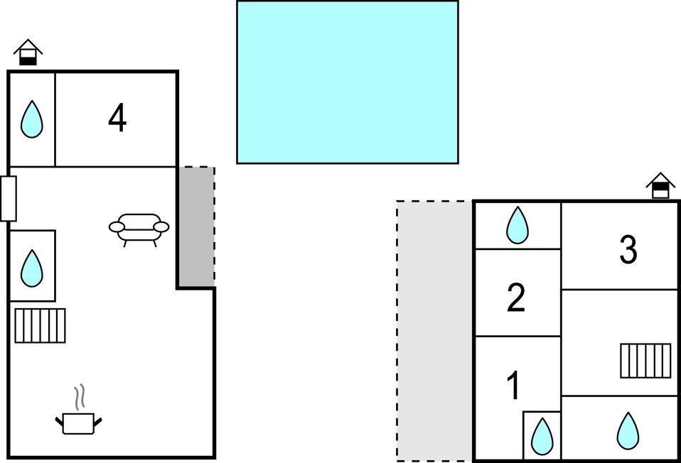 Badezimmer 5m2 (nr. 1) - WC. Warmes und kaltes Wasser. Dusche