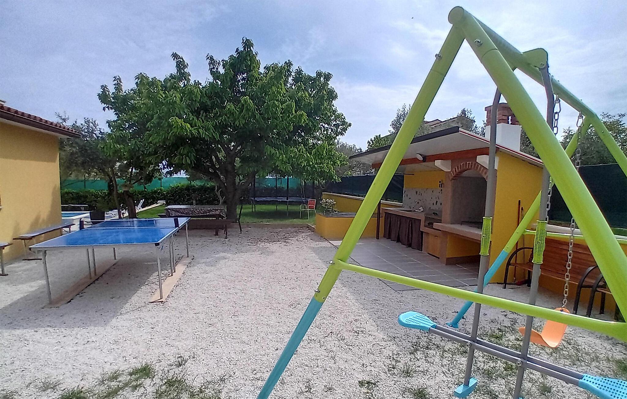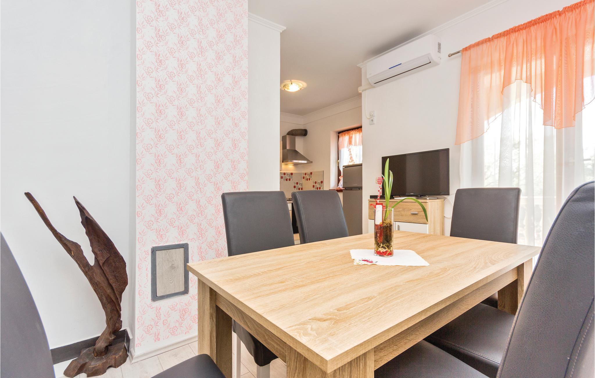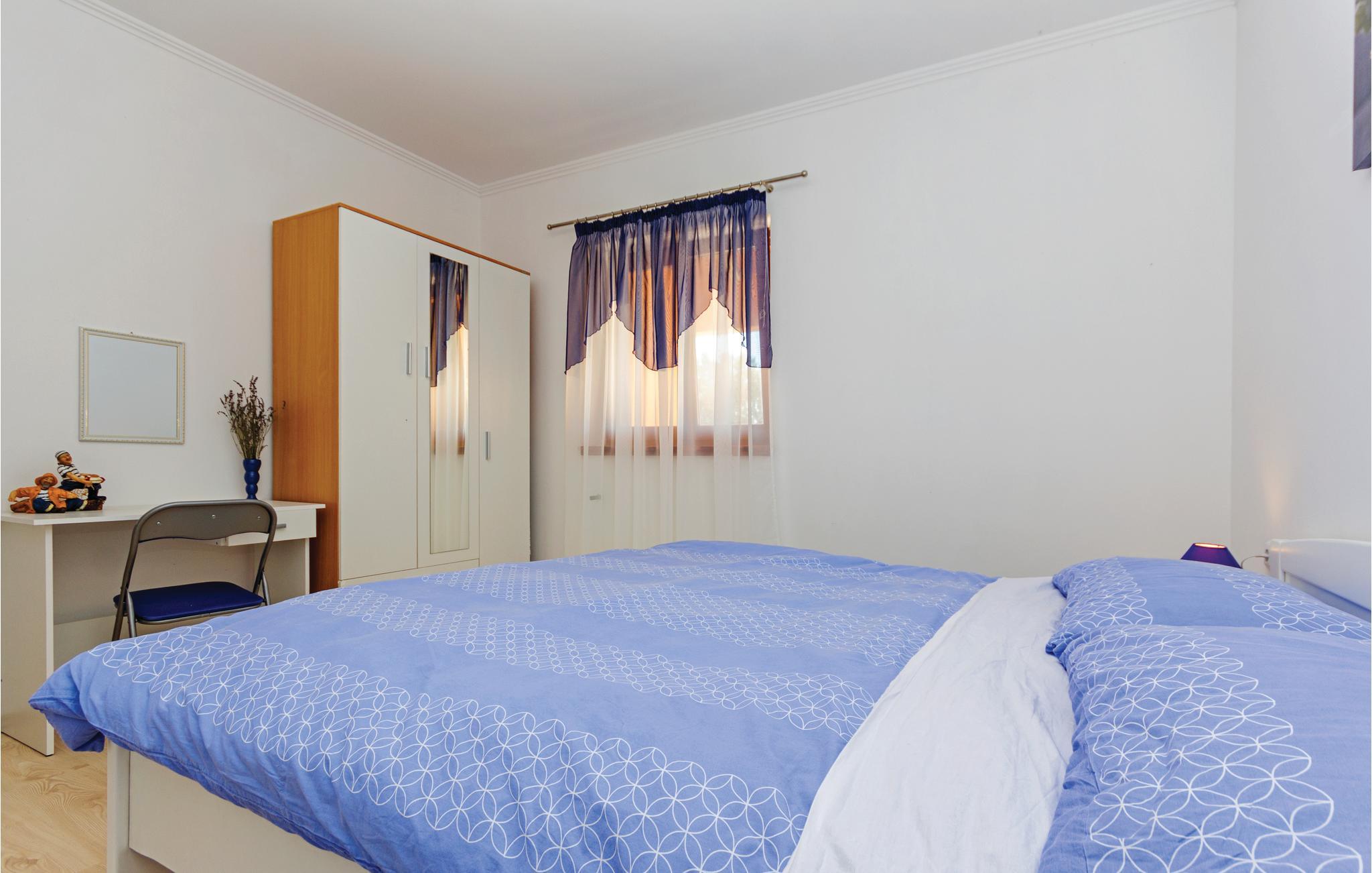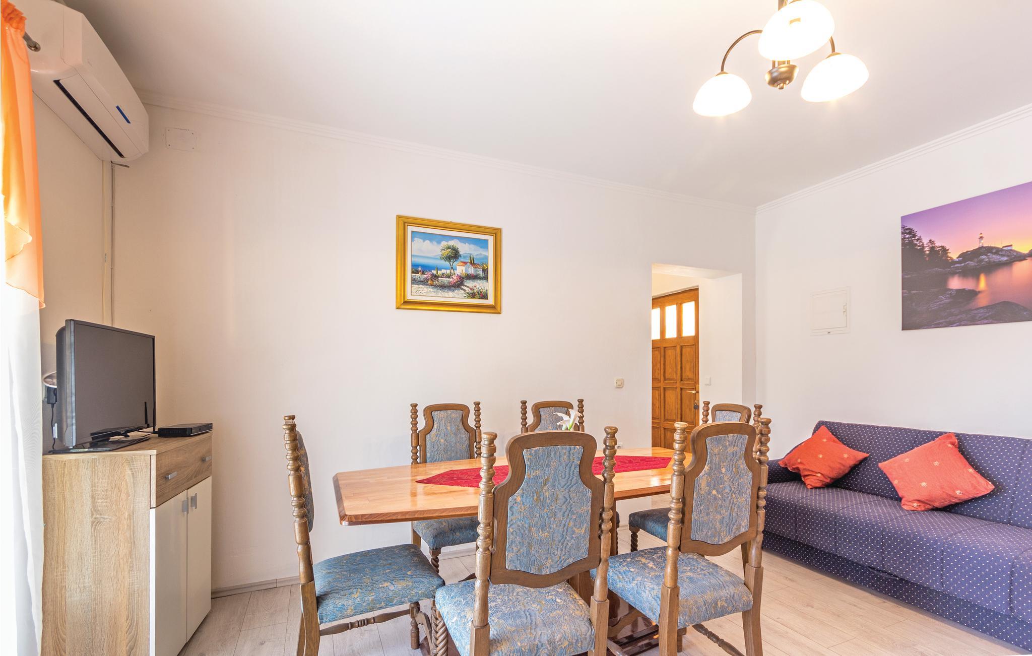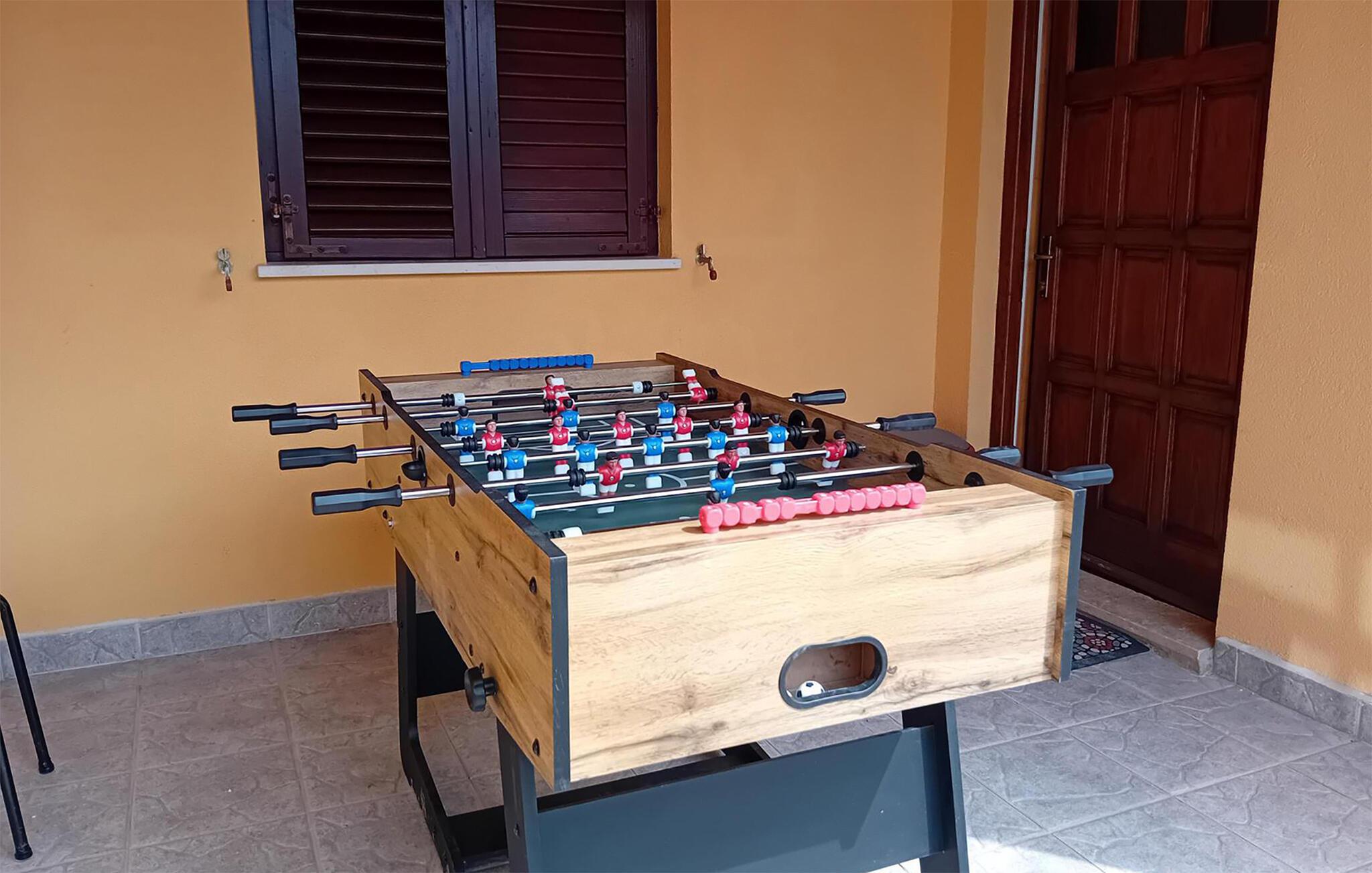 Dette vakre feriehuset ligger på en romslig tomt omgitt av olivenlunder. Det består av tre separate enheter som er forbundet med utvendige trapper, og er ideelt for flere familier eller en gruppe venner som ønsker å tilbringe ferien sammen og samtidig ha privatliv. Første etasje består av to mindre leiligheter, mens det i andre etasje er en romslig boenhet med terrasse med vakker utsikt over Vodnjan og området rundt. Huset er funksjonelt og praktisk innredet og har alt du trenger for en avslappende og avslappende ferie. Slapp av på de romslige terrassene, spis frokost sammen og planlegg dagen. I hagen er det et attraktivt basseng med et ekstra barnebasseng. Her kan hele familien more seg med dart, og de yngste kan boltre seg på trampolinen. Vodnjan er kjent for den vakre kirken St Blaise, hvor du kan se de bevarte mumiene til en av de beste olivenoljeprodusentene. De nærmeste strendene ligger i Faana, hvor du kan ta en dagstur med båt til Brijuni nasjonalpark.