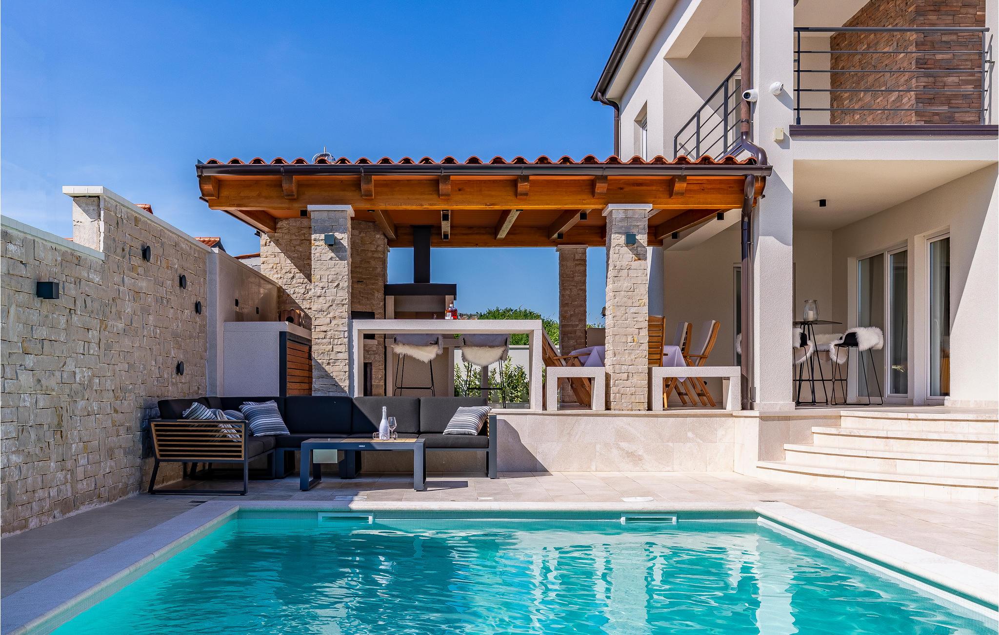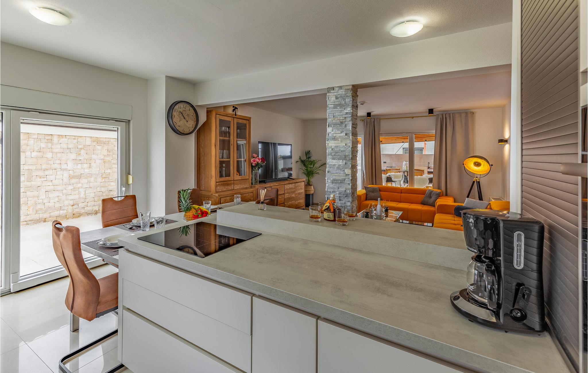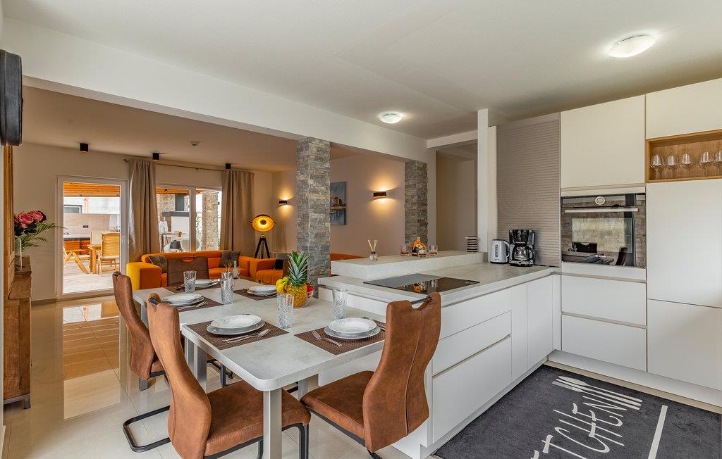 Du vil elske dette koselige og idylliske feriehuset. De smakfulle møblene kombinert med varm innredning skaper en herlig feelgood-atmosfære. Her kan du og familien finne dere godt til rette og nyte ferien i Kroatia, uten å måtte unnvære noe for å få en avslappende ferie. Dette feriehuset har også et basseng og en vakker hage som innbyr til soling og avslapning. Her kan du lene deg tilbake og slappe av på solsengene eller leke med barna i hagen.