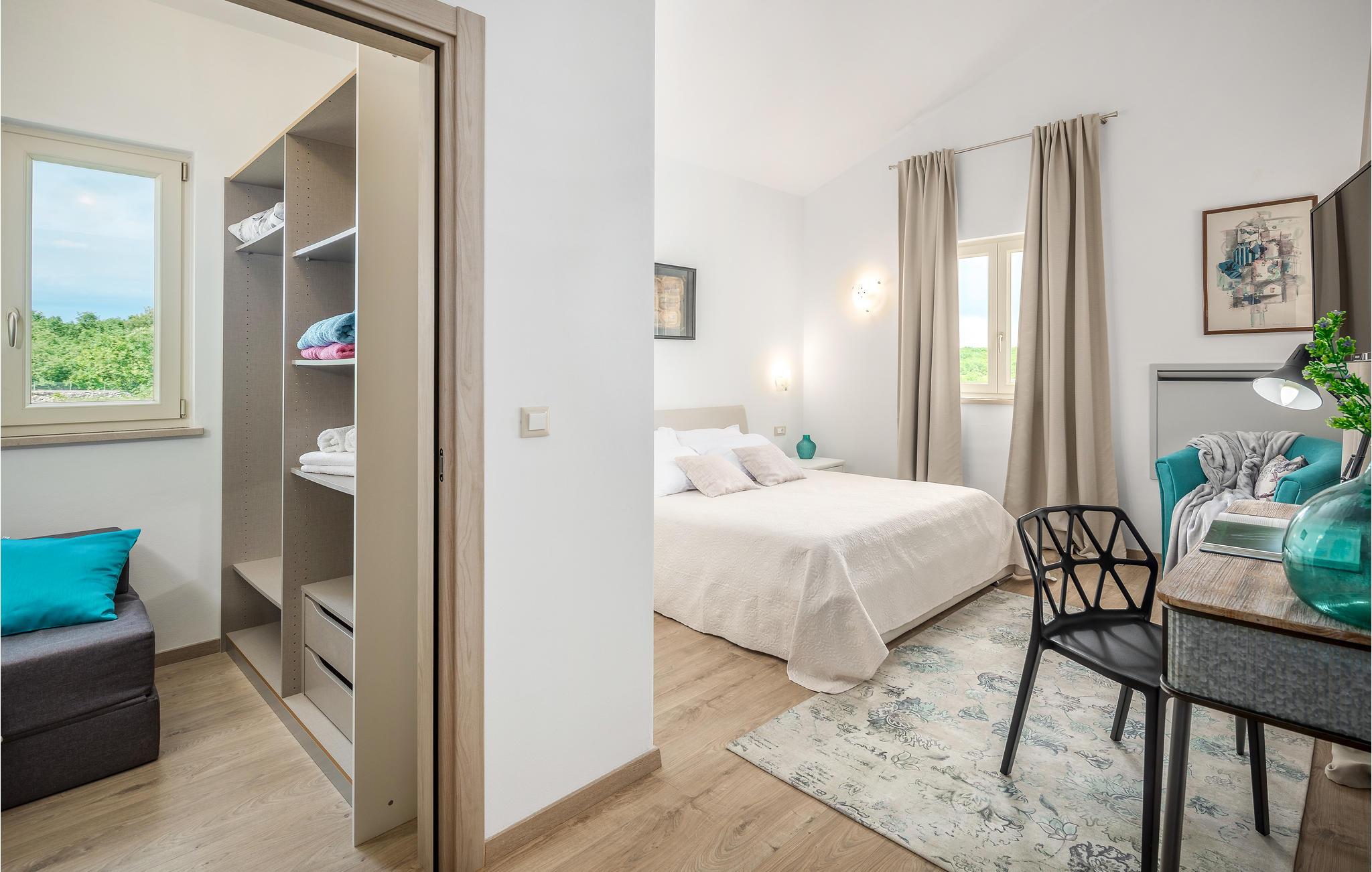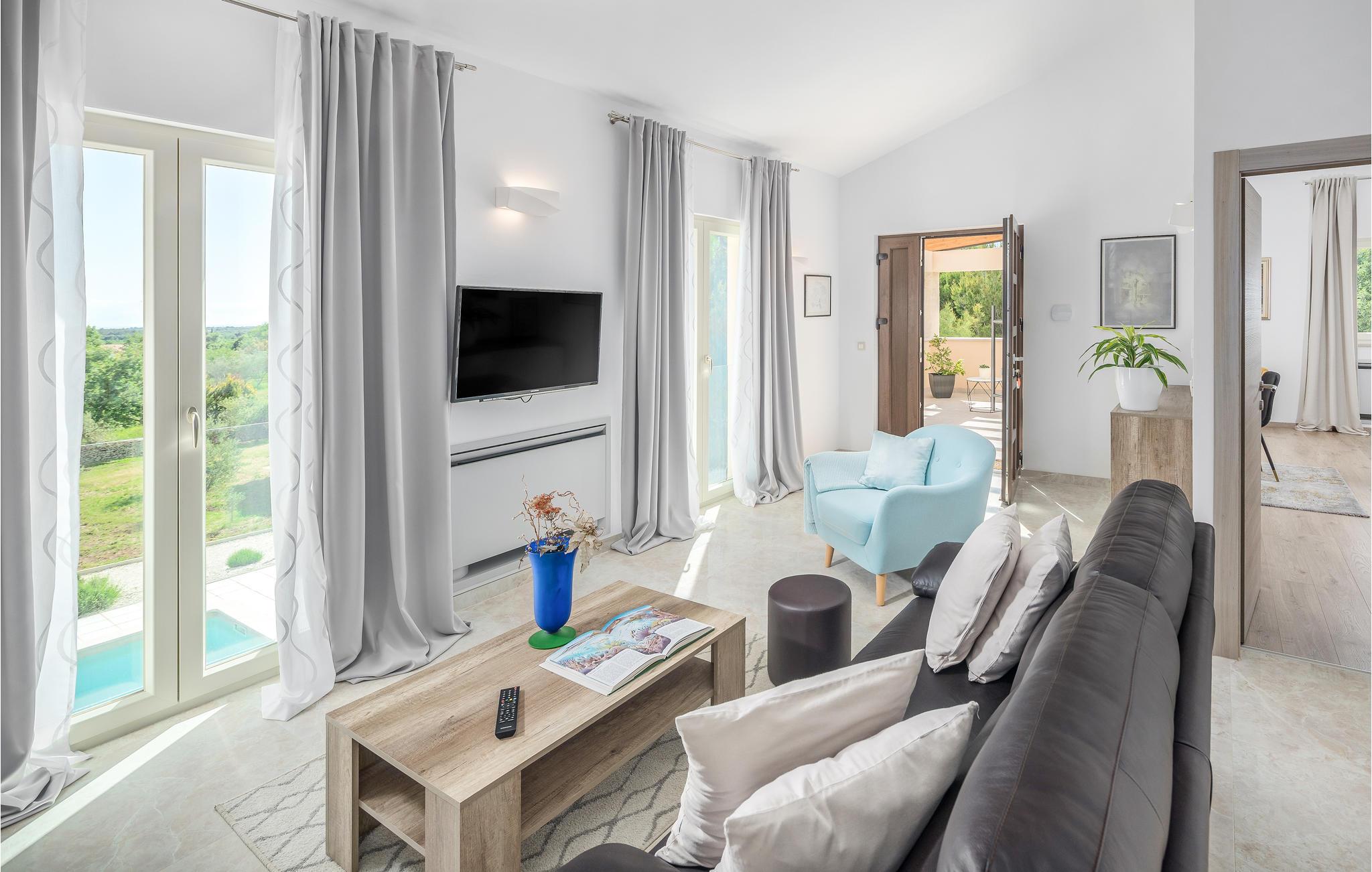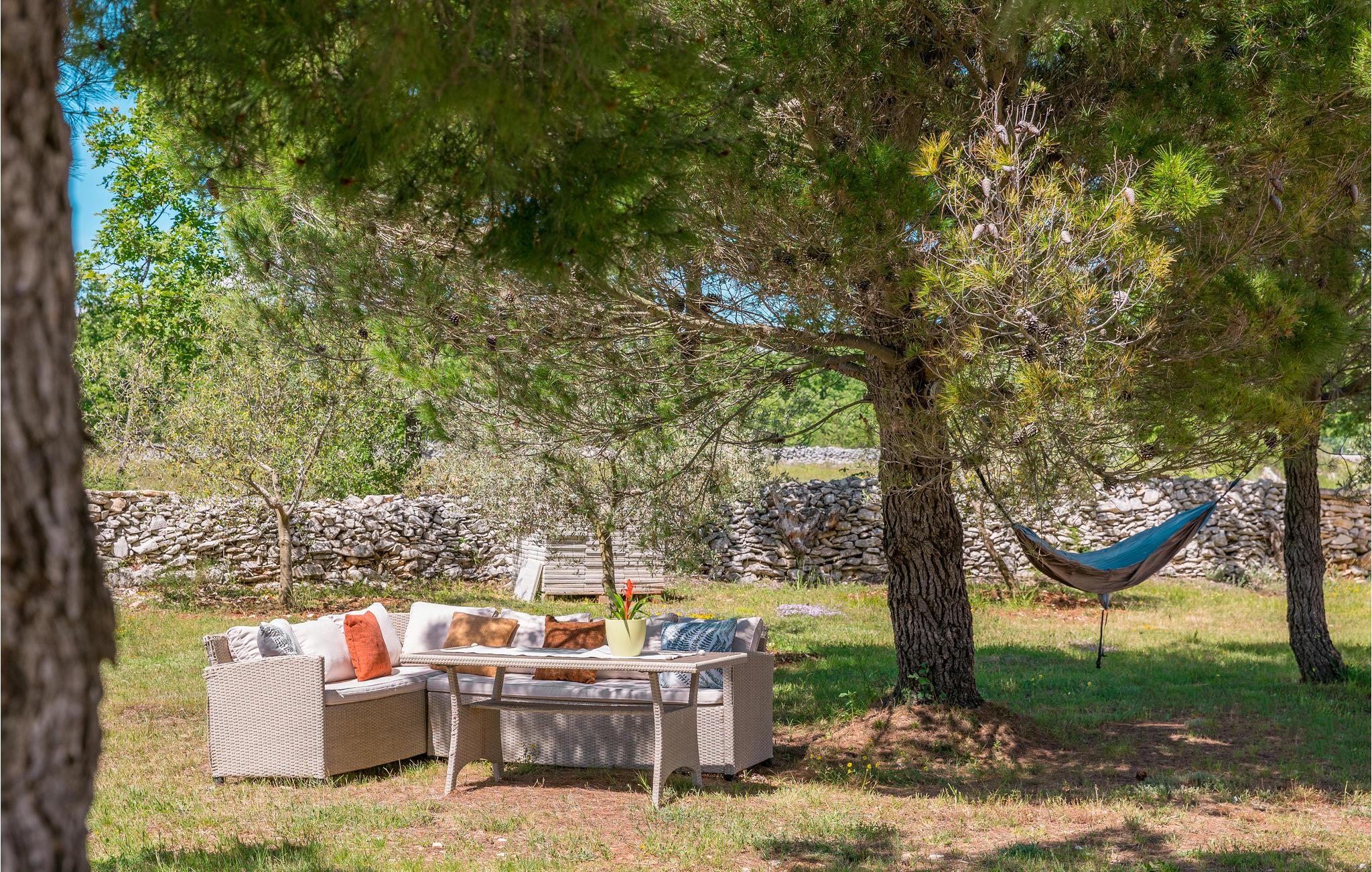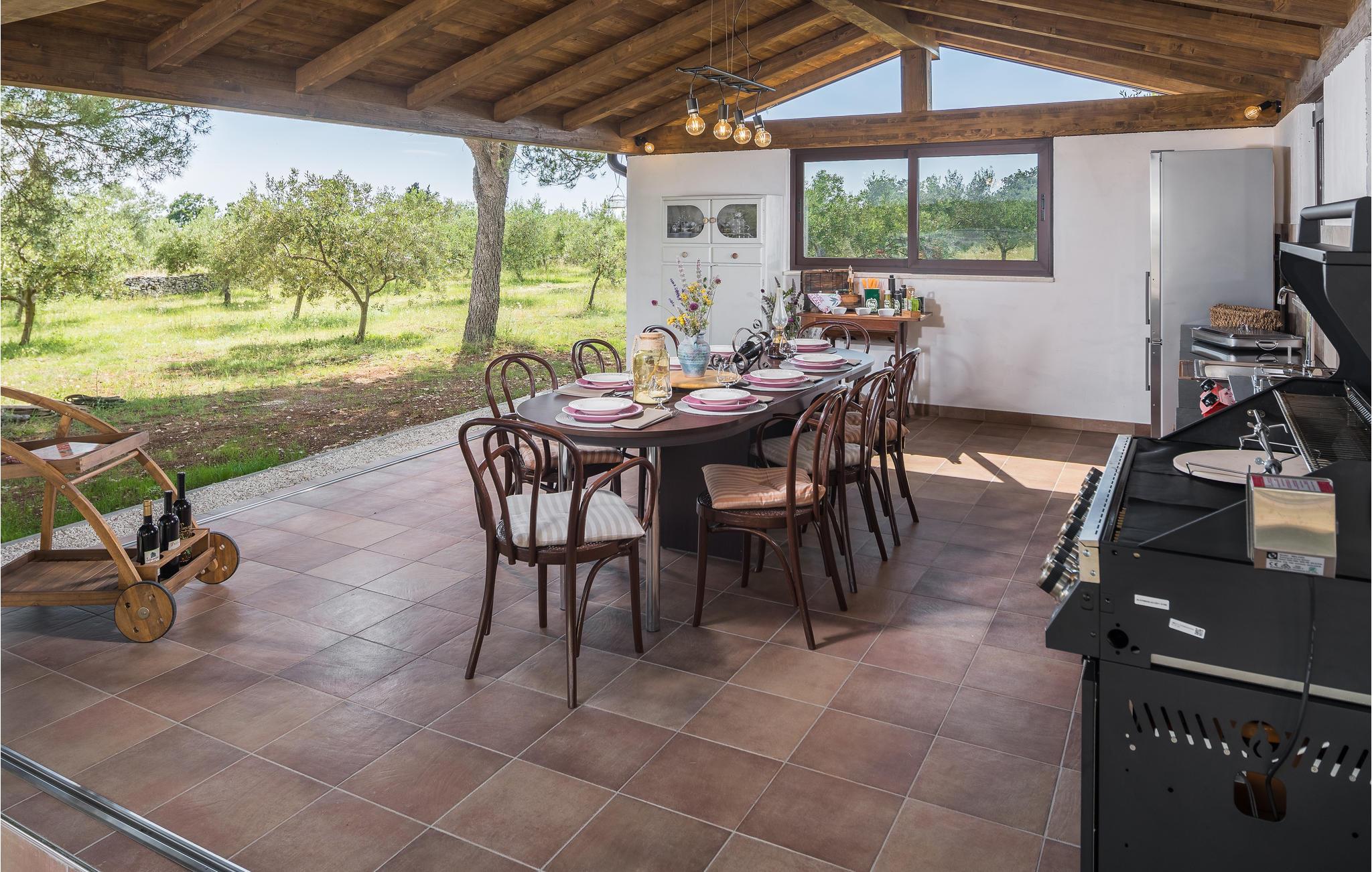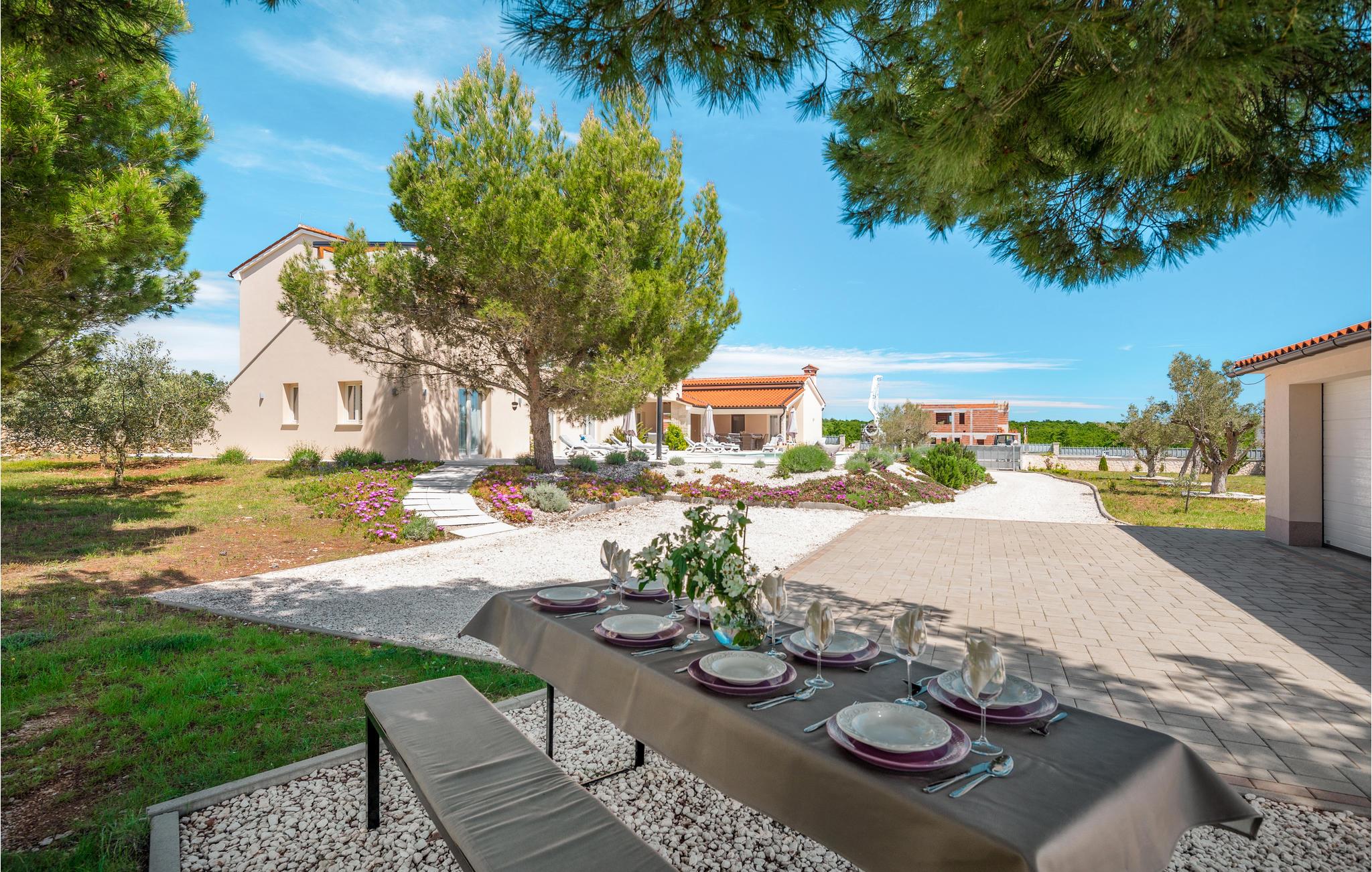 Dette luksuriøse feriehuset med basseng ligger i en liten istrisk landsby ved siden av Vodnjan, ikke langt fra Pula, den største byen i Istria. Huset ligger på en inngjerdet tomt med en vakker olivenlund, og tilbyr mange fritidsaktiviteter. Hver eneste detalj i huset er nøye planlagt for å maksimere komforten og sikre et hyggelig opphold. Det er fire soverom, hvorav tre har eget bad. For din fysiske velvære finnes det et treningsrom, badstue og massasjestol. Du kan tilbringe hyggelige timer i den istriske konobaen. Nyt de mange overbygde terrassene og solterrassen ved bassenget samt middelhavshagen med aromatiske urter og planter.