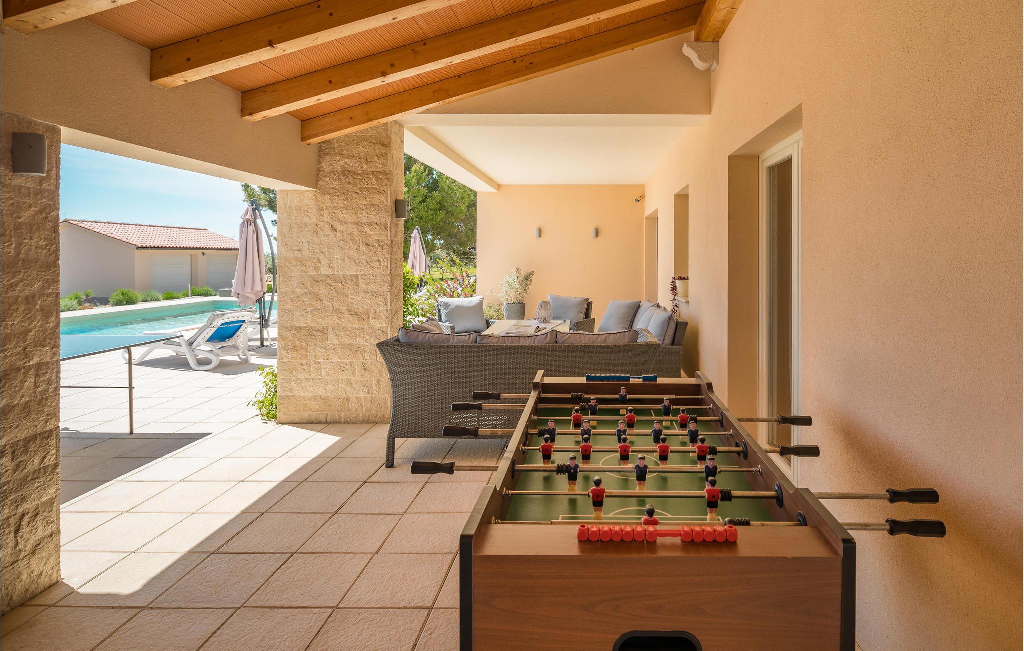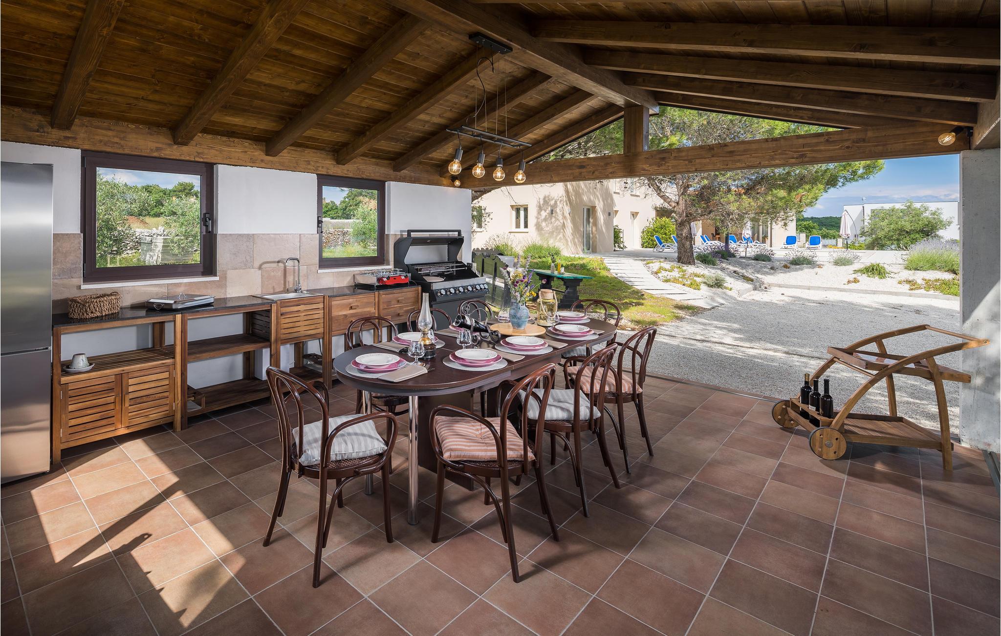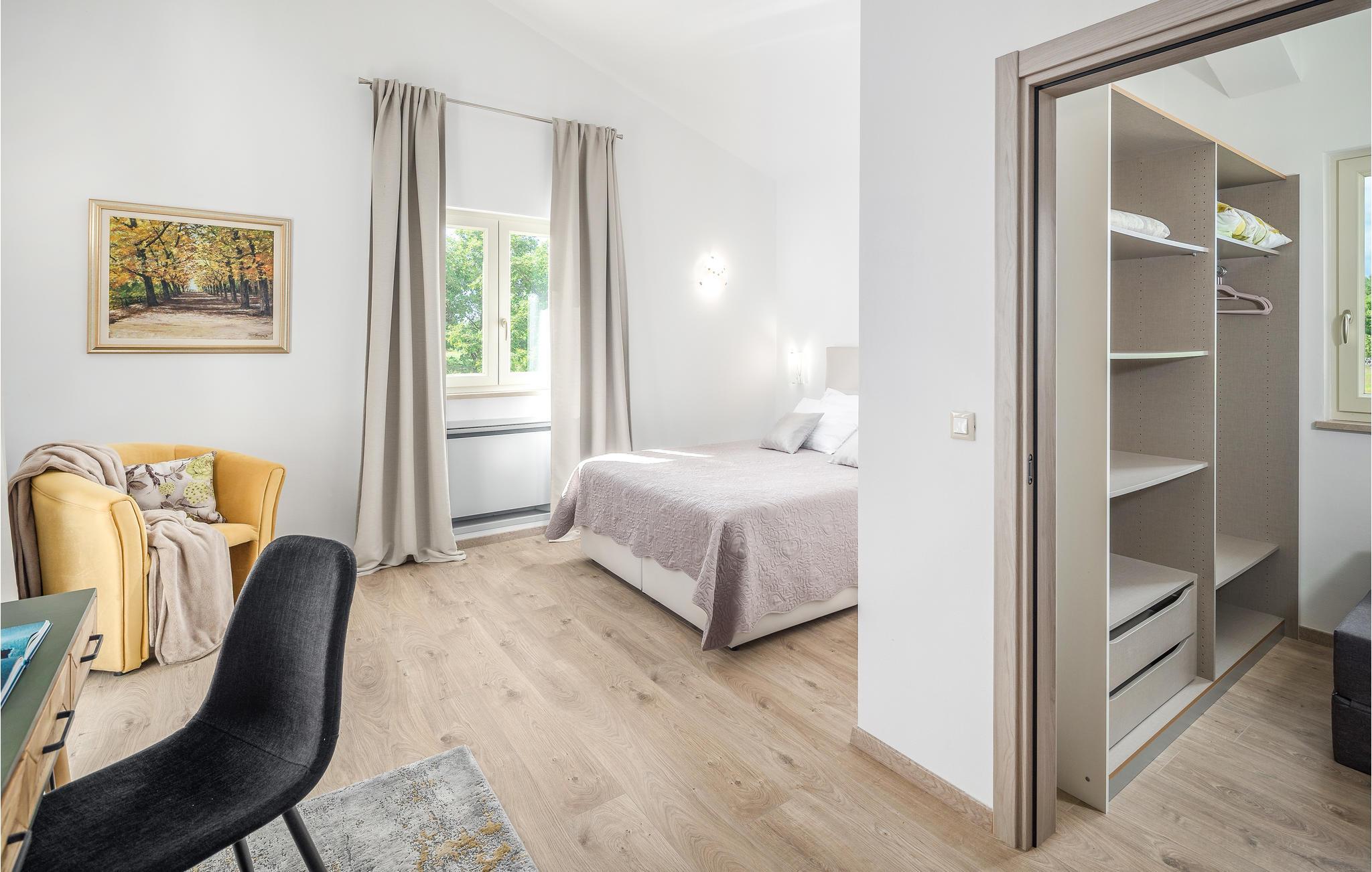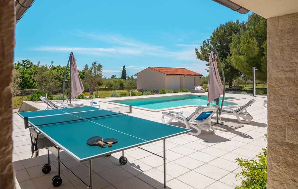 Dette luksuriøse feriehuset med basseng ligger i en liten istrisk landsby ved siden av Vodnjan, ikke langt fra Pula, den største byen i Istria. Huset ligger på en inngjerdet tomt med en vakker olivenlund, og tilbyr mange fritidsaktiviteter. Hver eneste detalj i huset er nøye planlagt for å maksimere komforten og sikre et hyggelig opphold. Det er fire soverom, hvorav tre har eget bad. For din fysiske velvære finnes det et treningsrom, badstue og massasjestol. Du kan tilbringe hyggelige timer i den istriske konobaen. Nyt de mange overbygde terrassene og solterrassen ved bassenget samt middelhavshagen med aromatiske urter og planter.