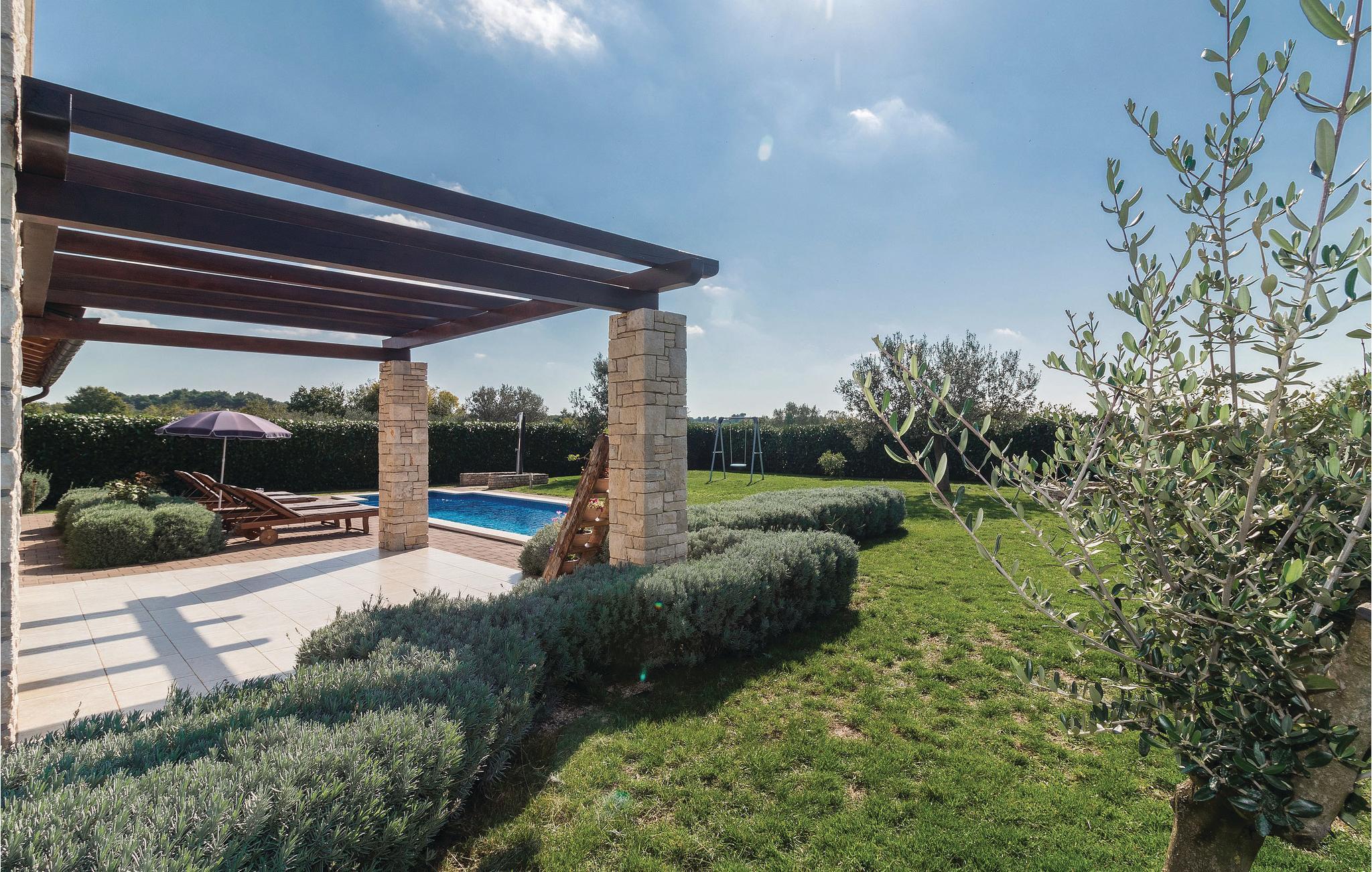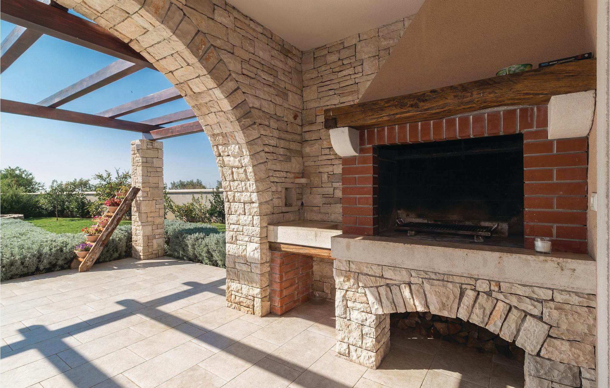 På den sørlige skråningen av Vodnjan, omgitt av vingårder og olivenlunder med utsikt over Brijuni nasjonalpark og den historiske gamlebyen i Pula, finner du dette feriehuset, ideelt for en ferie i fredelige omgivelser.