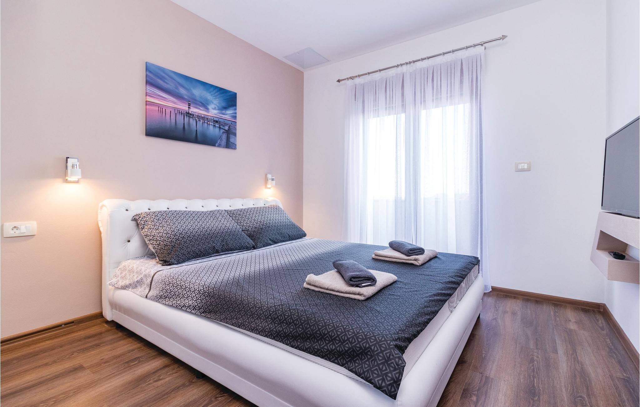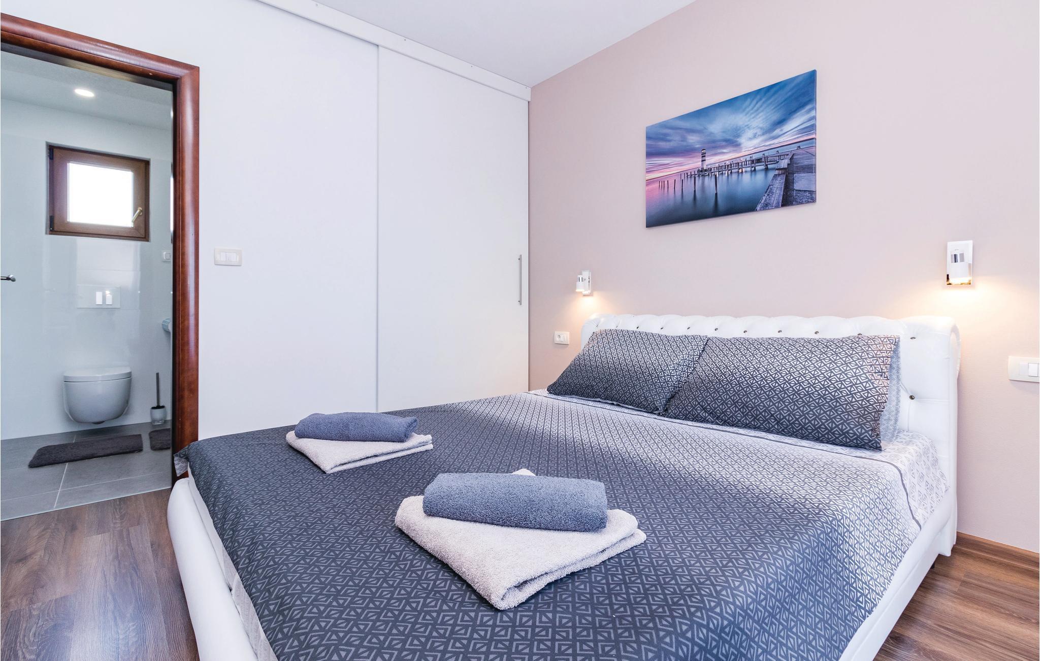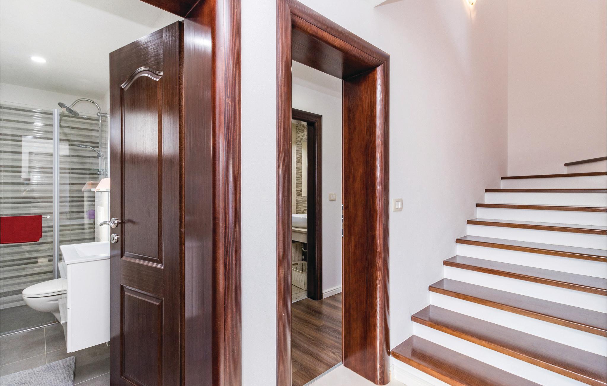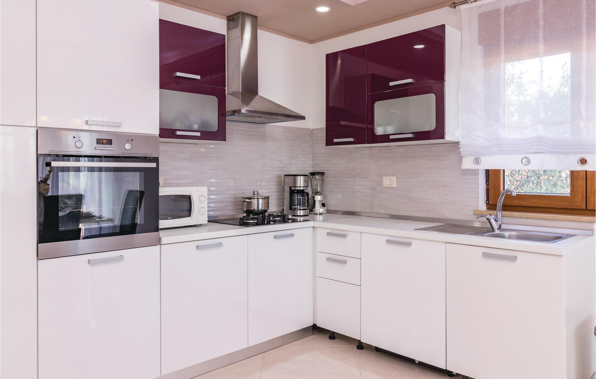 Dette vakre huset med basseng inviterer deg til å slappe av og koble av. Det ligger i en rolig del av Galiana og er vakkert og moderne innredet. Stuen er elegant og gjør oppholdet ditt enda hyggeligere. Den romslige overbygde terrassen gir deg avslappende stunder mens du nyter utsikten over bassenget, landskapet og delvis havet. Utendørsbassenget dominerer hagen og er ideelt for forfriskninger på varme sommerdager, mens de minste vil ha det gøy med å svømme. Besøk byen Vodnjan med mange arrangementer og den pittoreske Fazana med vakre strender.