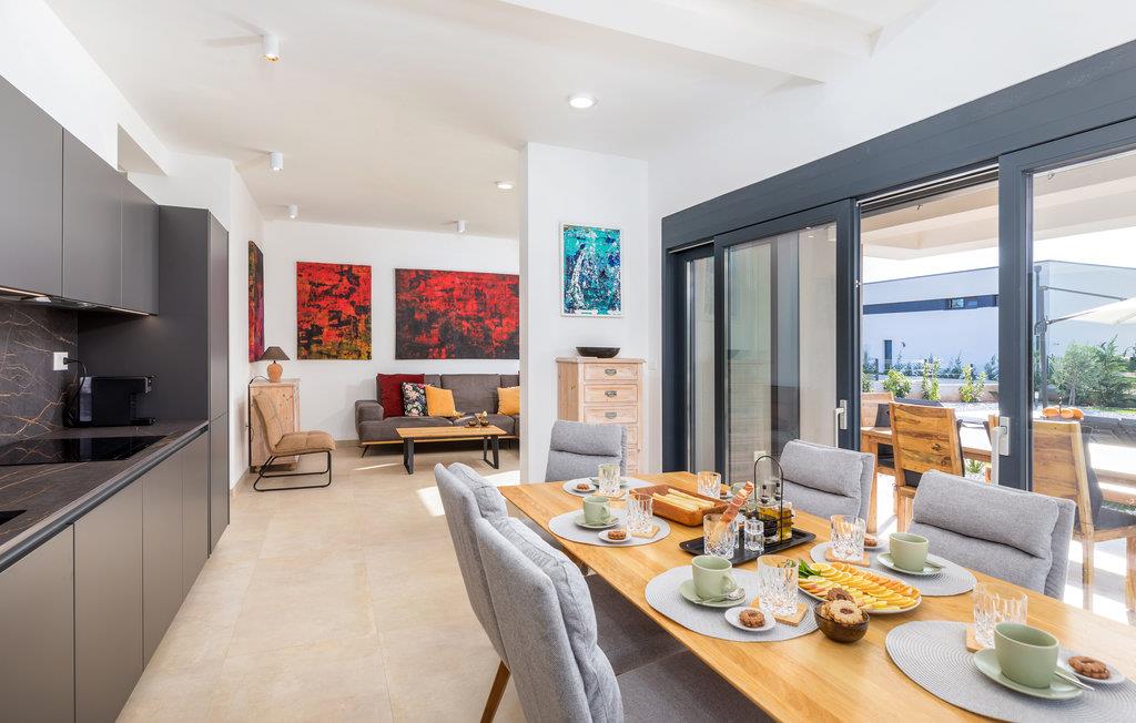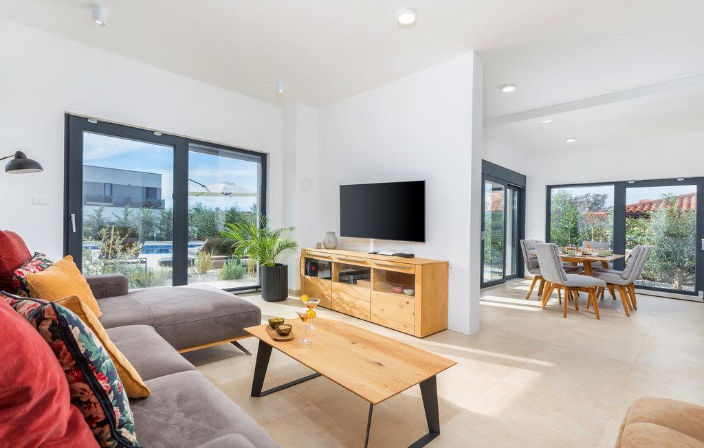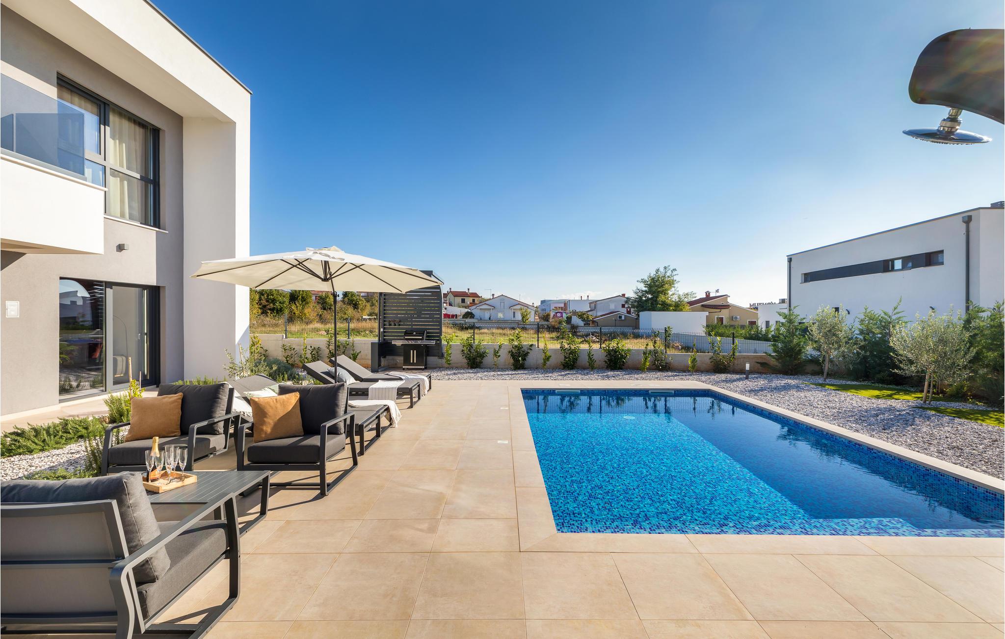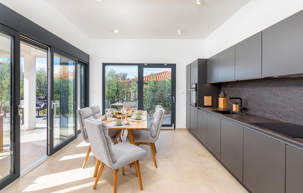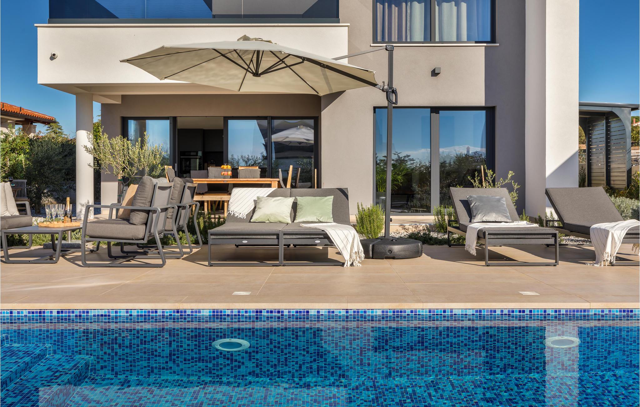 Når du tenker på ferie i Istria, ser du sikkert for deg et moderne hus med tiltalende komfort, vakker innredning og en koselig atmosfære. Det er akkurat det som venter deg i dette vakre huset. Du kan glede deg til den moderne innredningen, som for eksempel gjør matlagingen til en fornøyelse. Møbler av høy kvalitet og utvalgt kunst på veggene skaper også et trivelig miljø. Du kan tilbringe en avslappende natt i soverommene med eget bad, og om morgenen kan du spise frokost på terrassen. Mens noen fortsatt spiser, gleder nok de minste seg til å hoppe i bassenget og friske seg opp.