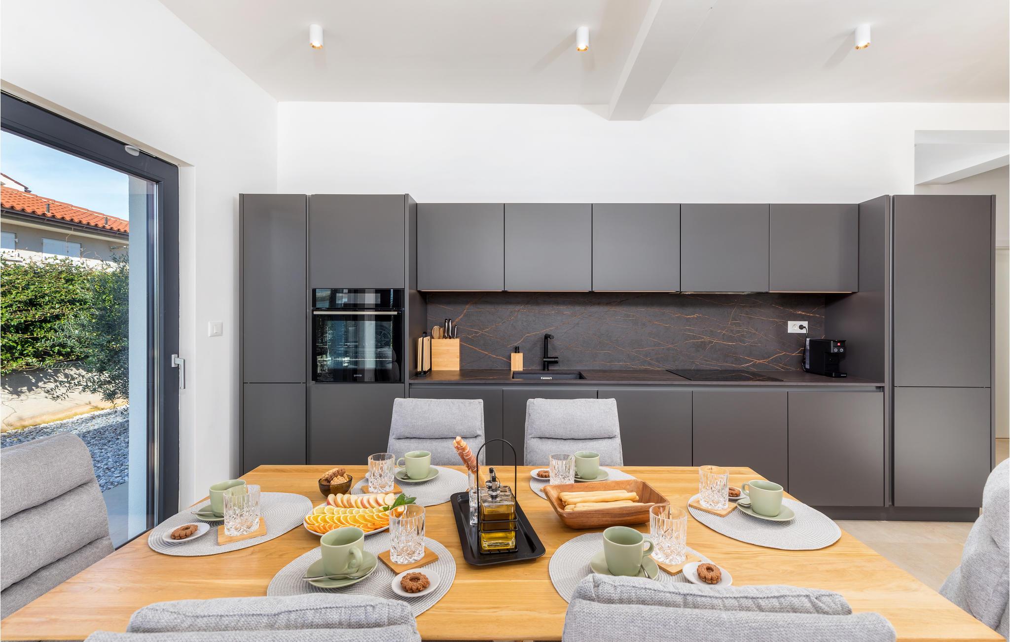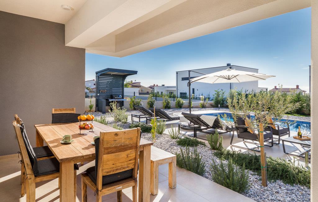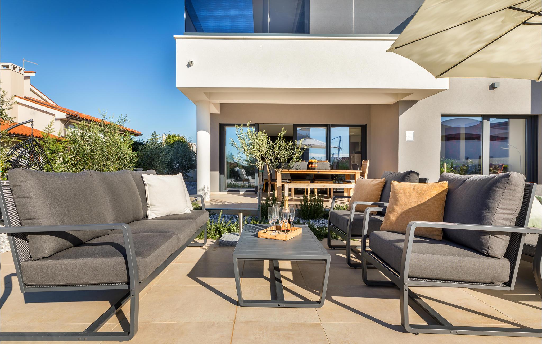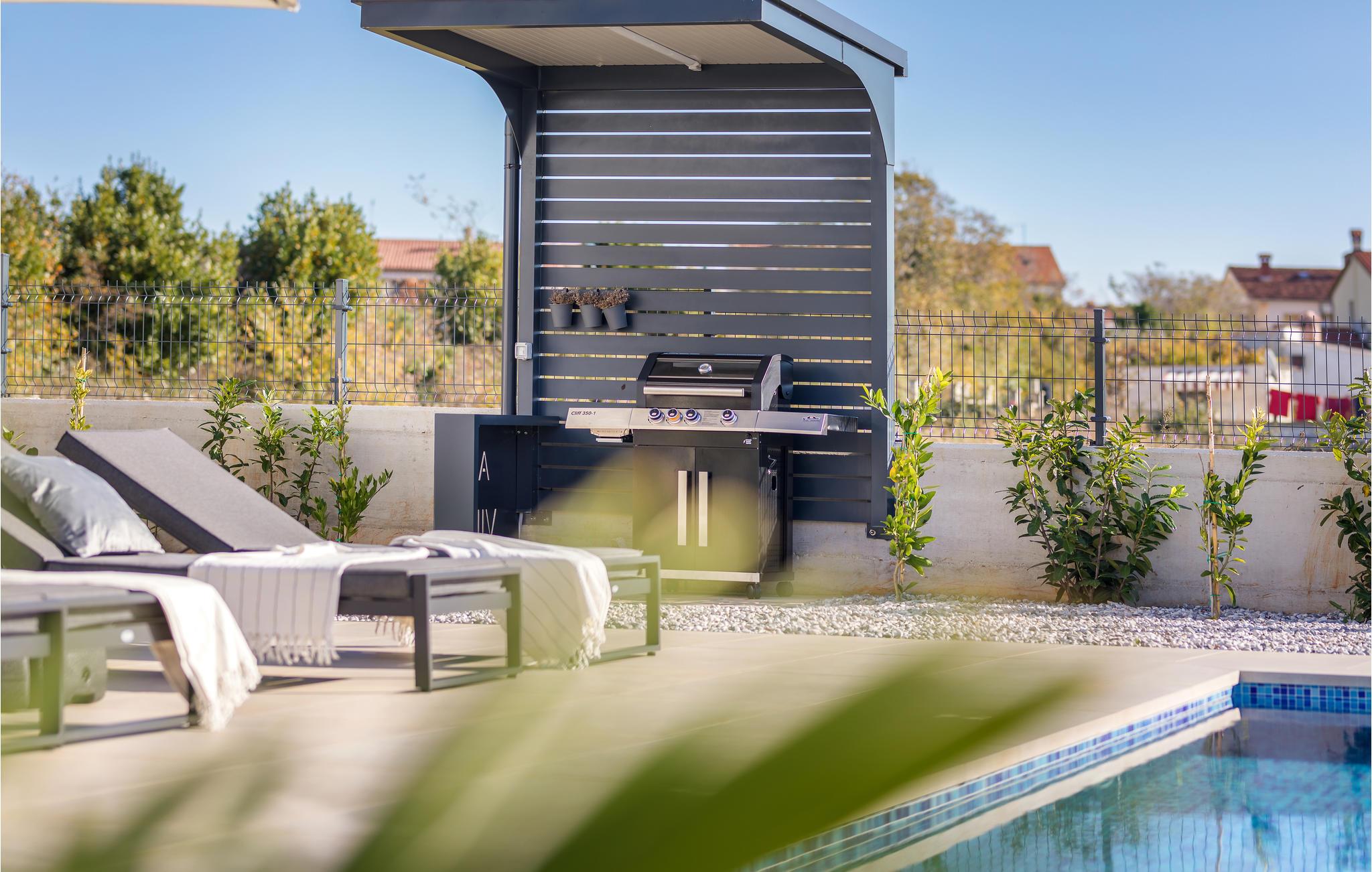 Når du tenker på ferie i Istria, ser du sikkert for deg et moderne hus med tiltalende komfort, vakker innredning og en koselig atmosfære. Det er akkurat det som venter deg i dette vakre huset. Du kan glede deg til den moderne innredningen, som for eksempel gjør matlagingen til en fornøyelse. Møbler av høy kvalitet og utvalgt kunst på veggene skaper også et trivelig miljø. Du kan tilbringe en avslappende natt i soverommene med eget bad, og om morgenen kan du spise frokost på terrassen. Mens noen fortsatt spiser, gleder nok de minste seg til å hoppe i bassenget og friske seg opp.