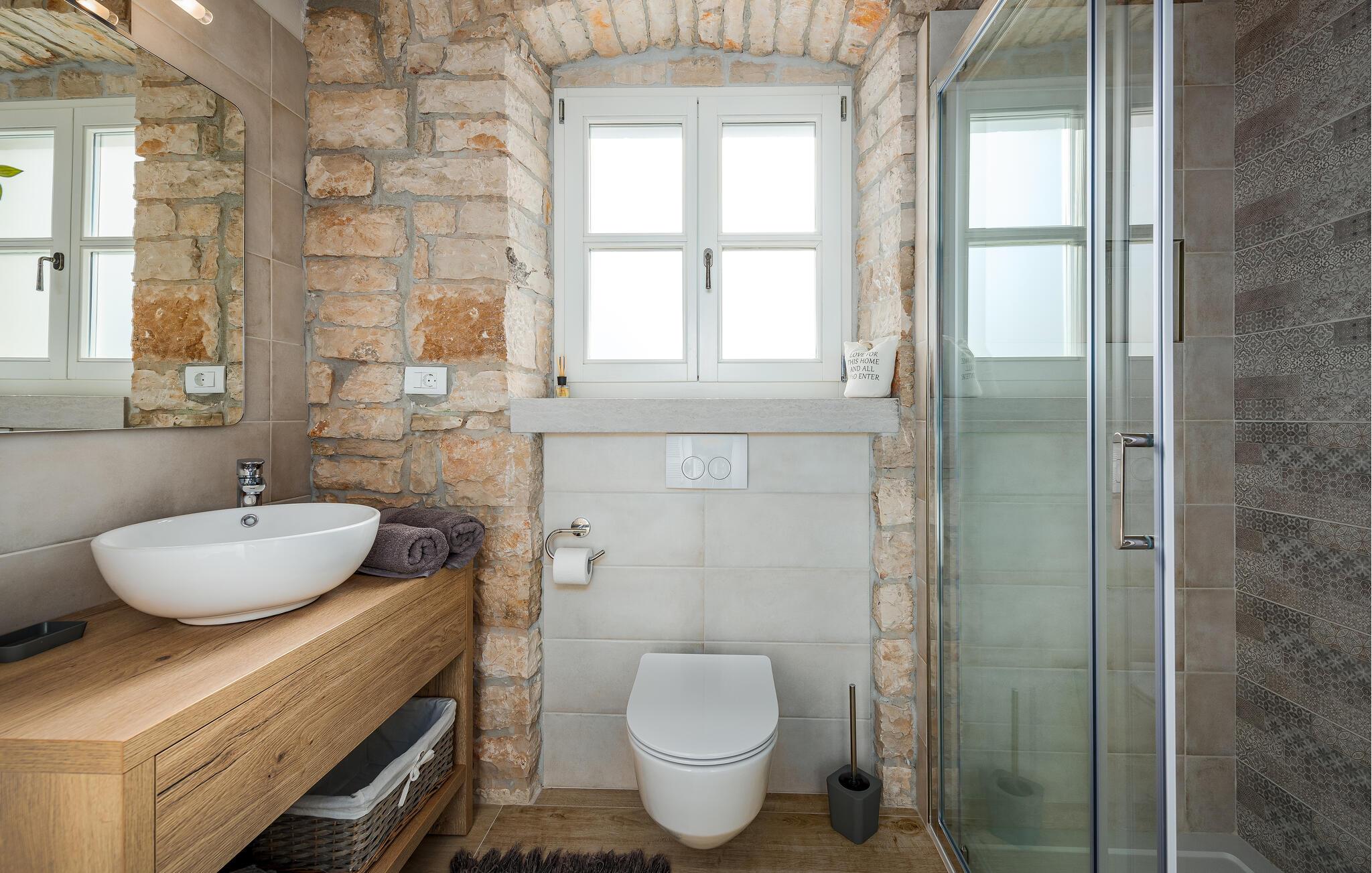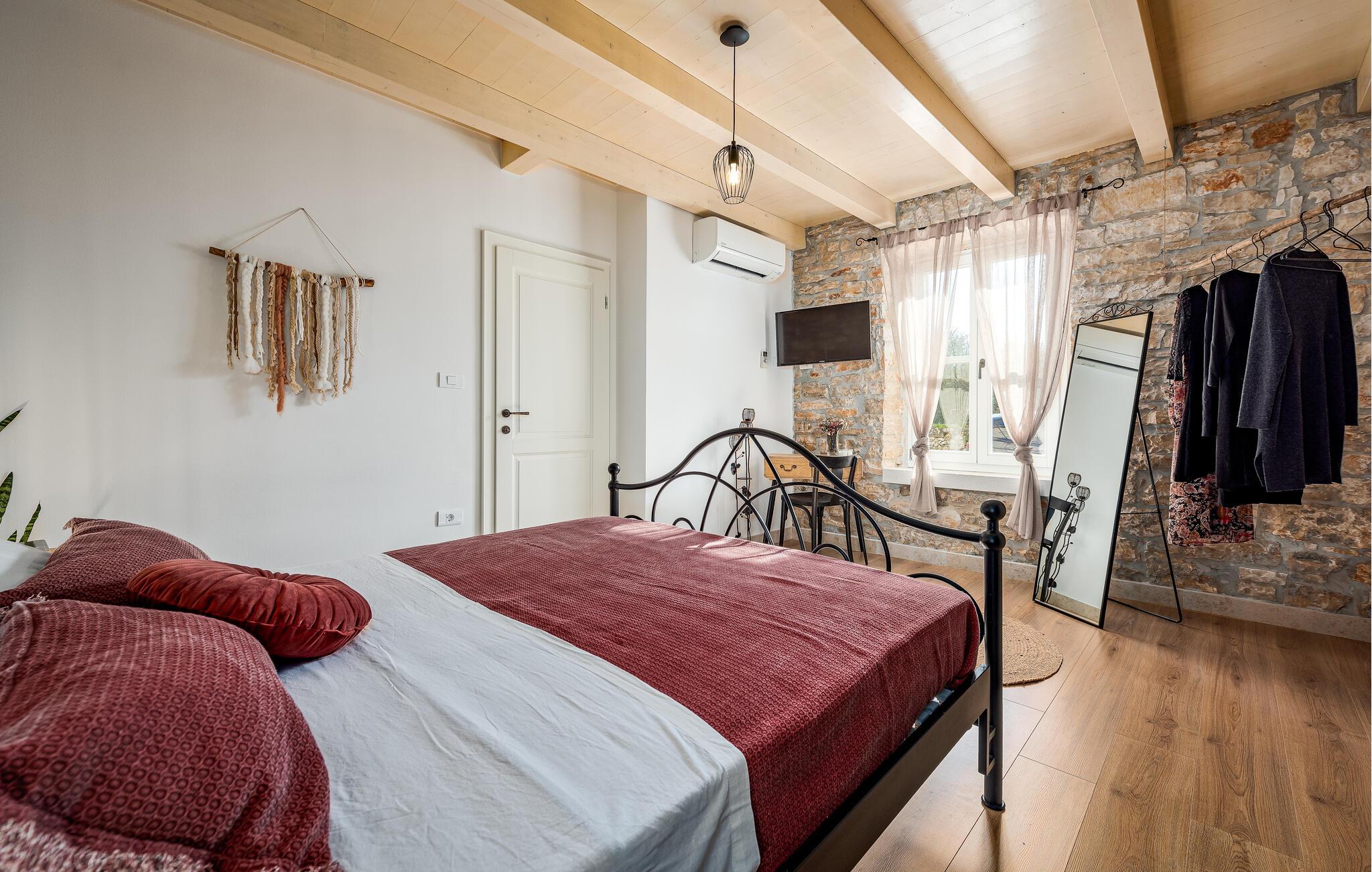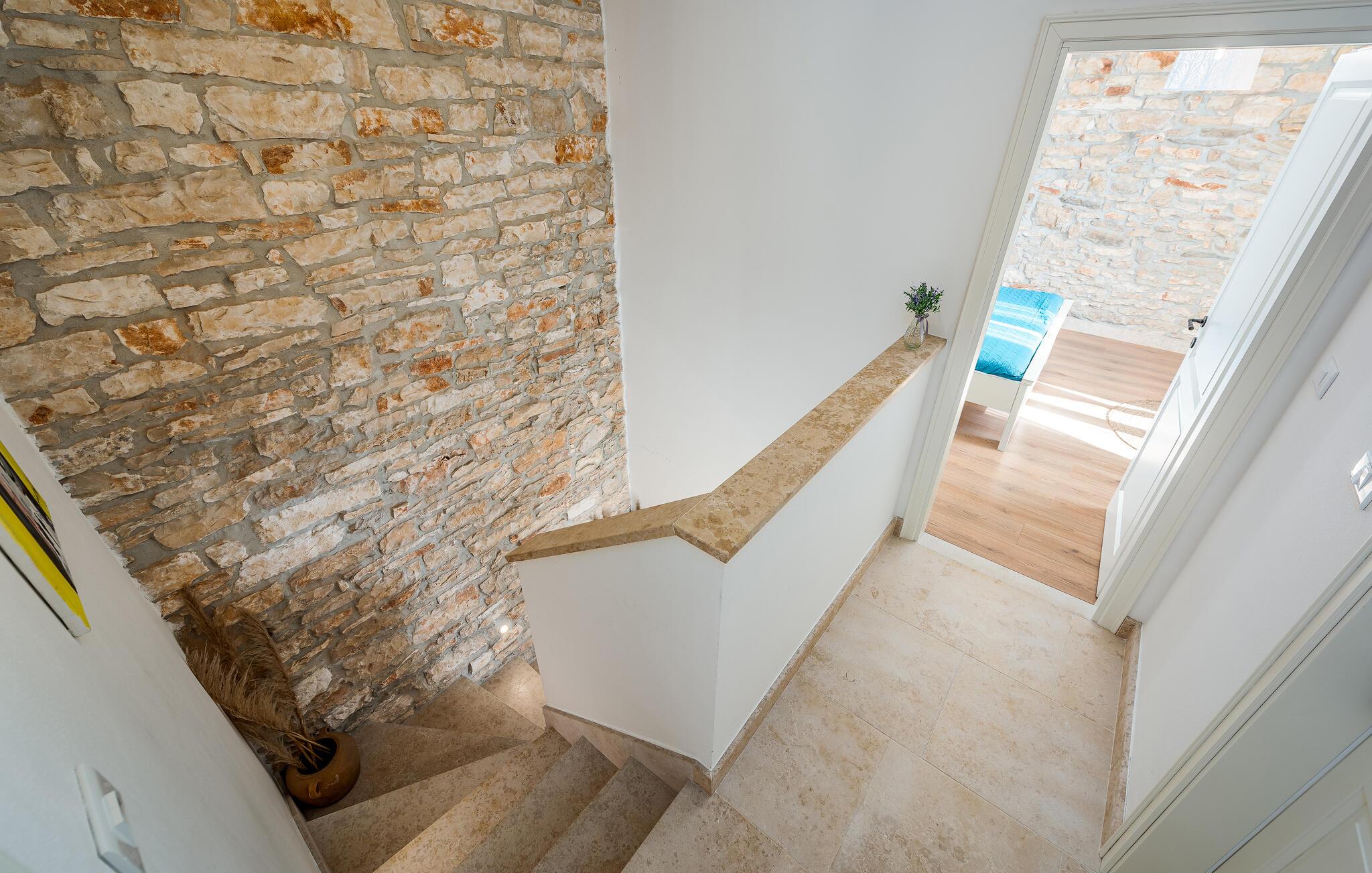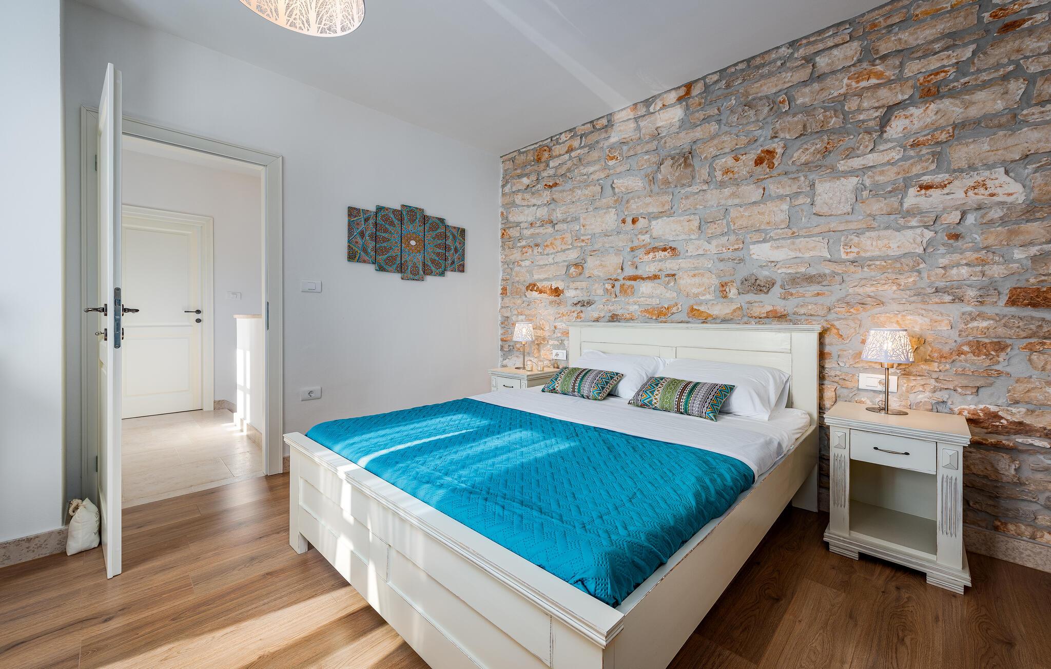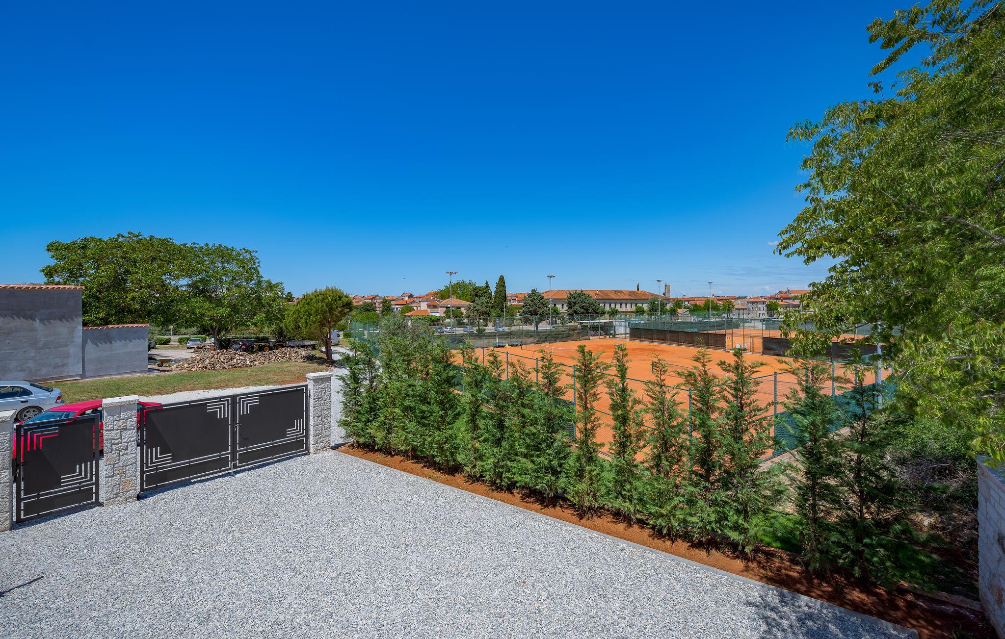 Dette sjarmerende feriehuset ligger like nord for Pula, og ønsker deg velkommen til en fantastisk ferie i Istria. Den harmoniske kombinasjonen av tradisjonell steinkonstruksjon og moderne komfort, som preger hele feriehuset, gir deg en koselig atmosfære langt borte fra hverdagens stress og jag. Det vakre kjøkkenet innbyr til felles matlaging, mens spisestuen med det rustikke trebordet er det ideelle stedet for hyggelige måltider. Slapp av i den innbydende stuen med den komfortable sofaen, der dere kan samles til morsomme spillkvelder eller bare slappe av med en god bok. Det er også mange muligheter til å slappe av og nyte naturen. Ta en forfriskende dukkert i bassenget og slapp deretter av på en av de komfortable solsengene. Den nærliggende tennisbanen er ideell for sportsentusiaster, mens den overbygde grillterrassen byr på kulinariske høydepunkter når du griller om kvelden.