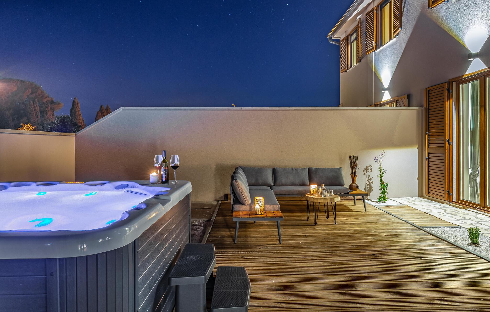 Tilbring ferien i dette fantastiske feriehuset med basseng, boblebad og badstue.