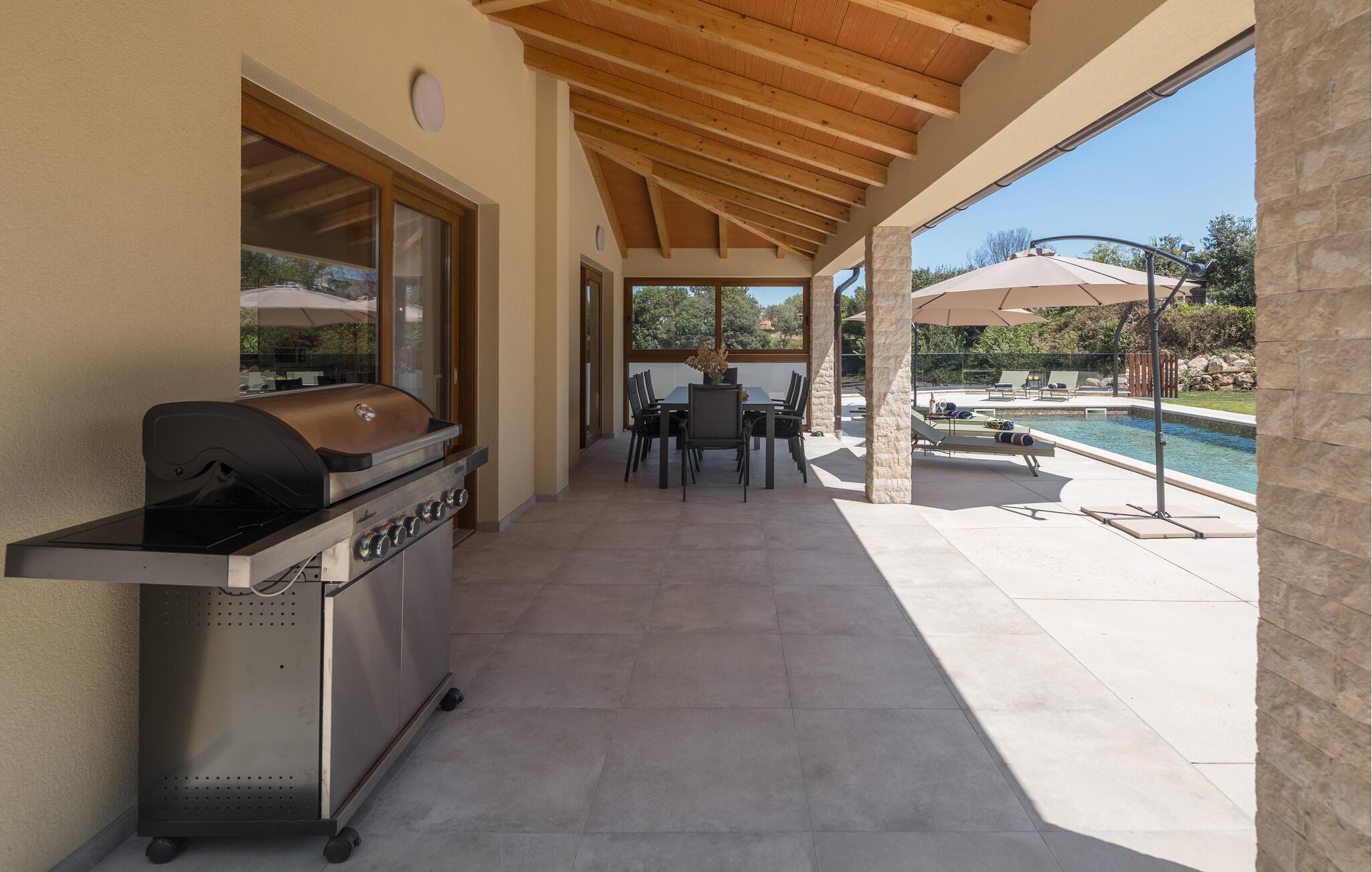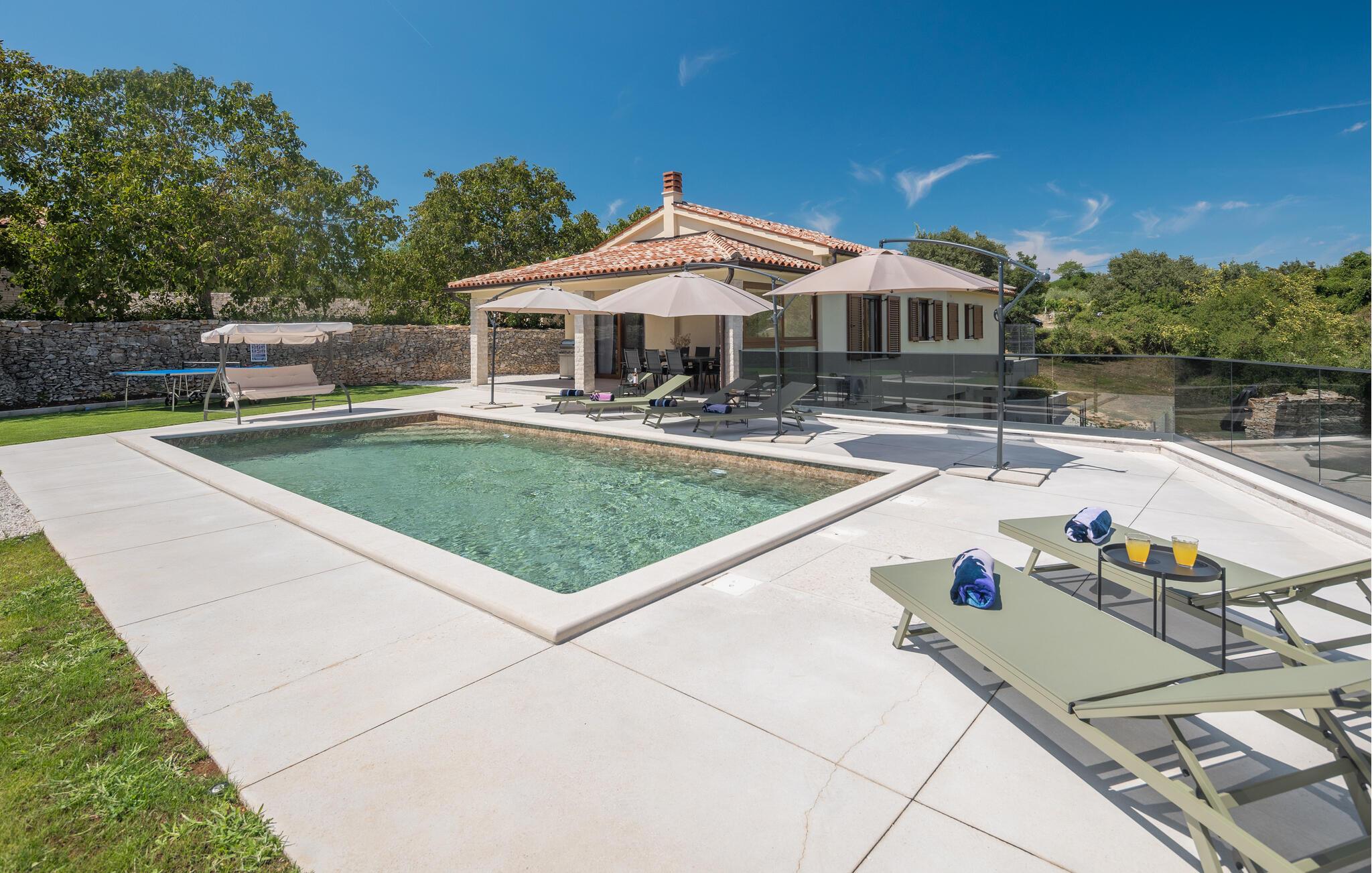 Nyt en fantastisk utsikt over landskapet fra dette attraktive feriehuset med basseng og boblebad.