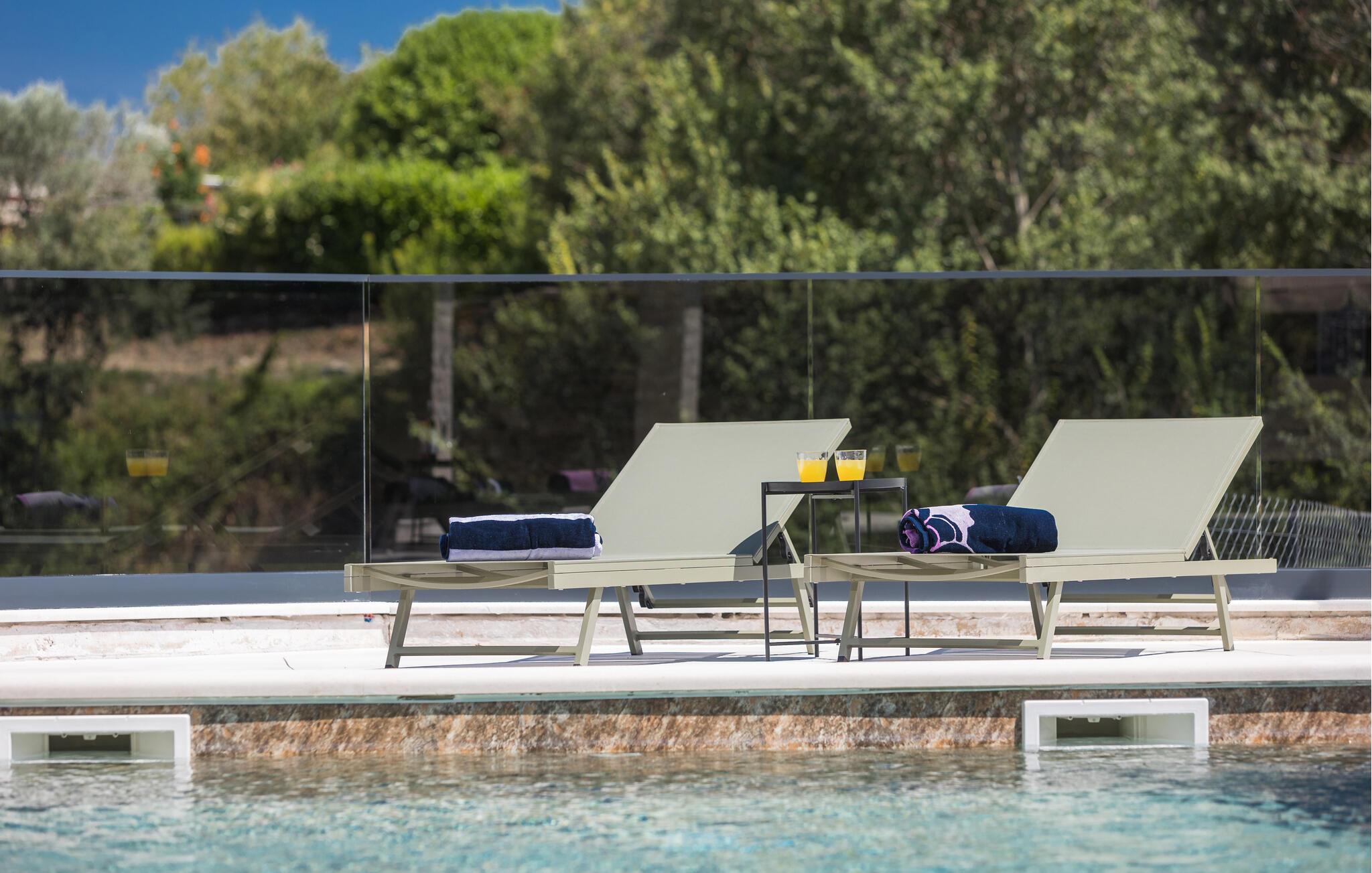 Du finner også herlige steder ute hvor du kan slappe av i solen. Slå dere ned i en solstol etter en forfriskende dukkert i bassenget, slapp av i boblebadet og grill ute i det fri om kvelden.