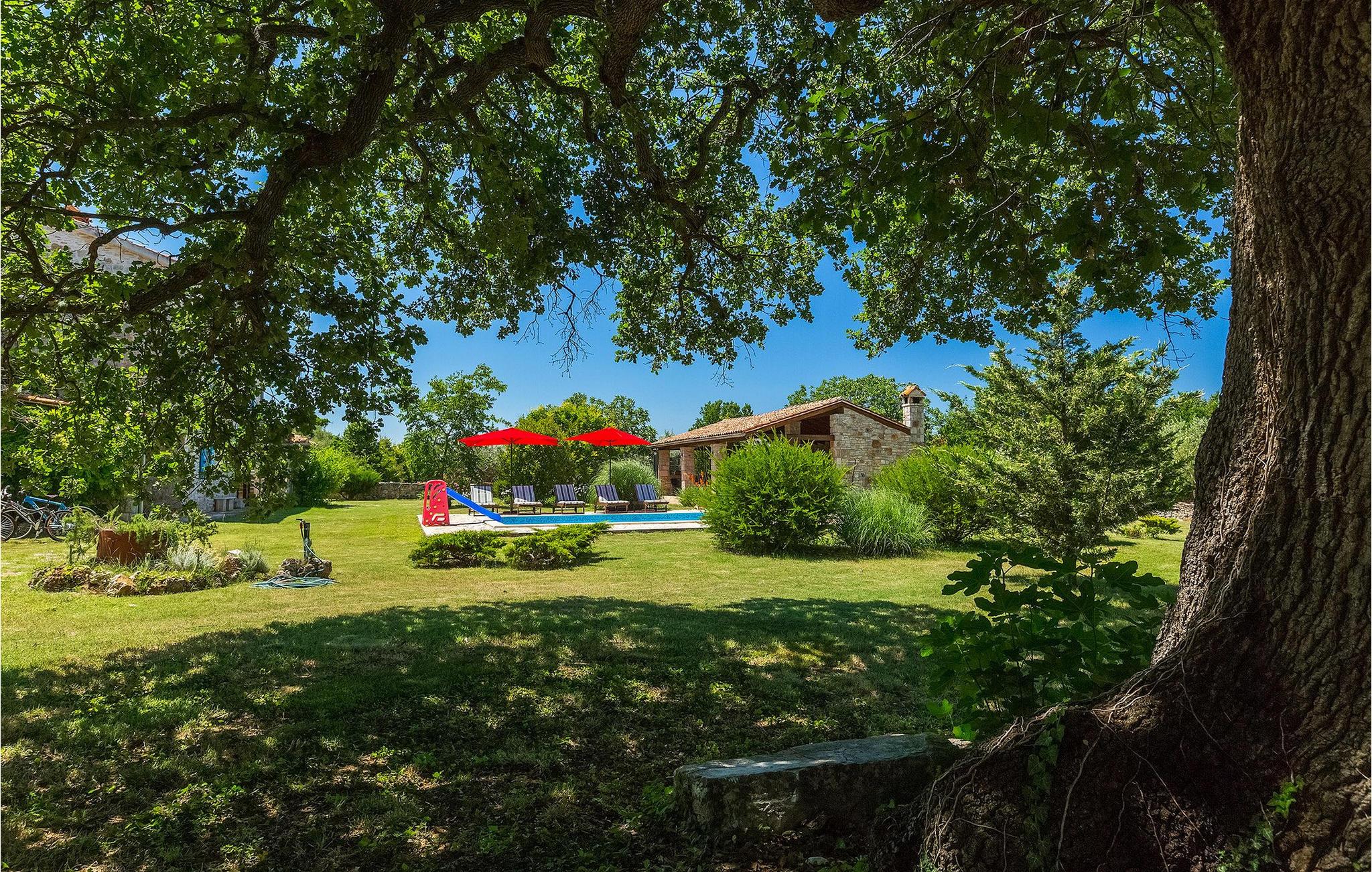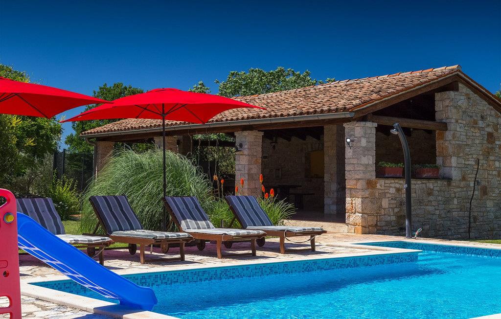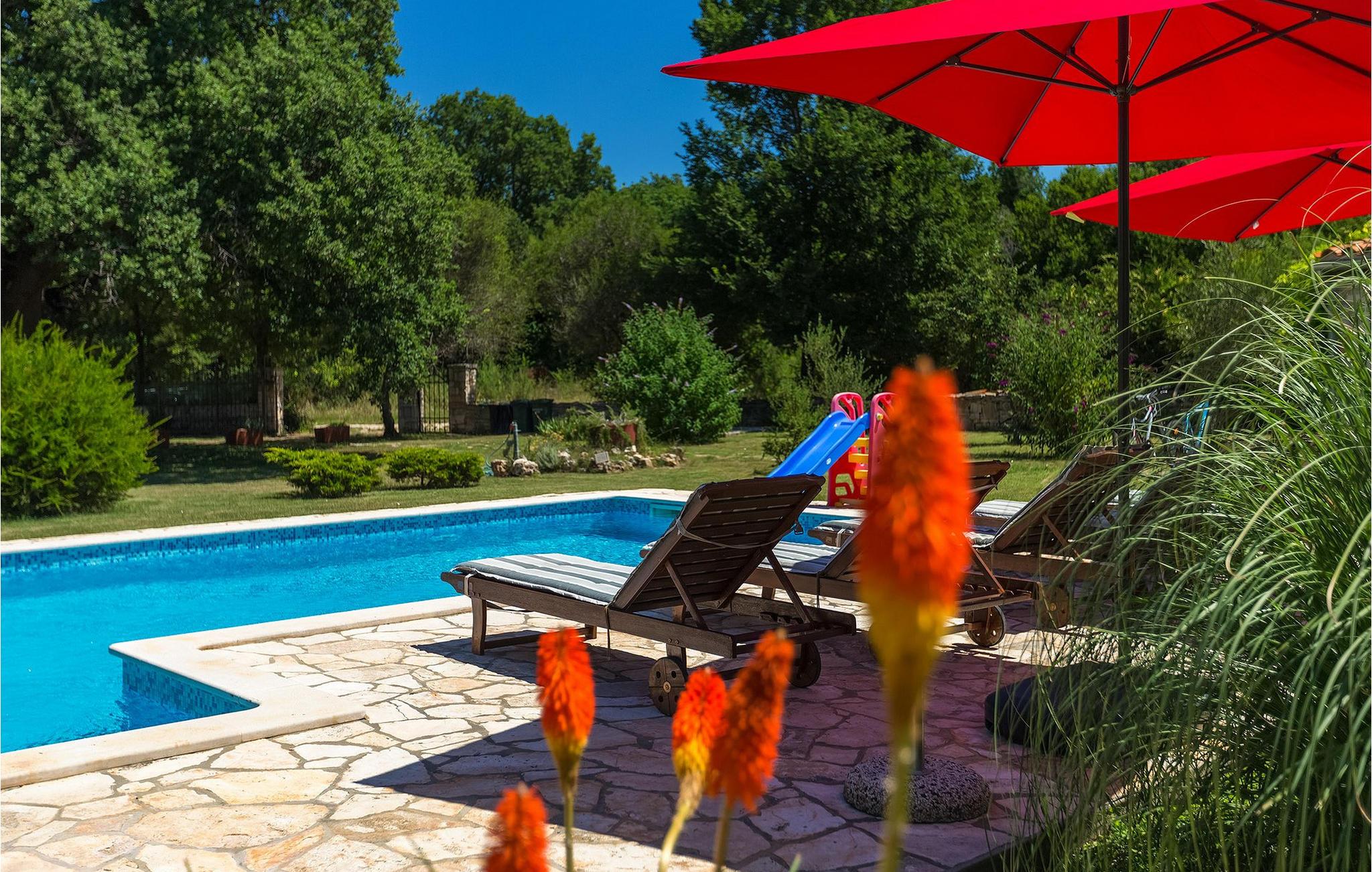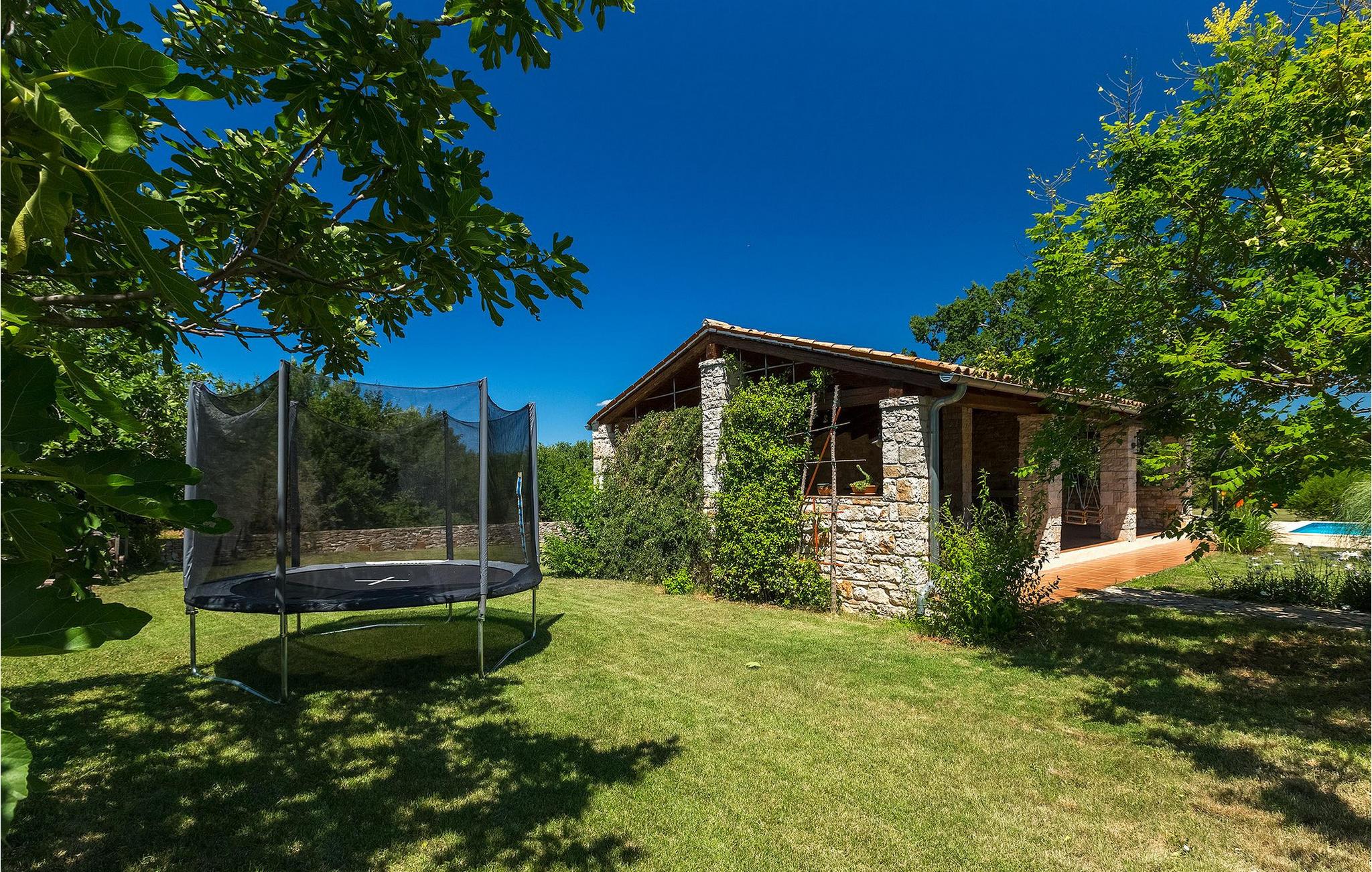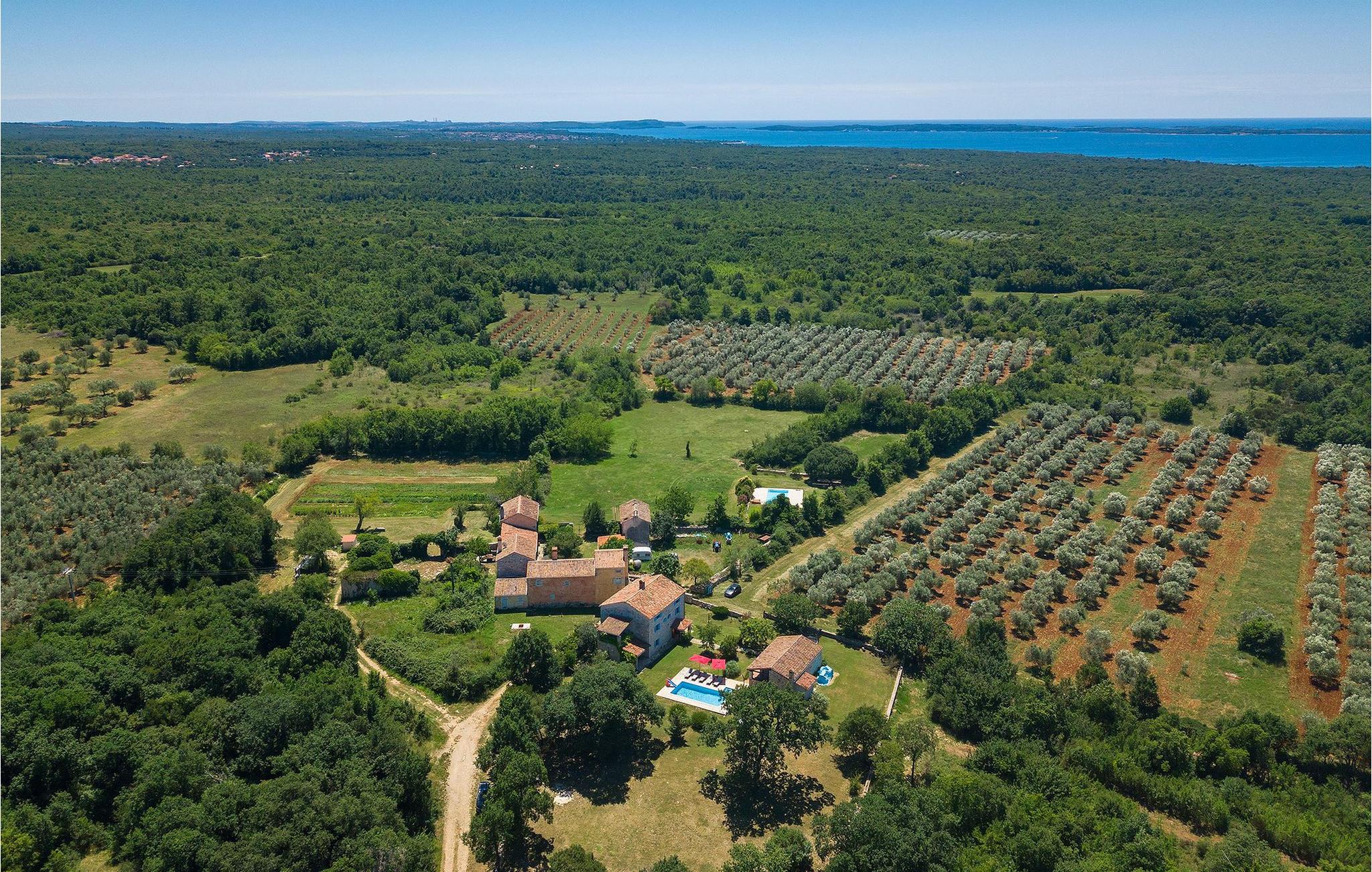 Denne gamle, renoverte villaen med stort basseng på en stor, anlagt gårdsplass er det perfekte stedet for en ferie full av fred og avslapning. Villa Negrin har fire soverom og plass til opptil ti personer. I første etasje i den åpne planløsningen er det en stor stue med peis, et fullt utstyrt kjøkken og en spiseplass for ti personer, ideelt for familiemåltider. Det er også en vinkjeller i første etasje. I andre etasje er det tre soverom, alle tre med klimaanlegg og eget bad, samt en liten, komfortabel terrasse hvor det alltid er en behagelig bris på varme sommerdager. Det gamle loftet er omgjort til et stort hovedsoverom, med synlige murstein og takbjelker for visuell effekt. Dette soverommet har også aircondition og eget bad. På gårdsplassen er det et stort basseng hvor du kan bade og slappe av når dagene blir for varme, eller du kan sole deg på solstolene rundt bassenget med en kald drink i hånden. Bassenget har også en liten sklie for de minste. Hvis du reiser med barn, er denne villaen det perfekte valget, da den har en 2000 m² stor hage med frodig grøntområde der barna kan leke uten bekymringer. Her er det også badminton- og volleyballnett, trampoline, basketballkurv, husker og dartpiler, slik at de lett kan forbrenne overskuddsenergi mens de slapper av. Det er også en stor, overbygd uteservering med grill for 12 personer, der du kan nyte familiemåltidene mens brisen bærer med seg den fine sommerduften fra det nærliggende havet. Føler du deg ikke avslappet nå? Bestill Villa Negrin nå og unn deg selv den ferien du fortjener.Gajana er en liten landsby i Vodnjan kommune i nærheten av Pula og Rovinj. Gajana er en typisk istrisk landsby med 20 hus omgitt av jorder og skog. Omtrent 6 km utenfor Gajana ligger middelalderbyen Vodnjan, der du fremdeles kan beundre barokk-, renessanse- og gotisk arkitektur i sentrum. Overalt finner du detaljer fra ulike tidsepoker, som tredører, steinfasader og smijernsdekorasjoner på fontener. Typiske gamle og smale istriske gater belagt med stein fører til kirken, som har det høyeste kirketårnet i hele Istria. Ettersom transportforbindelsene i Istria er gode, kan du når som helst sette deg i bilen og dra på utflukt. Etter en kort kjøretur på 20 til 40 minutter gjennom det vakre landskapet kommer du til de store kystbyene Pula, Rovinj og Porec. Alle tre byene er gamle byer fra romertiden, og her kan du utforske mange historiske monumenter, som amfiteateret i Pula, Eufrasius-basilikaen i Porec eller Eufemia-kirken i Rovinj. Hvis du vil kjøle deg ned i det krystallblå havet, kan du besøke de mange strendene i området.