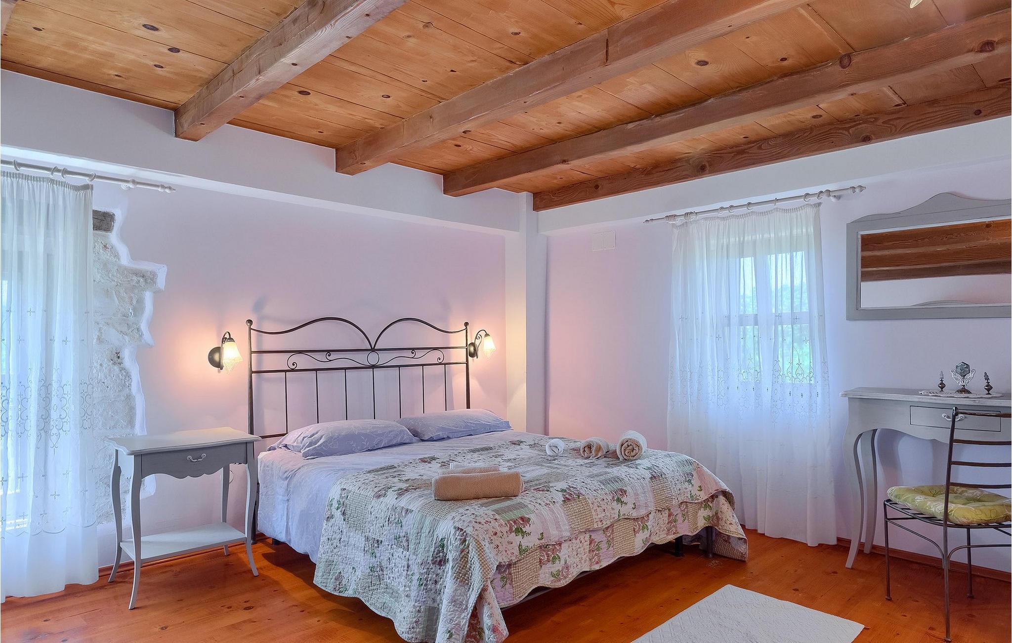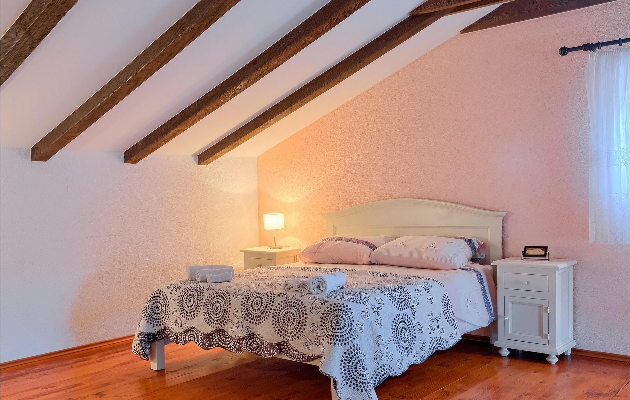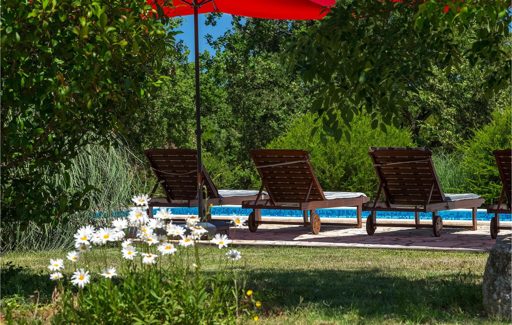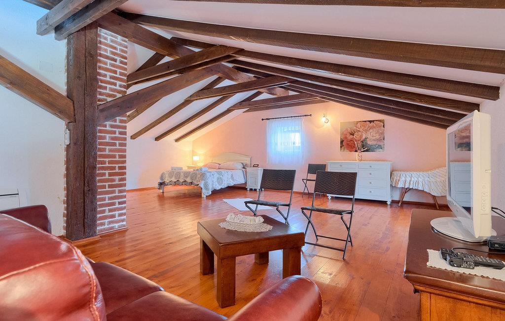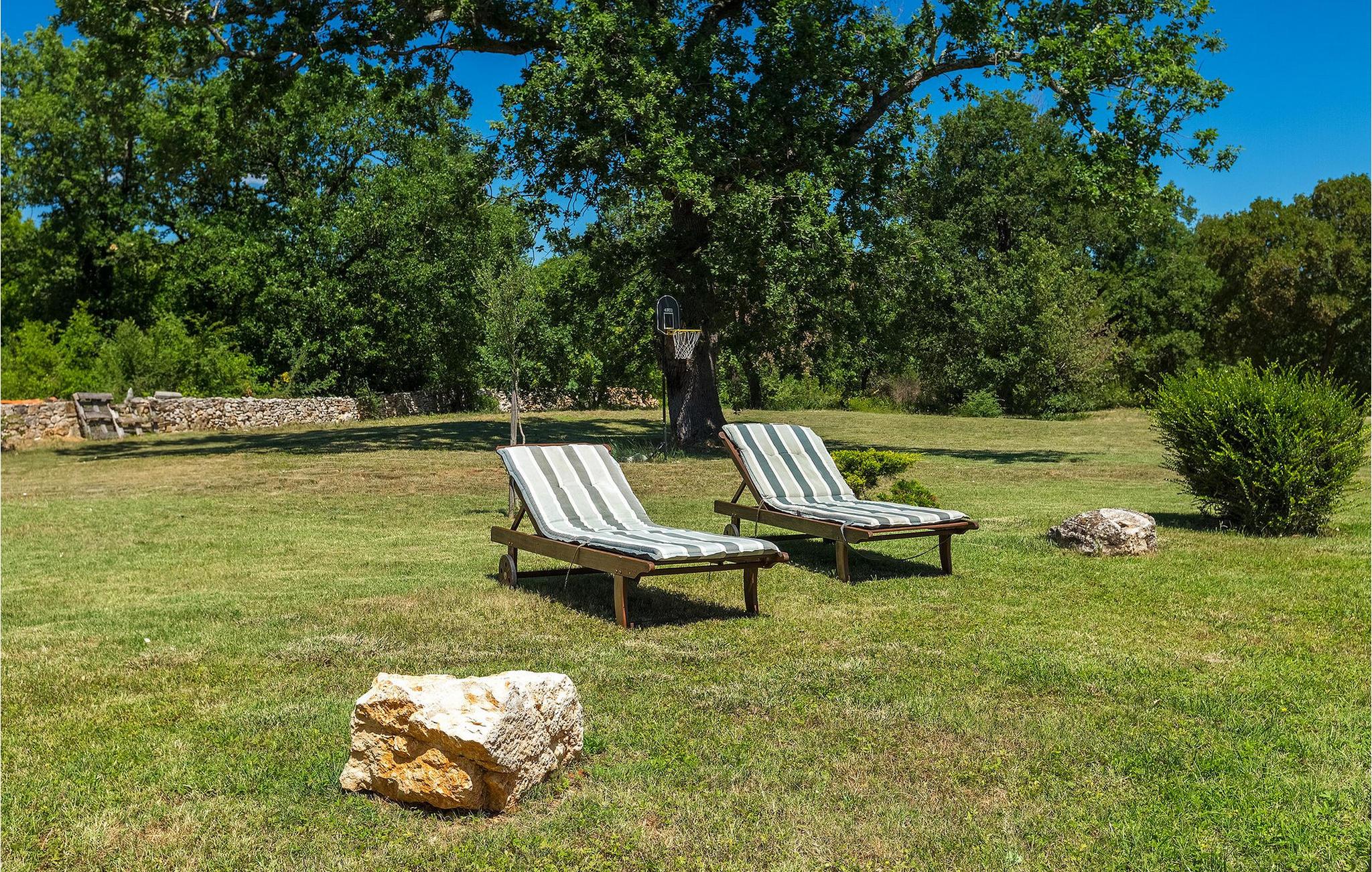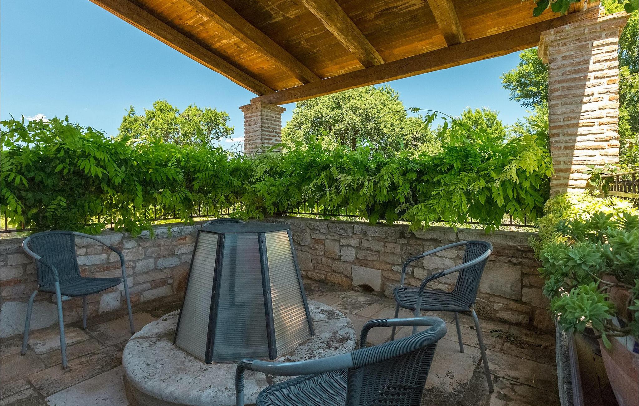 Denne gamle, renoverte villaen med stort basseng på en stor, anlagt gårdsplass er det perfekte stedet for en ferie full av fred og avslapning. Villa Negrin har fire soverom og plass til opptil ti personer. I første etasje i den åpne planløsningen er det en stor stue med peis, et fullt utstyrt kjøkken og en spiseplass for ti personer, ideelt for familiemåltider. Det er også en vinkjeller i første etasje. I andre etasje er det tre soverom, alle tre med klimaanlegg og eget bad, samt en liten, komfortabel terrasse hvor det alltid er en behagelig bris på varme sommerdager. Det gamle loftet er omgjort til et stort hovedsoverom, med synlige murstein og takbjelker for visuell effekt. Dette soverommet har også aircondition og eget bad. På gårdsplassen er det et stort basseng hvor du kan bade og slappe av når dagene blir for varme, eller du kan sole deg på solstolene rundt bassenget med en kald drink i hånden. Bassenget har også en liten sklie for de minste. Hvis du reiser med barn, er denne villaen det perfekte valget, da den har en 2000 m² stor hage med frodig grøntområde der barna kan leke uten bekymringer. Her er det også badminton- og volleyballnett, trampoline, basketballkurv, husker og dartpiler, slik at de lett kan forbrenne overskuddsenergi mens de slapper av. Det er også en stor, overbygd uteservering med grill for 12 personer, der du kan nyte familiemåltidene mens brisen bærer med seg den fine sommerduften fra det nærliggende havet. Føler du deg ikke avslappet nå? Bestill Villa Negrin nå og unn deg selv den ferien du fortjener.Gajana er en liten landsby i Vodnjan kommune i nærheten av Pula og Rovinj. Gajana er en typisk istrisk landsby med 20 hus omgitt av jorder og skog. Omtrent 6 km utenfor Gajana ligger middelalderbyen Vodnjan, der du fremdeles kan beundre barokk-, renessanse- og gotisk arkitektur i sentrum. Overalt finner du detaljer fra ulike tidsepoker, som tredører, steinfasader og smijernsdekorasjoner på fontener. Typiske gamle og smale istriske gater belagt med stein fører til kirken, som har det høyeste kirketårnet i hele Istria. Ettersom transportforbindelsene i Istria er gode, kan du når som helst sette deg i bilen og dra på utflukt. Etter en kort kjøretur på 20 til 40 minutter gjennom det vakre landskapet kommer du til de store kystbyene Pula, Rovinj og Porec. Alle tre byene er gamle byer fra romertiden, og her kan du utforske mange historiske monumenter, som amfiteateret i Pula, Eufrasius-basilikaen i Porec eller Eufemia-kirken i Rovinj. Hvis du vil kjøle deg ned i det krystallblå havet, kan du besøke de mange strendene i området.