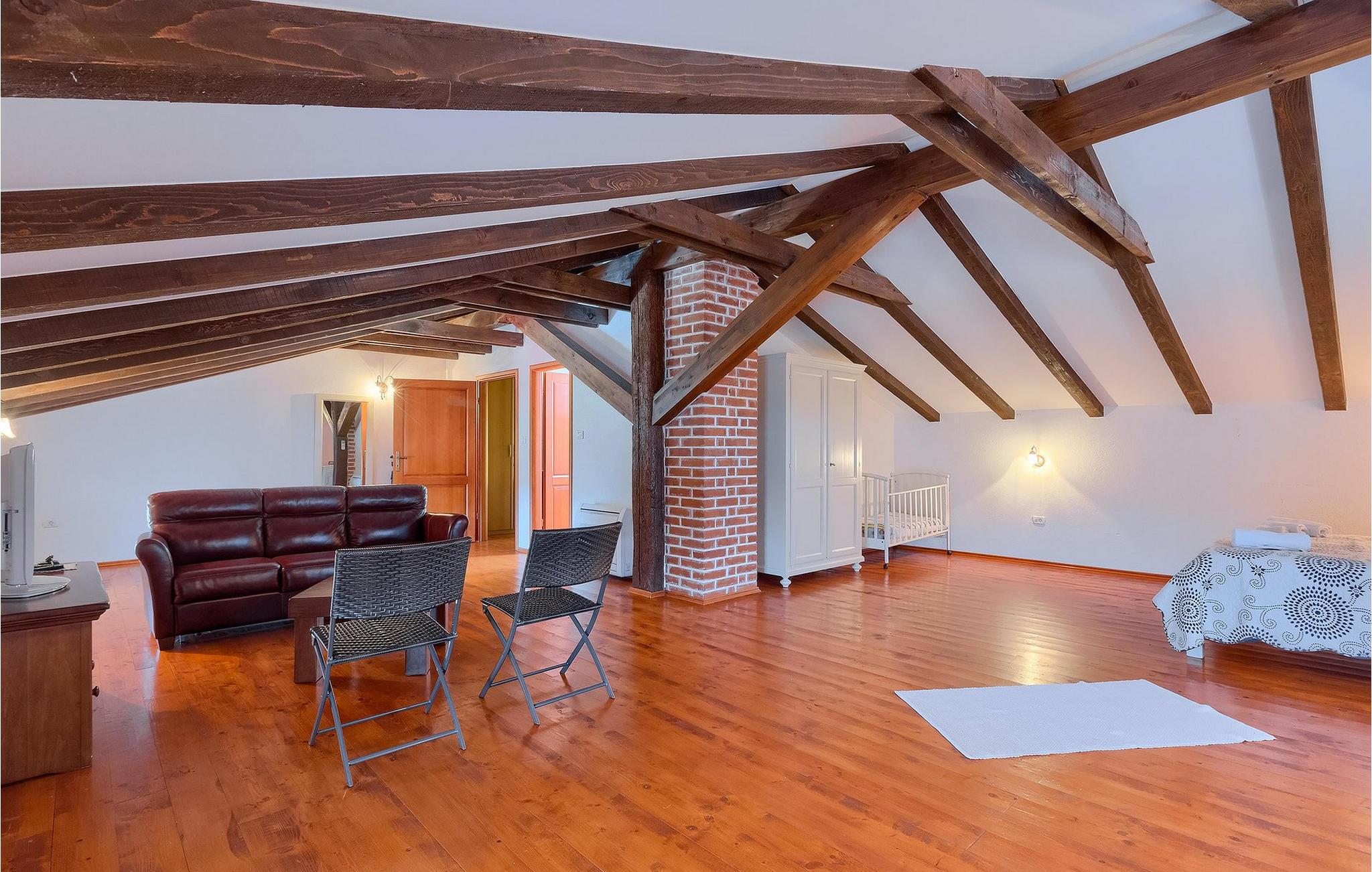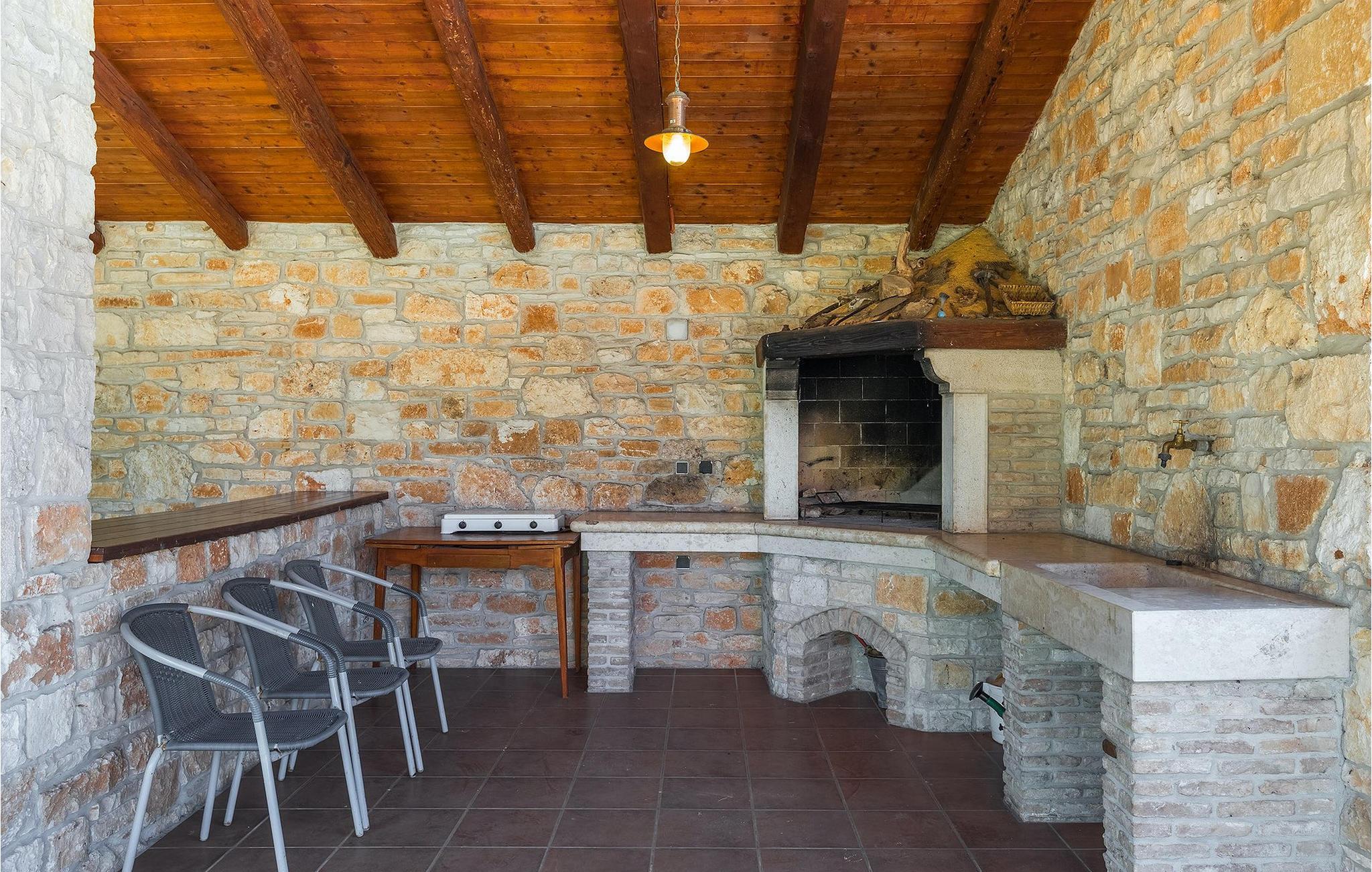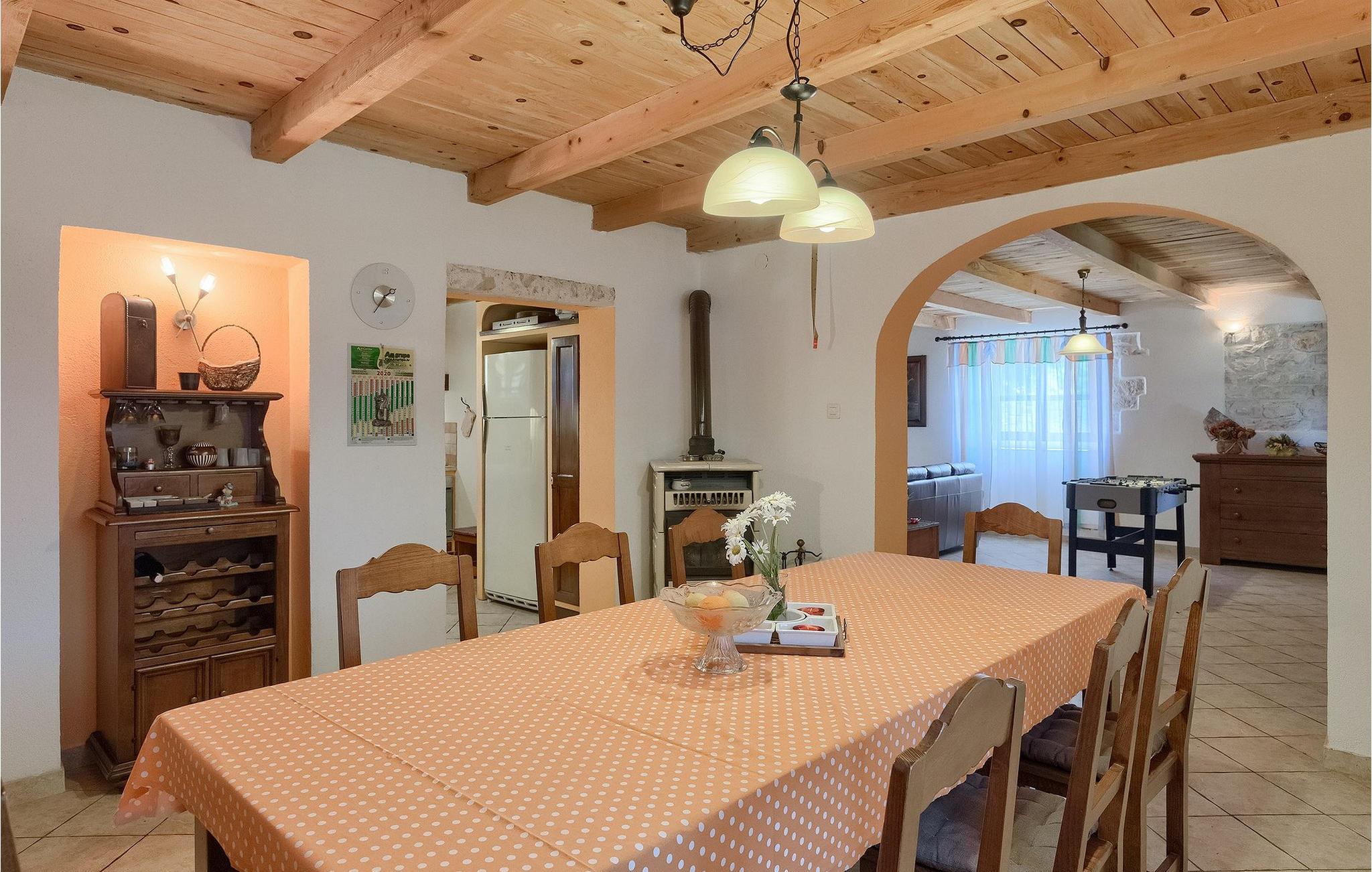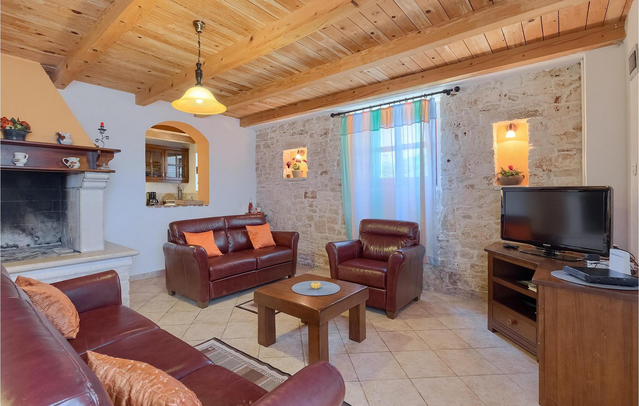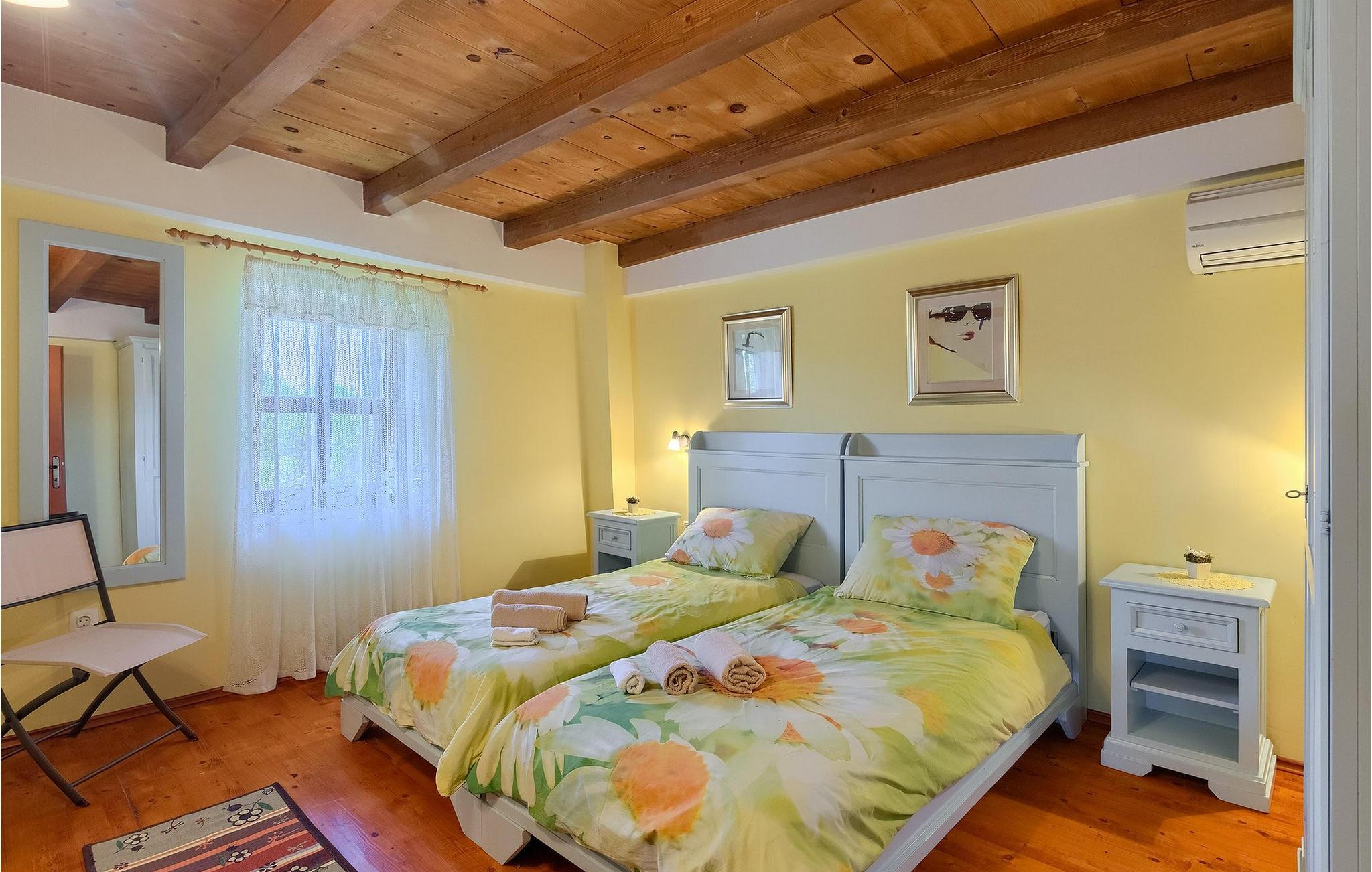 Denne gamle, renoverte villaen med stort basseng på en stor, anlagt gårdsplass er det perfekte stedet for en ferie full av fred og avslapning. Villa Negrin har fire soverom og plass til opptil ti personer. I første etasje i den åpne planløsningen er det en stor stue med peis, et fullt utstyrt kjøkken og en spiseplass for ti personer, ideelt for familiemåltider. Det er også en vinkjeller i første etasje. I andre etasje er det tre soverom, alle tre med klimaanlegg og eget bad, samt en liten, komfortabel terrasse hvor det alltid er en behagelig bris på varme sommerdager. Det gamle loftet er omgjort til et stort hovedsoverom, med synlige murstein og takbjelker for visuell effekt. Dette soverommet har også aircondition og eget bad. På gårdsplassen er det et stort basseng hvor du kan bade og slappe av når dagene blir for varme, eller du kan sole deg på solstolene rundt bassenget med en kald drink i hånden. Bassenget har også en liten sklie for de minste. Hvis du reiser med barn, er denne villaen det perfekte valget, da den har en 2000 m² stor hage med frodig grøntområde der barna kan leke uten bekymringer. Her er det også badminton- og volleyballnett, trampoline, basketballkurv, husker og dartpiler, slik at de lett kan forbrenne overskuddsenergi mens de slapper av. Det er også en stor, overbygd uteservering med grill for 12 personer, der du kan nyte familiemåltidene mens brisen bærer med seg den fine sommerduften fra det nærliggende havet. Føler du deg ikke avslappet nå? Bestill Villa Negrin nå og unn deg selv den ferien du fortjener.Gajana er en liten landsby i Vodnjan kommune i nærheten av Pula og Rovinj. Gajana er en typisk istrisk landsby med 20 hus omgitt av jorder og skog. Omtrent 6 km utenfor Gajana ligger middelalderbyen Vodnjan, der du fremdeles kan beundre barokk-, renessanse- og gotisk arkitektur i sentrum. Overalt finner du detaljer fra ulike tidsepoker, som tredører, steinfasader og smijernsdekorasjoner på fontener. Typiske gamle og smale istriske gater belagt med stein fører til kirken, som har det høyeste kirketårnet i hele Istria. Ettersom transportforbindelsene i Istria er gode, kan du når som helst sette deg i bilen og dra på utflukt. Etter en kort kjøretur på 20 til 40 minutter gjennom det vakre landskapet kommer du til de store kystbyene Pula, Rovinj og Porec. Alle tre byene er gamle byer fra romertiden, og her kan du utforske mange historiske monumenter, som amfiteateret i Pula, Eufrasius-basilikaen i Porec eller Eufemia-kirken i Rovinj. Hvis du vil kjøle deg ned i det krystallblå havet, kan du besøke de mange strendene i området.