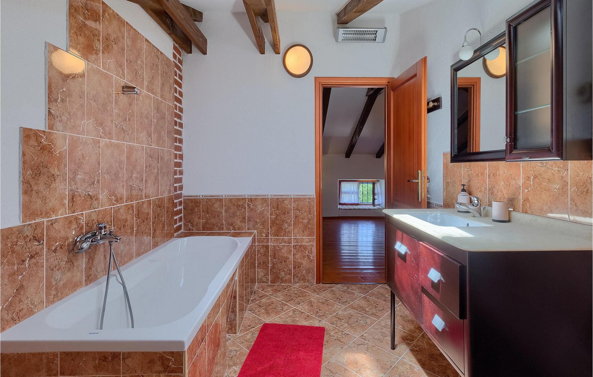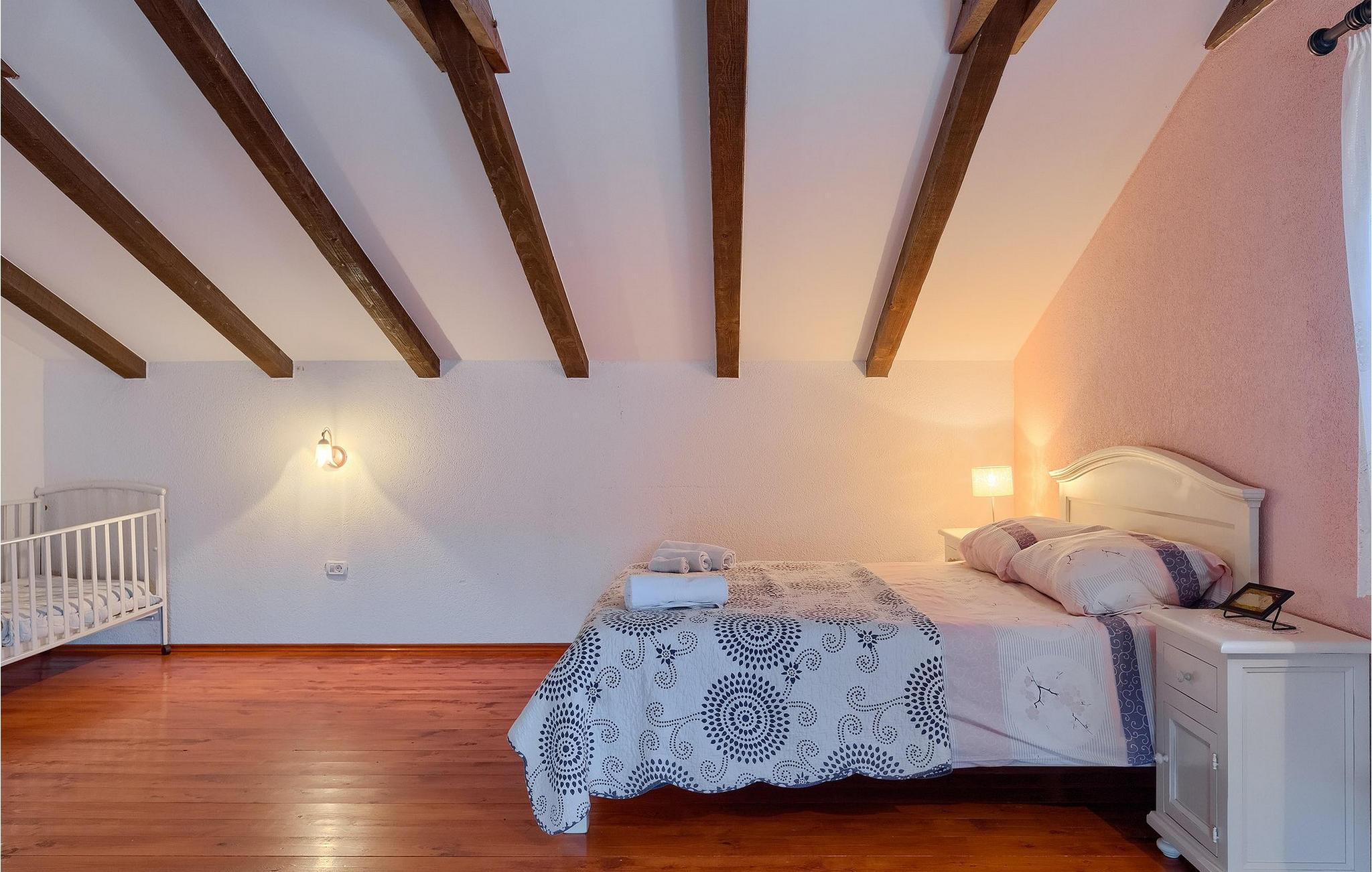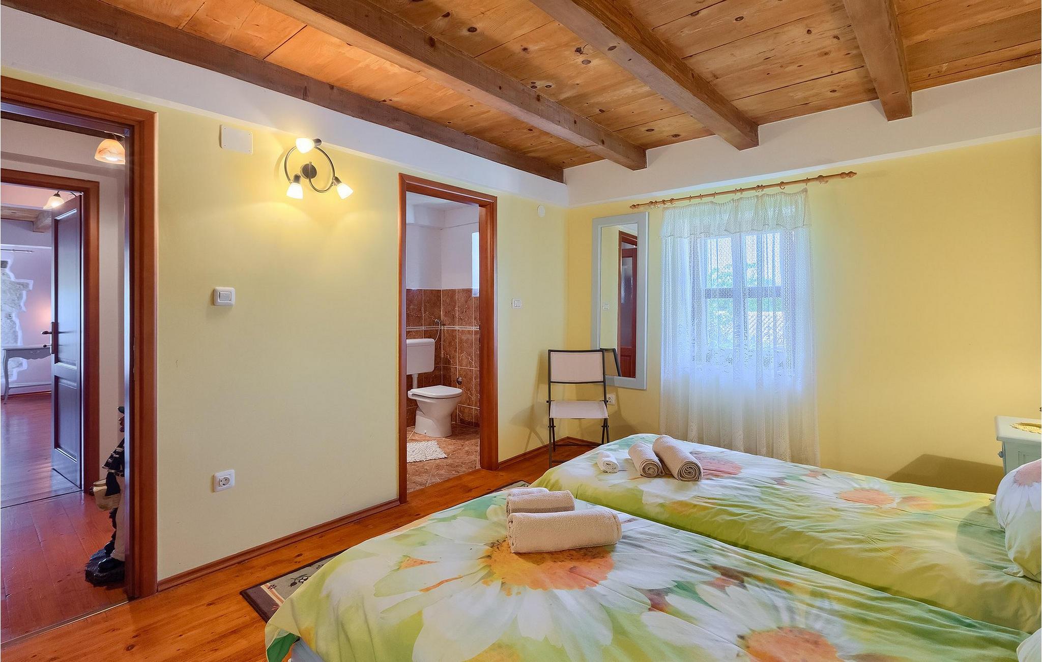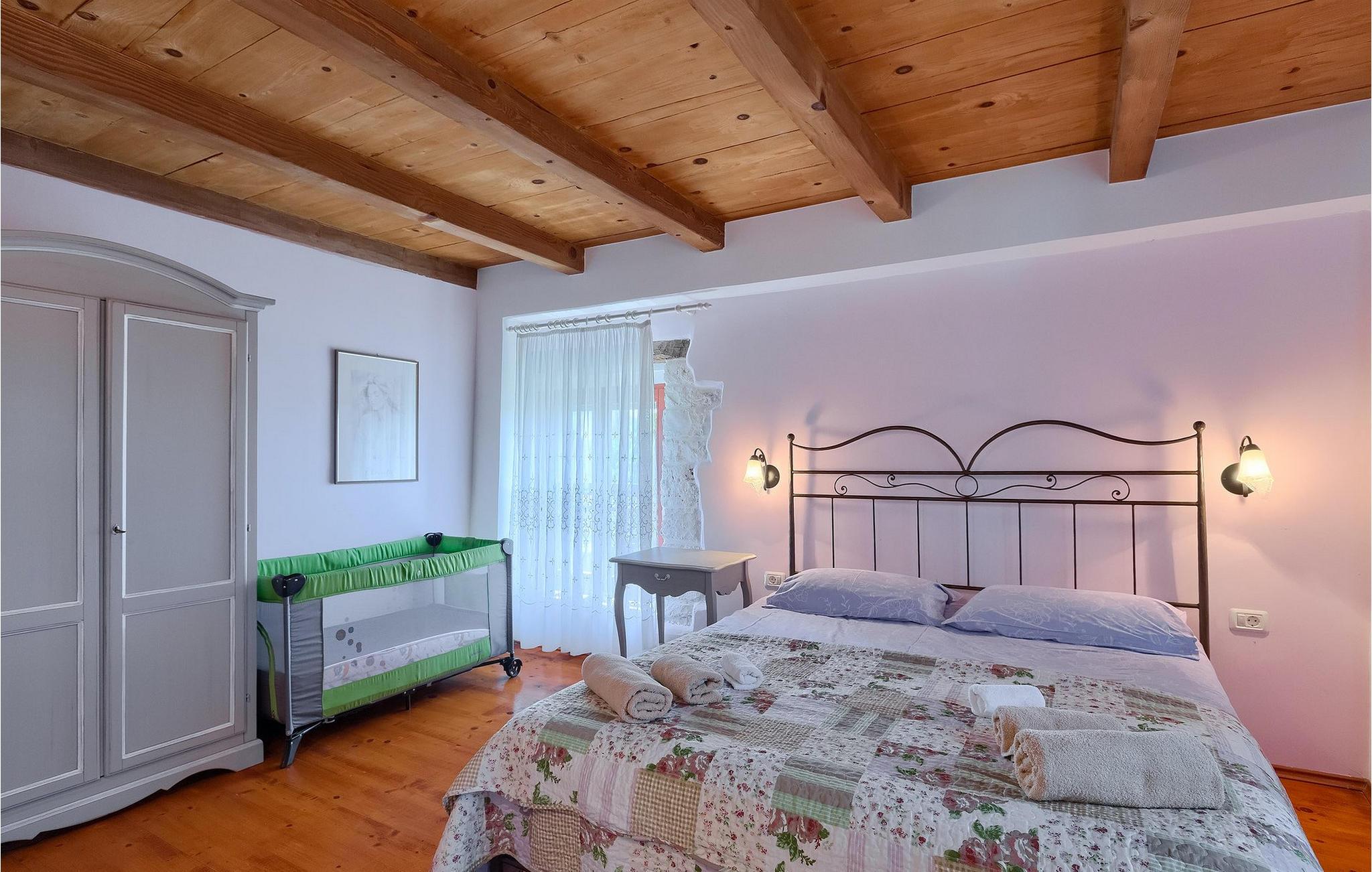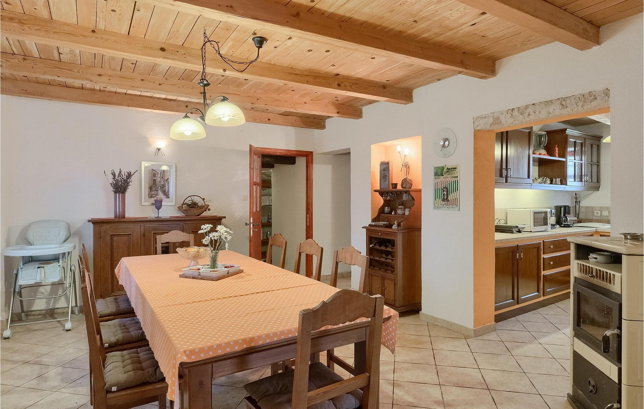 Denne gamle, renoverte villaen med stort basseng på en stor, anlagt gårdsplass er det perfekte stedet for en ferie full av fred og avslapning. Villa Negrin har fire soverom og plass til opptil ti personer. I første etasje i den åpne planløsningen er det en stor stue med peis, et fullt utstyrt kjøkken og en spiseplass for ti personer, ideelt for familiemåltider. Det er også en vinkjeller i første etasje. I andre etasje er det tre soverom, alle tre med klimaanlegg og eget bad, samt en liten, komfortabel terrasse hvor det alltid er en behagelig bris på varme sommerdager. Det gamle loftet er omgjort til et stort hovedsoverom, med synlige murstein og takbjelker for visuell effekt. Dette soverommet har også aircondition og eget bad. På gårdsplassen er det et stort basseng hvor du kan bade og slappe av når dagene blir for varme, eller du kan sole deg på solstolene rundt bassenget med en kald drink i hånden. Bassenget har også en liten sklie for de minste. Hvis du reiser med barn, er denne villaen det perfekte valget, da den har en 2000 m² stor hage med frodig grøntområde der barna kan leke uten bekymringer. Her er det også badminton- og volleyballnett, trampoline, basketballkurv, husker og dartpiler, slik at de lett kan forbrenne overskuddsenergi mens de slapper av. Det er også en stor, overbygd uteservering med grill for 12 personer, der du kan nyte familiemåltidene mens brisen bærer med seg den fine sommerduften fra det nærliggende havet. Føler du deg ikke avslappet nå? Bestill Villa Negrin nå og unn deg selv den ferien du fortjener.Gajana er en liten landsby i Vodnjan kommune i nærheten av Pula og Rovinj. Gajana er en typisk istrisk landsby med 20 hus omgitt av jorder og skog. Omtrent 6 km utenfor Gajana ligger middelalderbyen Vodnjan, der du fremdeles kan beundre barokk-, renessanse- og gotisk arkitektur i sentrum. Overalt finner du detaljer fra ulike tidsepoker, som tredører, steinfasader og smijernsdekorasjoner på fontener. Typiske gamle og smale istriske gater belagt med stein fører til kirken, som har det høyeste kirketårnet i hele Istria. Ettersom transportforbindelsene i Istria er gode, kan du når som helst sette deg i bilen og dra på utflukt. Etter en kort kjøretur på 20 til 40 minutter gjennom det vakre landskapet kommer du til de store kystbyene Pula, Rovinj og Porec. Alle tre byene er gamle byer fra romertiden, og her kan du utforske mange historiske monumenter, som amfiteateret i Pula, Eufrasius-basilikaen i Porec eller Eufemia-kirken i Rovinj. Hvis du vil kjøle deg ned i det krystallblå havet, kan du besøke de mange strendene i området.