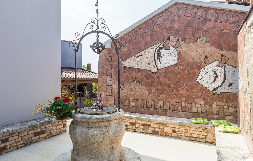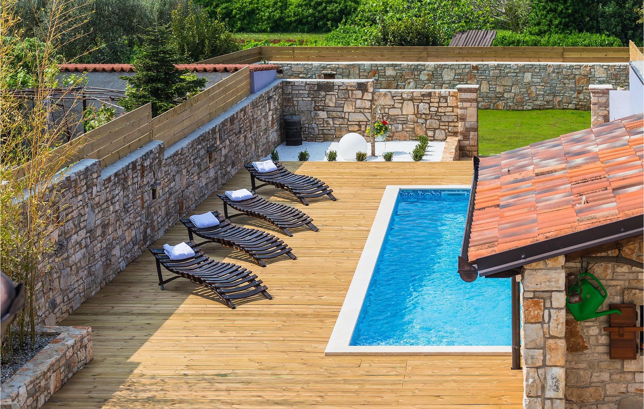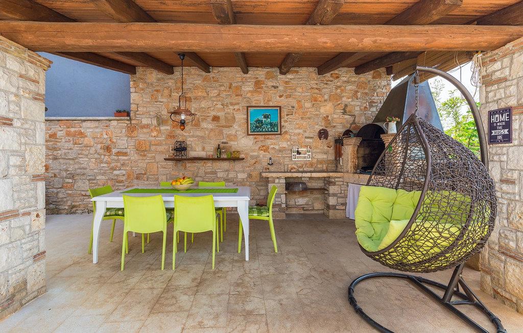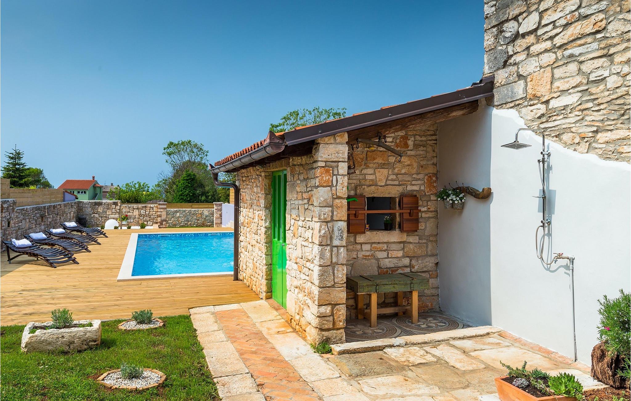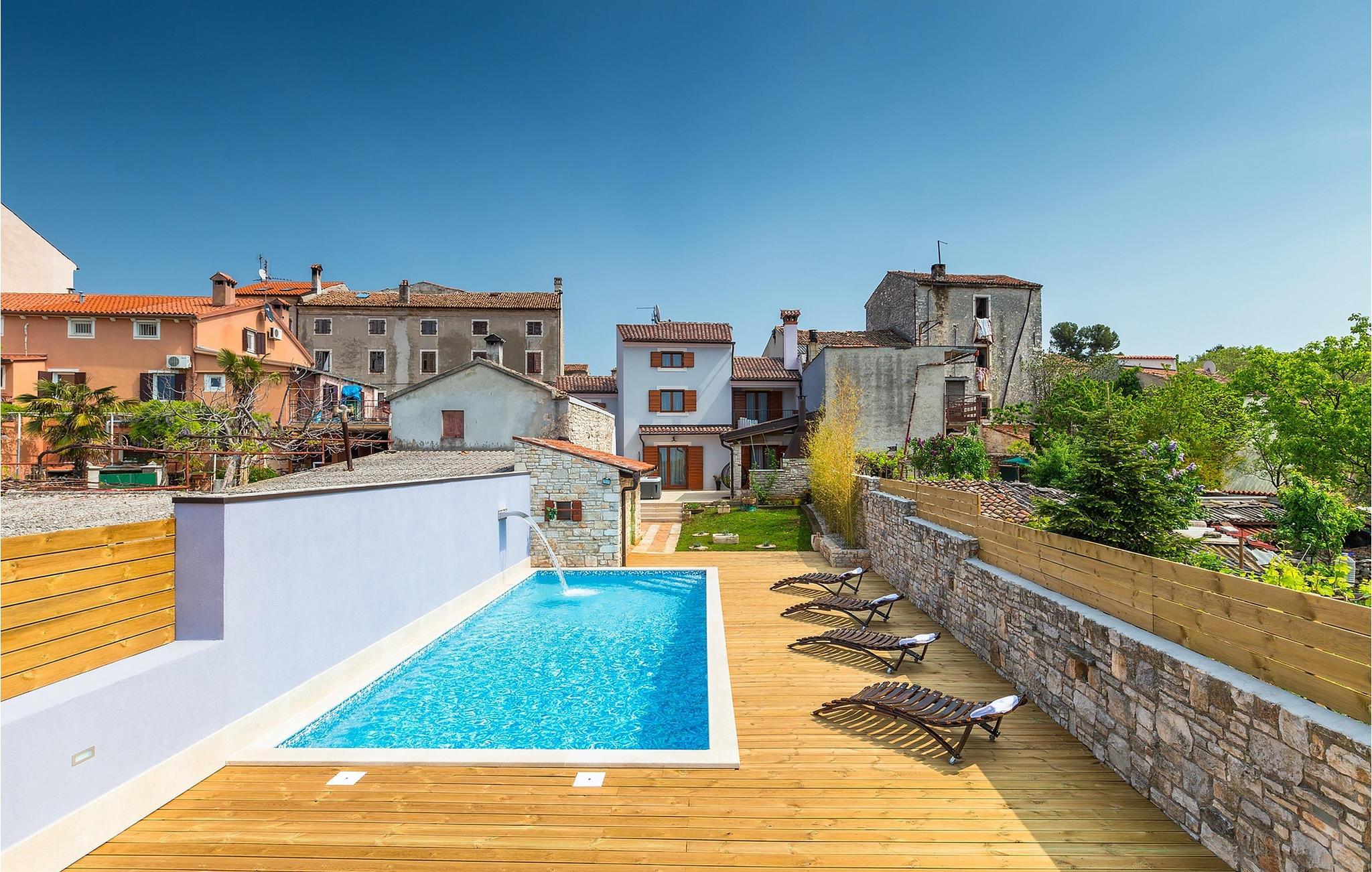 Den sjarmerende Villa San Rocco ligger i sentrum av den lille historiske byen Vodnjan, bare noen få minutter fra Istrias største by, Pula. Villaen er en perfekt blanding av rustikke og moderne elementer som får deg til å føle deg som hjemme. Med et samlet boareal på 270 kvadratmeter er det plass til opptil 8+2 personer, og villaen er nydelig innredet. Villa San Rocco er et restaurert, tradisjonelt istrisk hus fordelt på tre etasjer. Første etasje består av et sjarmerende, velutstyrt kjøkken, en stor spiseplass med kullgrill, en koselig stue og et bad. I første etasje finner du et spillrom med pokerbord og bordfotball. Fire sjarmerende innredede soverom har dobbeltseng. 3 av soverommene ligger i første etasje, mens det siste ligger i andre etasje. Villaens uteområde vil overvelde deg. Foran villaen er det en stor terrasse med overbygd spiseplass og kullgrill, et utendørs boblebad og et innbydende privat basseng. Rett rundt hjørnet ligger en stor plen hvor du kan slappe av i hengekøyen mens du leser favorittboken din. Derfra har du også tilgang til villaen, hvor du finner et biljardbord. Villaen er ideell for familier som ønsker en avslappende ferie med mange aktiviteter. Så ikke gå glipp av denne muligheten og bestill Villa San Rocco, som ligger i den lille, sjarmerende byen Vodnjan, bare en kort kjøretur fra fantastiske Pula.