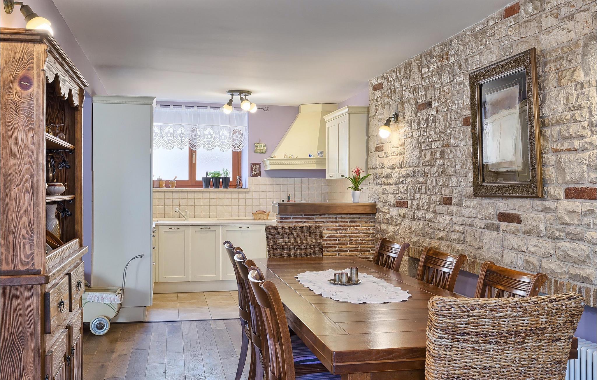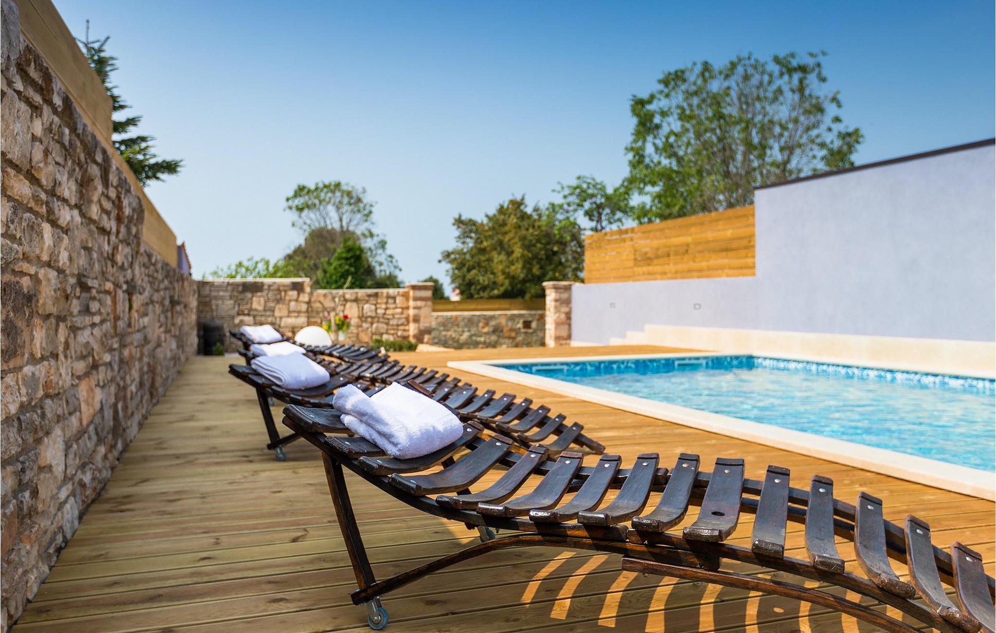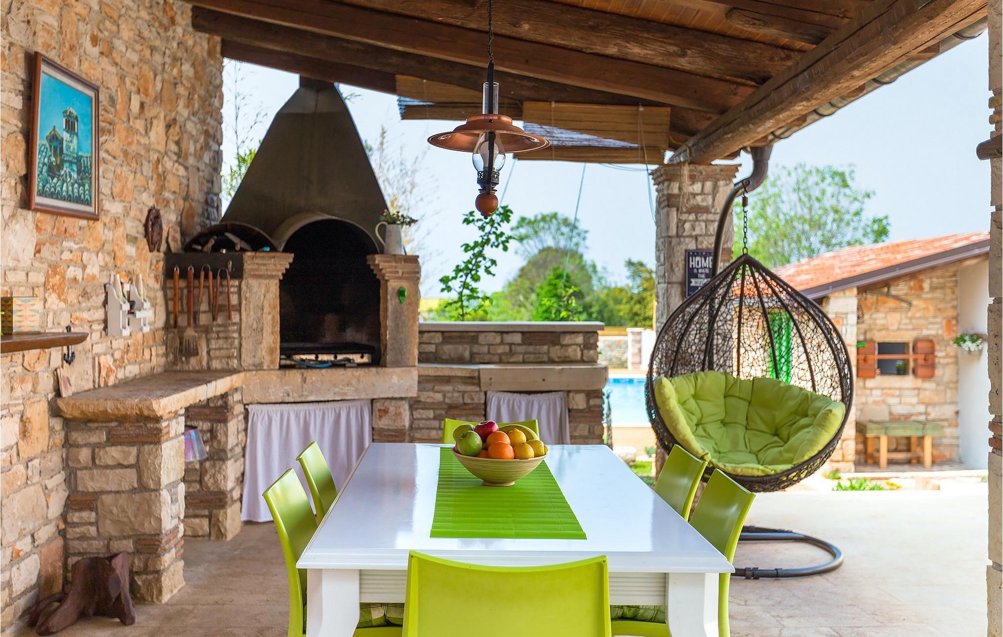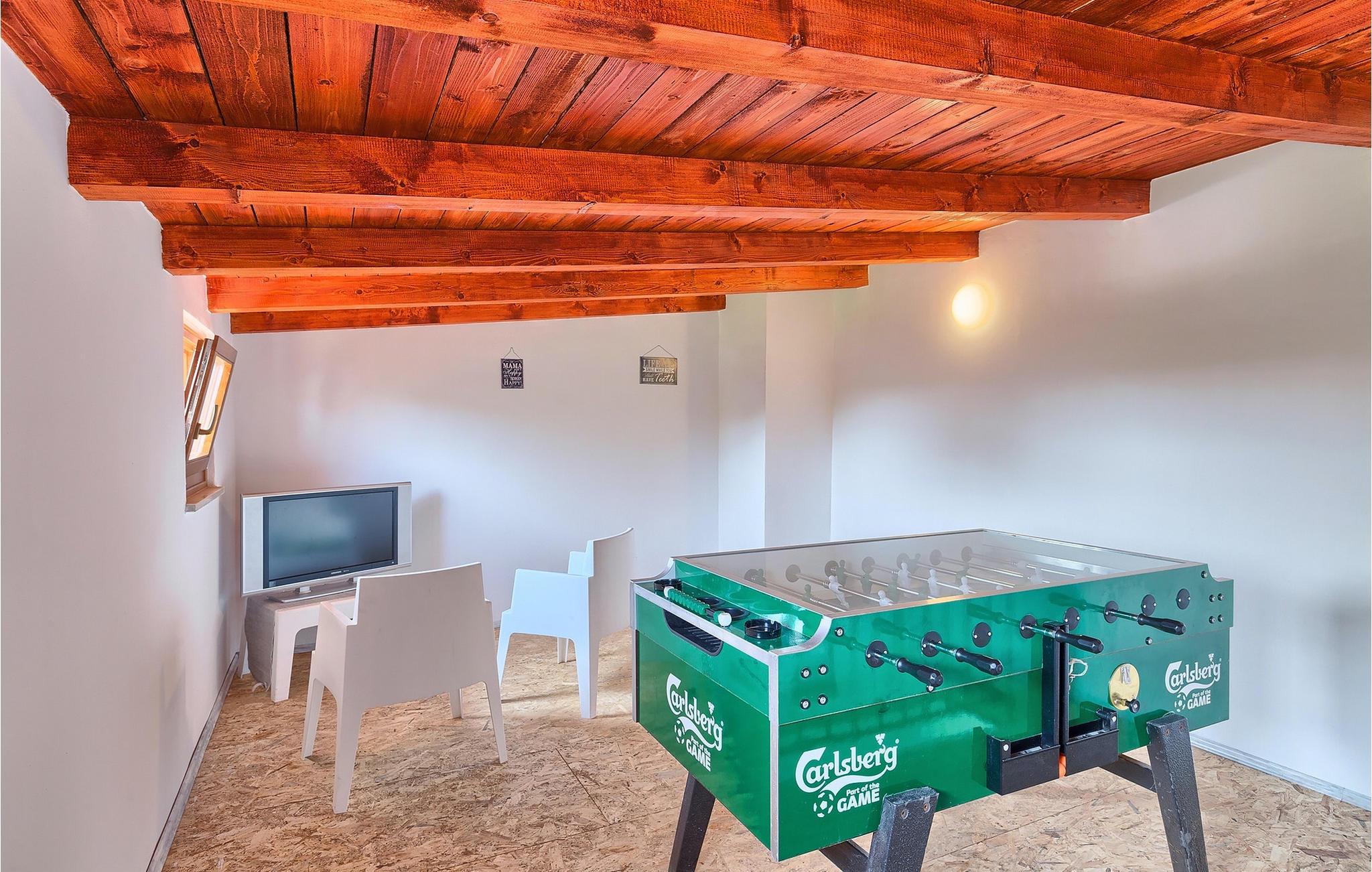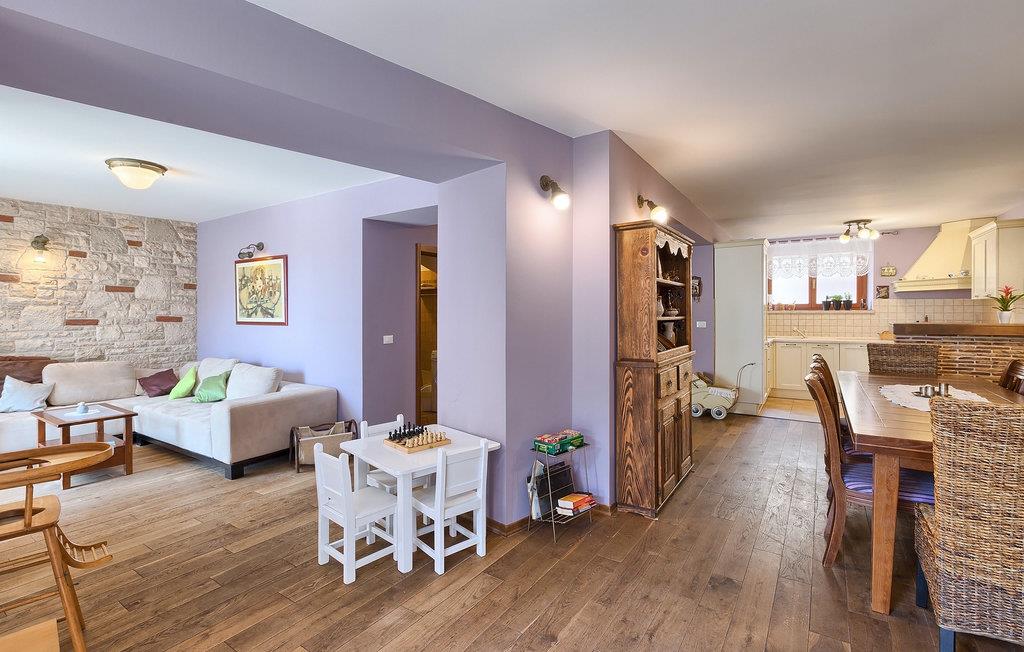 Den sjarmerende Villa San Rocco ligger i sentrum av den lille historiske byen Vodnjan, bare noen få minutter fra Istrias største by, Pula. Villaen er en perfekt blanding av rustikke og moderne elementer som får deg til å føle deg som hjemme. Med et samlet boareal på 270 kvadratmeter er det plass til opptil 8+2 personer, og villaen er nydelig innredet. Villa San Rocco er et restaurert, tradisjonelt istrisk hus fordelt på tre etasjer. Første etasje består av et sjarmerende, velutstyrt kjøkken, en stor spiseplass med kullgrill, en koselig stue og et bad. I første etasje finner du et spillrom med pokerbord og bordfotball. Fire sjarmerende innredede soverom har dobbeltseng. 3 av soverommene ligger i første etasje, mens det siste ligger i andre etasje. Villaens uteområde vil overvelde deg. Foran villaen er det en stor terrasse med overbygd spiseplass og kullgrill, et utendørs boblebad og et innbydende privat basseng. Rett rundt hjørnet ligger en stor plen hvor du kan slappe av i hengekøyen mens du leser favorittboken din. Derfra har du også tilgang til villaen, hvor du finner et biljardbord. Villaen er ideell for familier som ønsker en avslappende ferie med mange aktiviteter. Så ikke gå glipp av denne muligheten og bestill Villa San Rocco, som ligger i den lille, sjarmerende byen Vodnjan, bare en kort kjøretur fra fantastiske Pula.