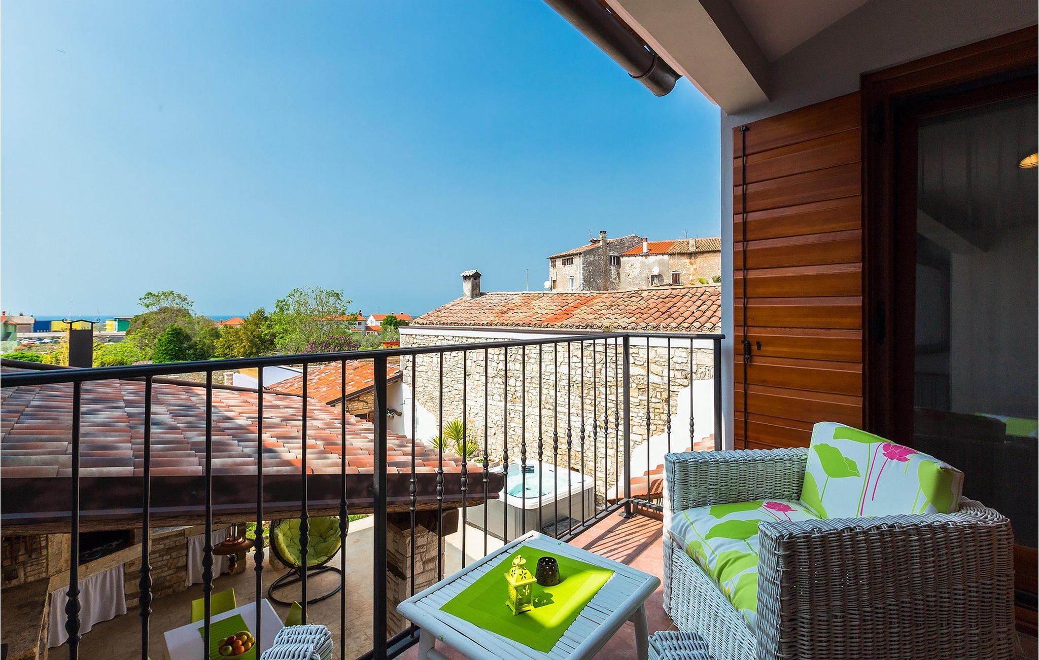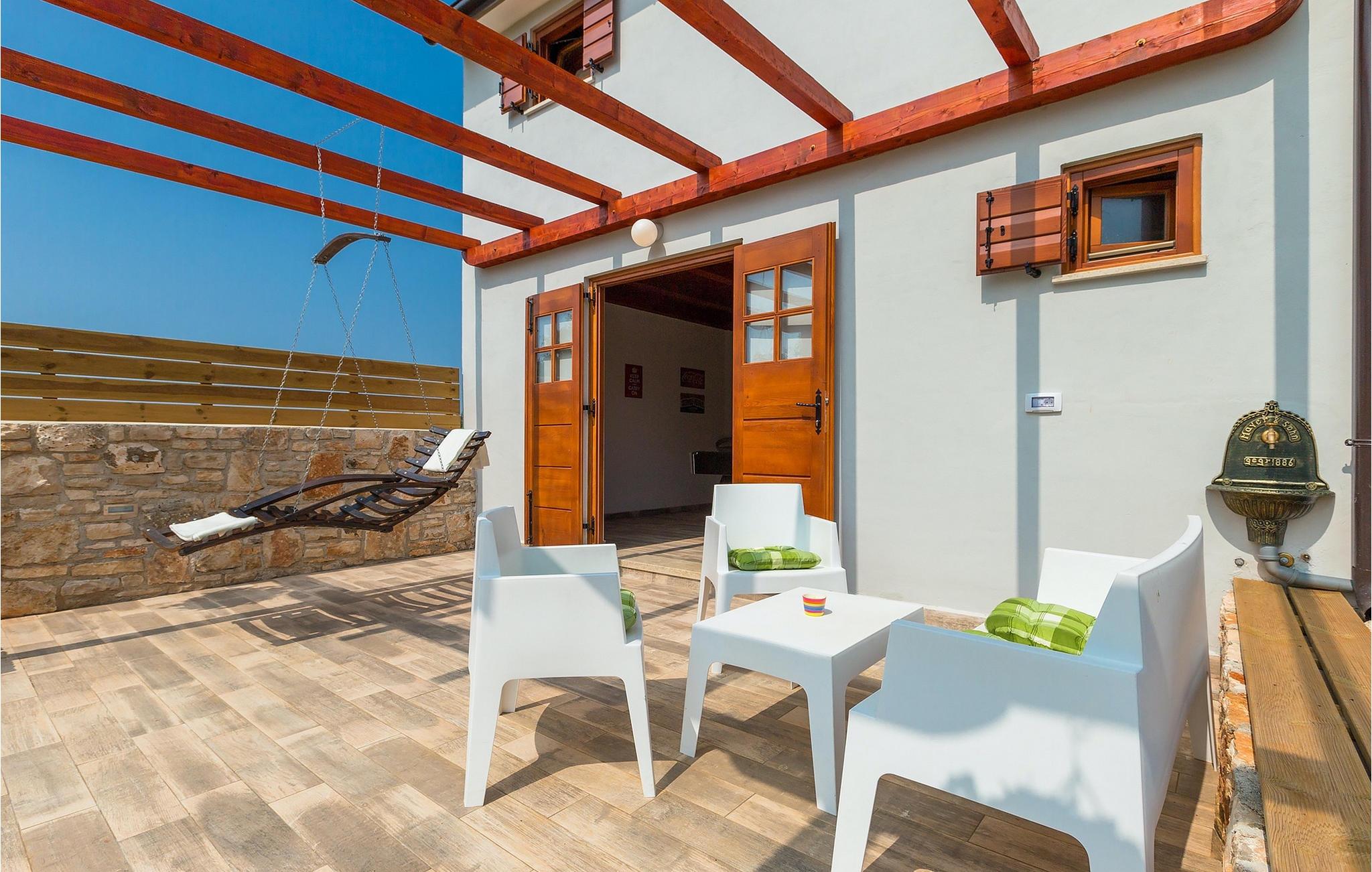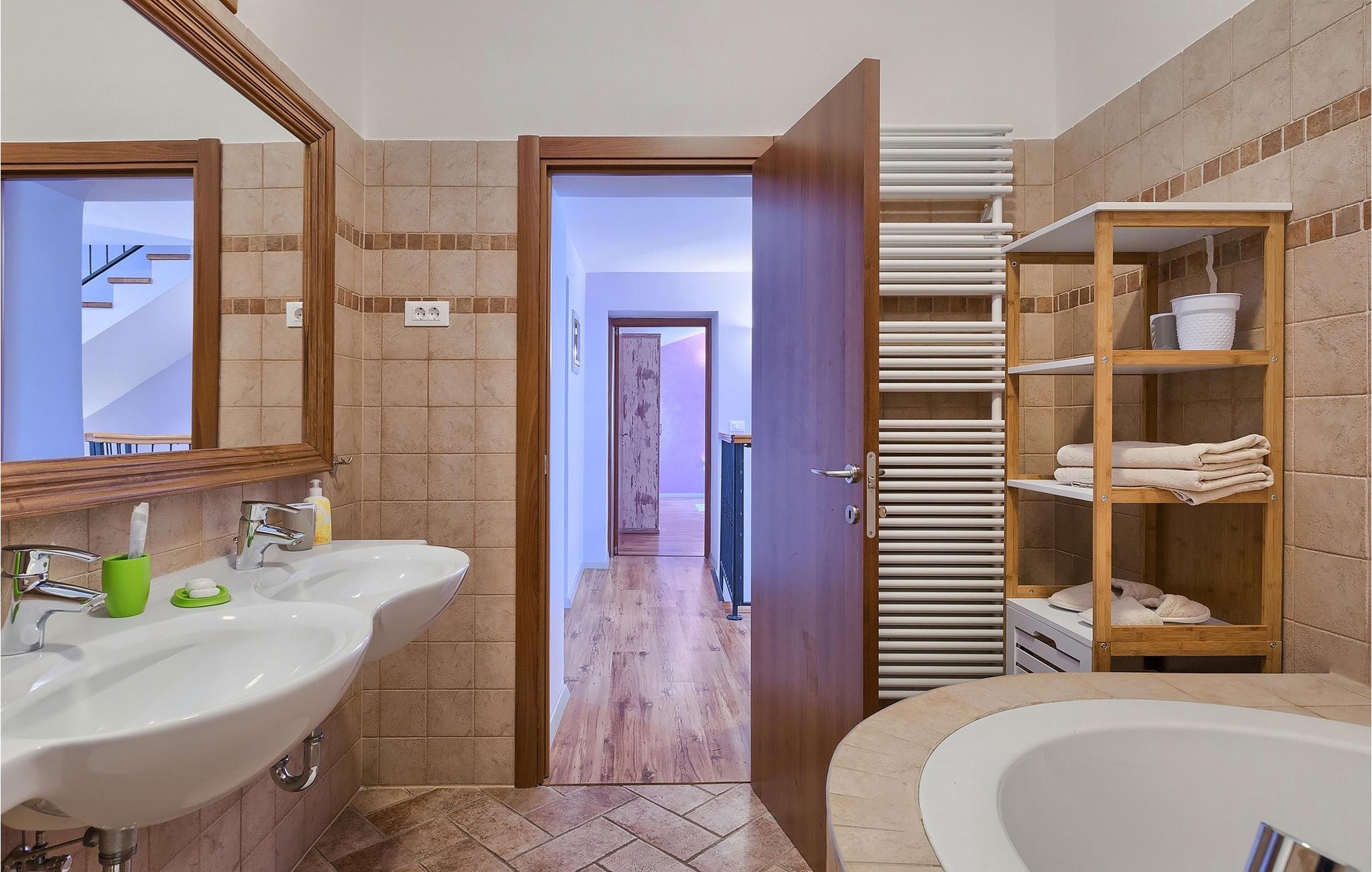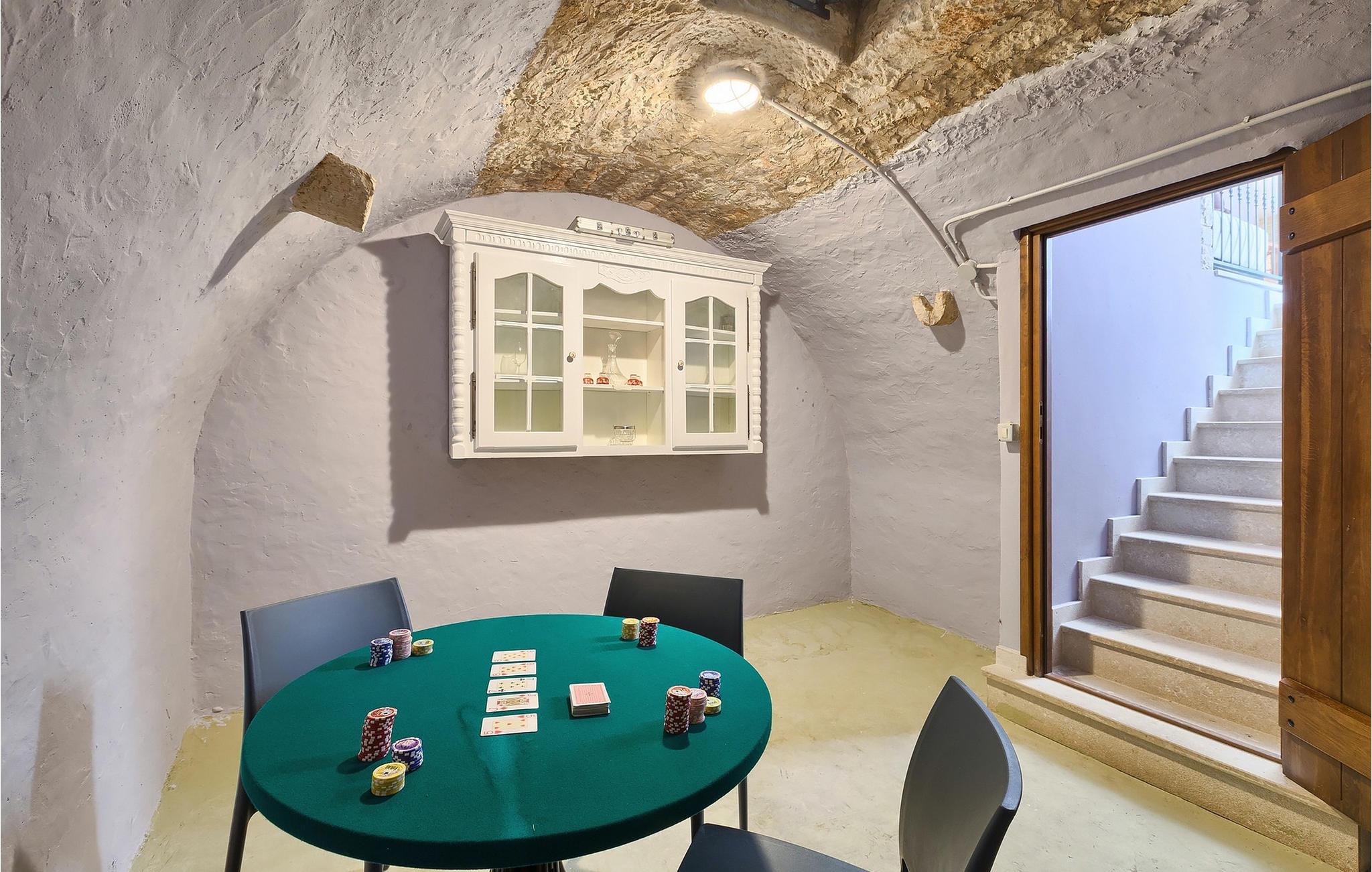 Den sjarmerende Villa San Rocco ligger i sentrum av den lille historiske byen Vodnjan, bare noen få minutter fra Istrias største by, Pula. Villaen er en perfekt blanding av rustikke og moderne elementer som får deg til å føle deg som hjemme. Med et samlet boareal på 270 kvadratmeter er det plass til opptil 8+2 personer, og villaen er nydelig innredet. Villa San Rocco er et restaurert, tradisjonelt istrisk hus fordelt på tre etasjer. Første etasje består av et sjarmerende, velutstyrt kjøkken, en stor spiseplass med kullgrill, en koselig stue og et bad. I første etasje finner du et spillrom med pokerbord og bordfotball. Fire sjarmerende innredede soverom har dobbeltseng. 3 av soverommene ligger i første etasje, mens det siste ligger i andre etasje. Villaens uteområde vil overvelde deg. Foran villaen er det en stor terrasse med overbygd spiseplass og kullgrill, et utendørs boblebad og et innbydende privat basseng. Rett rundt hjørnet ligger en stor plen hvor du kan slappe av i hengekøyen mens du leser favorittboken din. Derfra har du også tilgang til villaen, hvor du finner et biljardbord. Villaen er ideell for familier som ønsker en avslappende ferie med mange aktiviteter. Så ikke gå glipp av denne muligheten og bestill Villa San Rocco, som ligger i den lille, sjarmerende byen Vodnjan, bare en kort kjøretur fra fantastiske Pula.