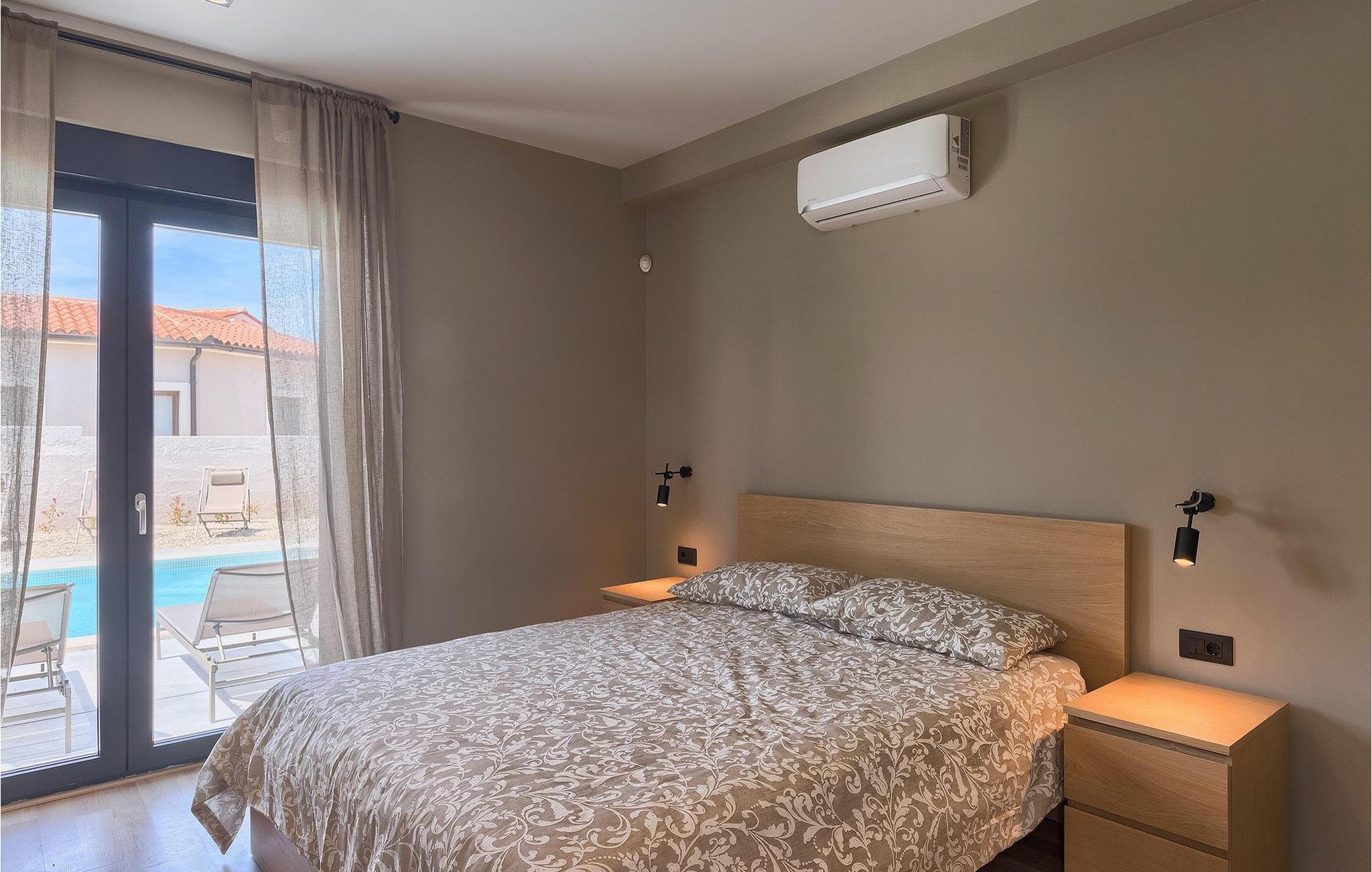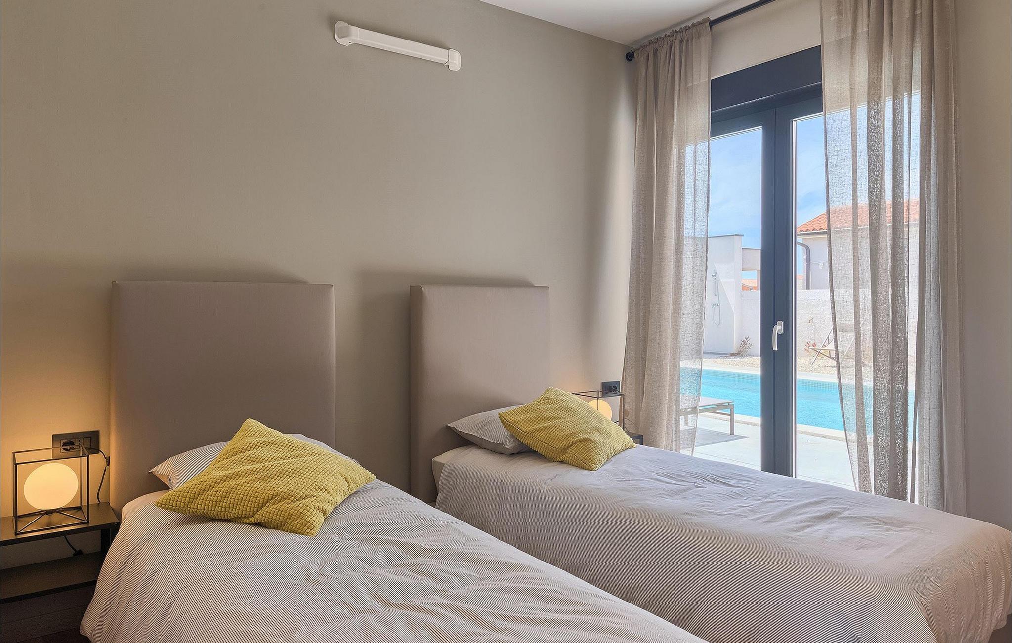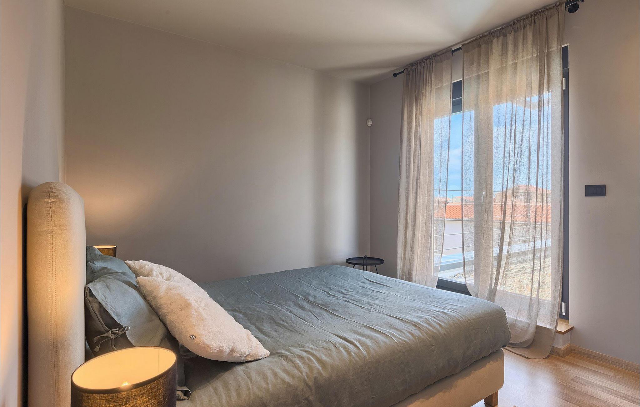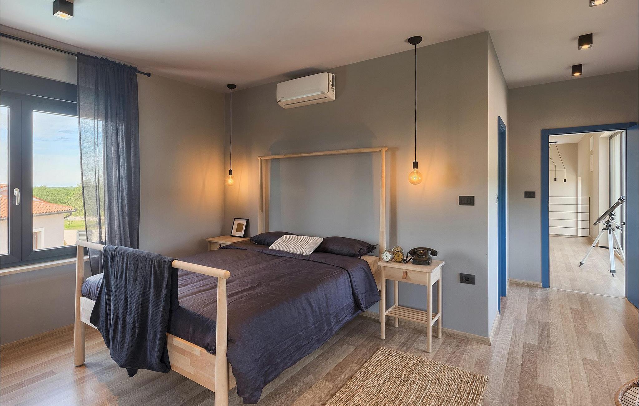 Denne vakre, moderne villaen ligger i rolige Vodnjan nær Pula, omgitt av fredelig middelhavsnatur. Villaen har plass til 8 + 2 personer og har privat basseng, uteservering med grill, WiFi og klimaanlegg. Første etasje består av en stilfullt innredet stue med kjøkken og spiseplass samt 2 soverom, et bad og et gjestetoalett. Soverommene har direkte utgang til den store terrassen og bassenget. De to andre soverommene med eget bad og balkong ligger i første etasje. Fra balkongen med en koselig sittegruppe kan du nyte den vakre utsikten over havet og de grønne omgivelsene.