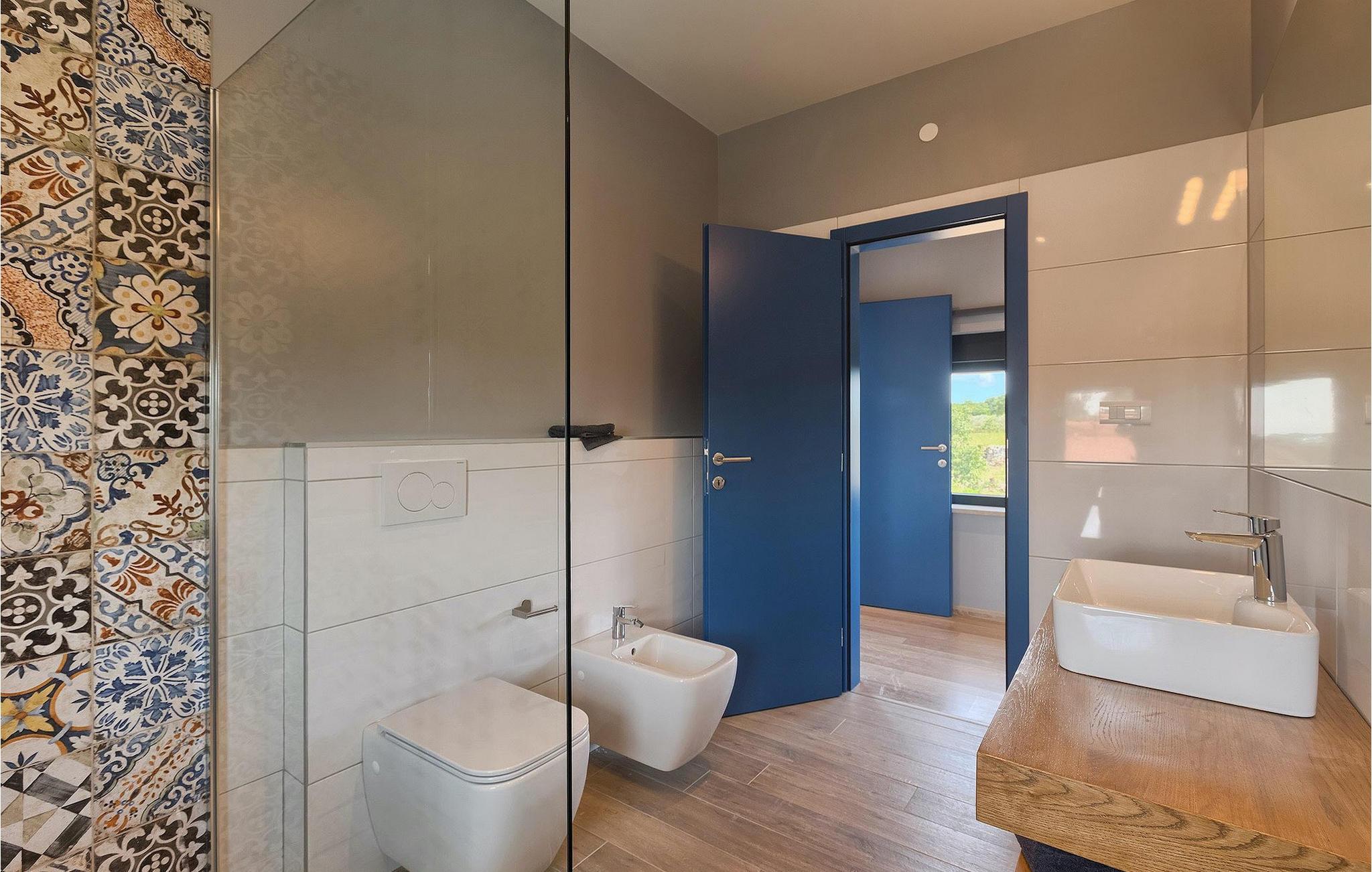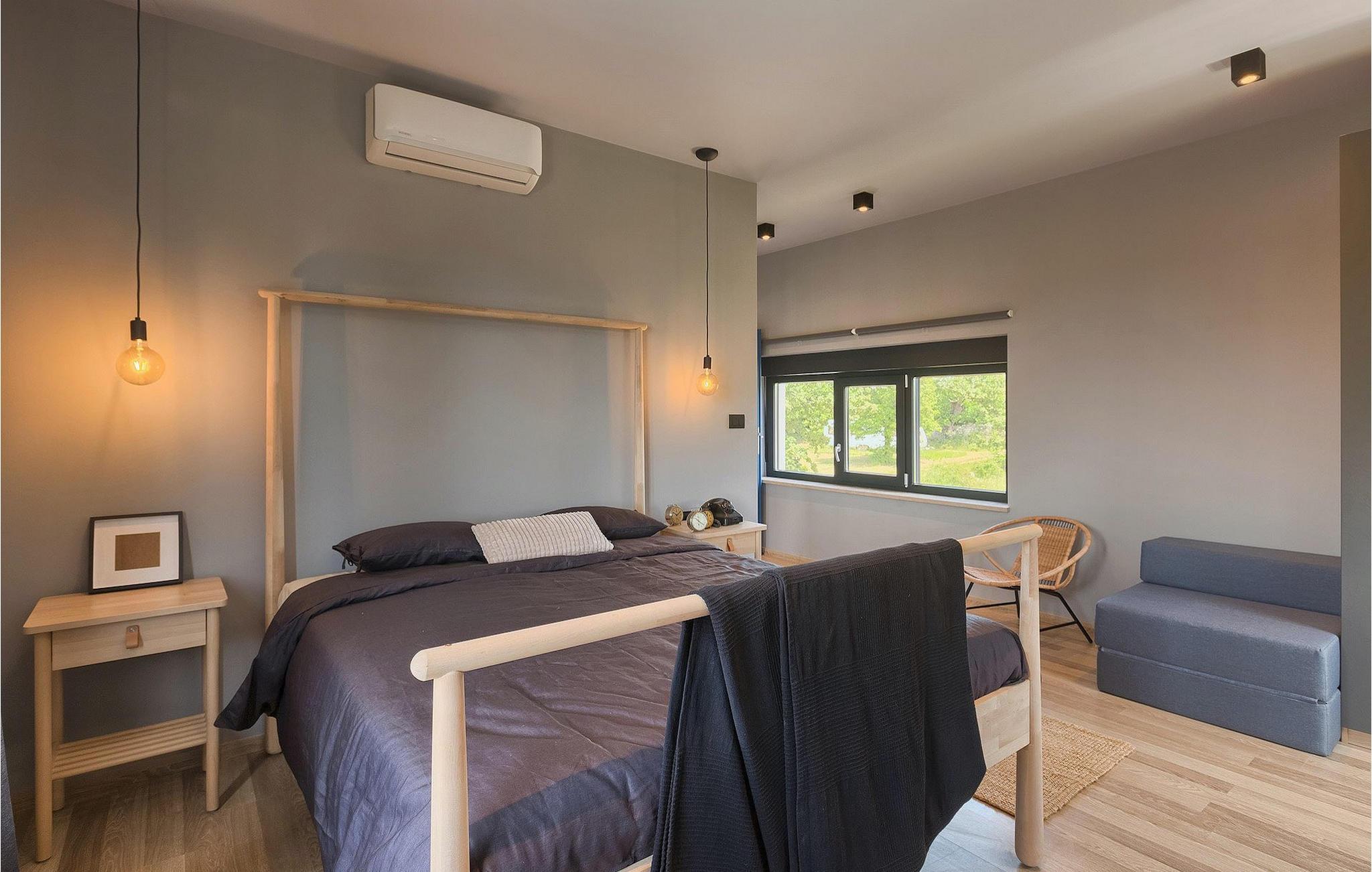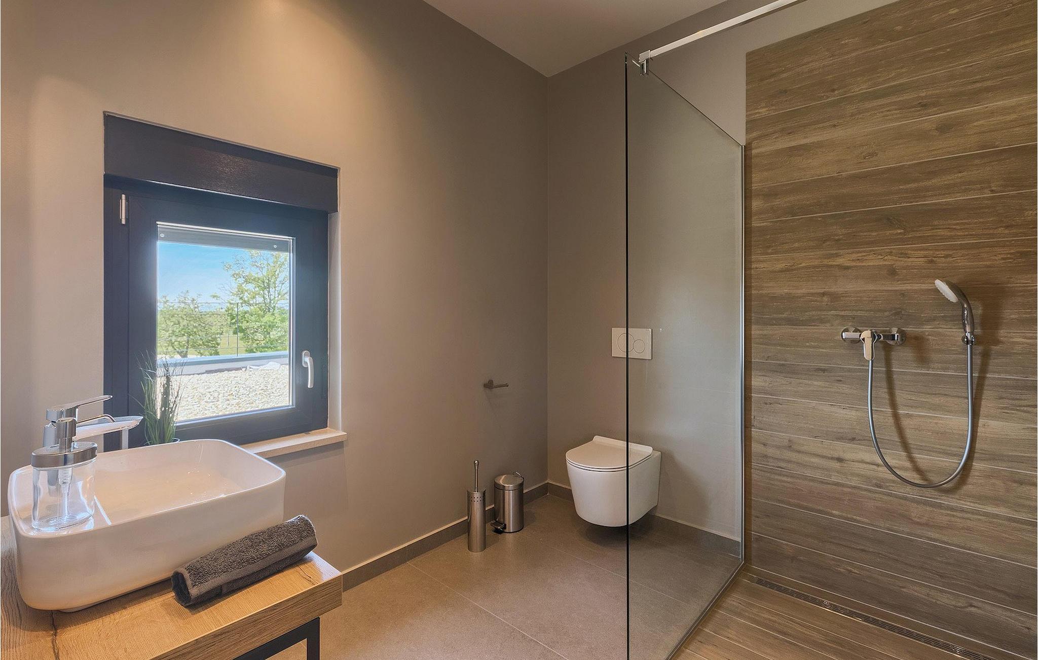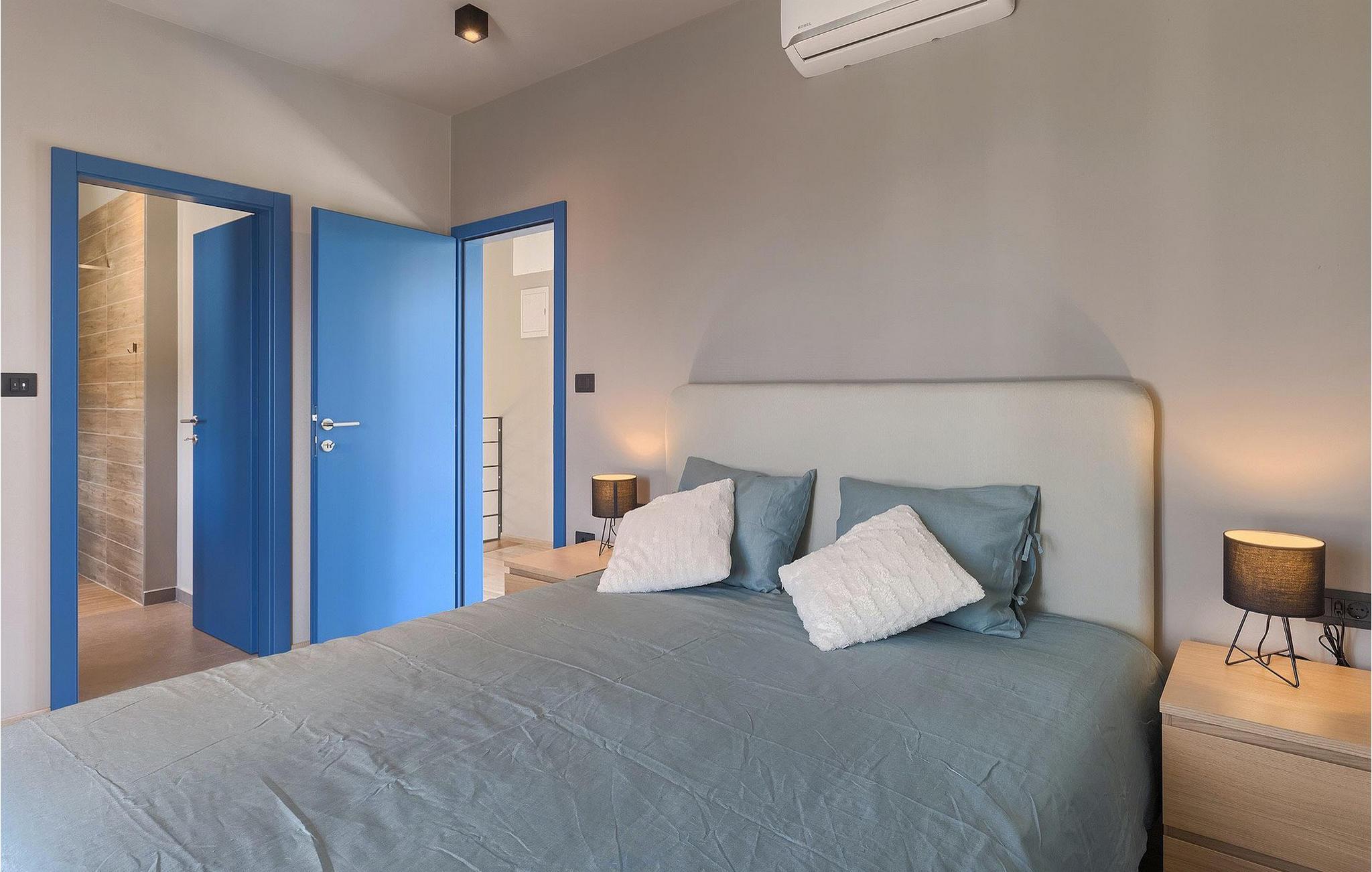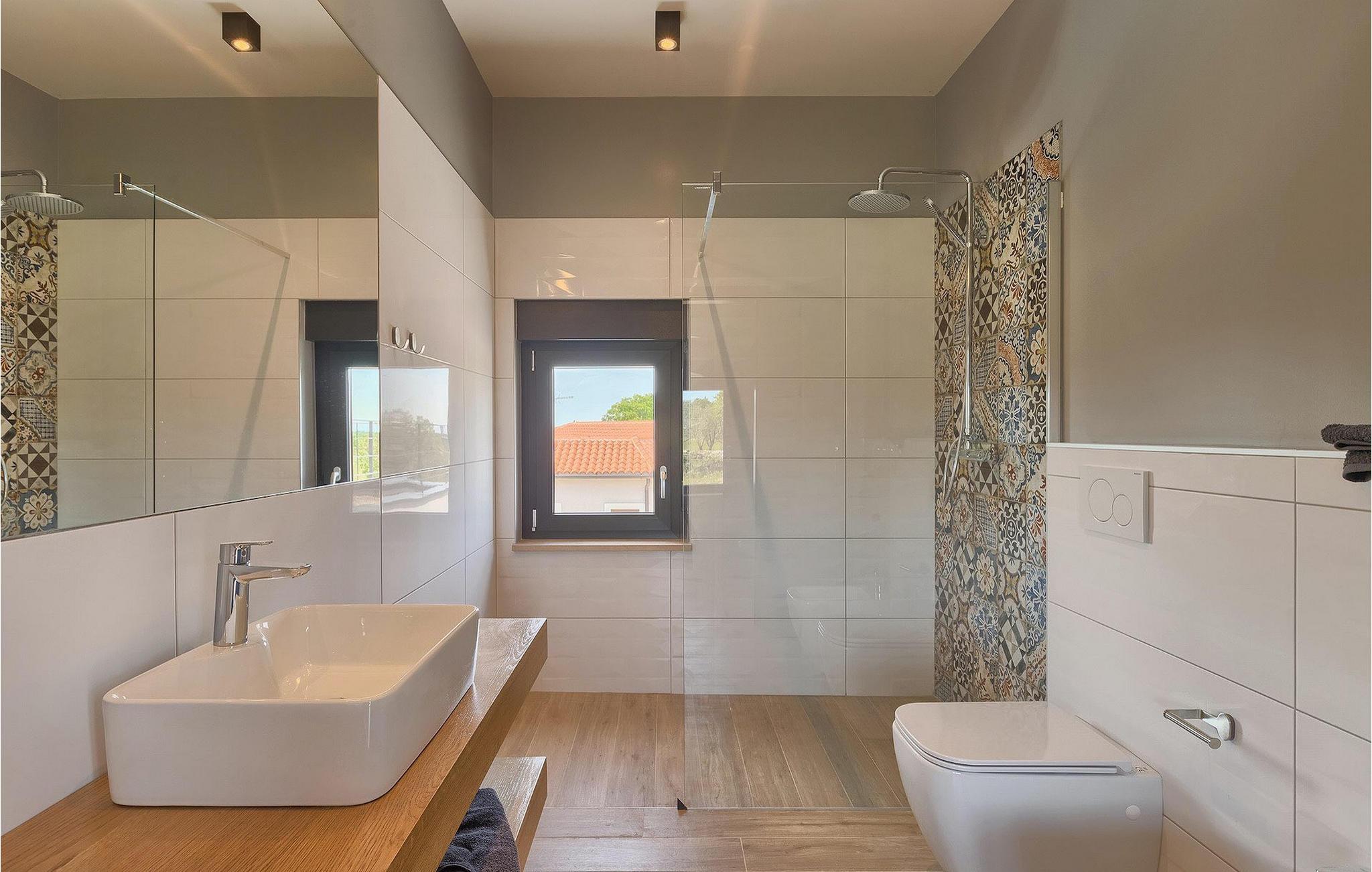 Denne vakre, moderne villaen ligger i rolige Vodnjan nær Pula, omgitt av fredelig middelhavsnatur. Villaen har plass til 8 + 2 personer og har privat basseng, uteservering med grill, WiFi og klimaanlegg. Første etasje består av en stilfullt innredet stue med kjøkken og spiseplass samt 2 soverom, et bad og et gjestetoalett. Soverommene har direkte utgang til den store terrassen og bassenget. De to andre soverommene med eget bad og balkong ligger i første etasje. Fra balkongen med en koselig sittegruppe kan du nyte den vakre utsikten over havet og de grønne omgivelsene.