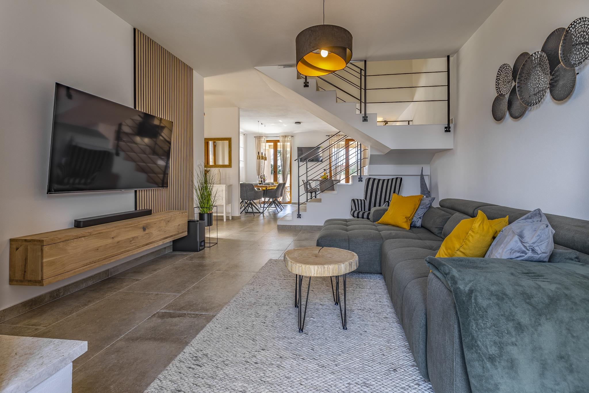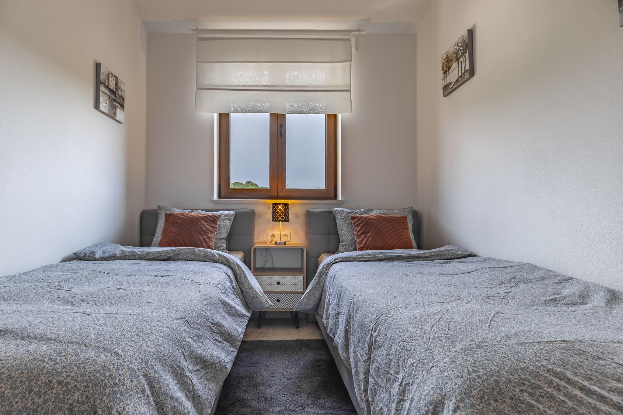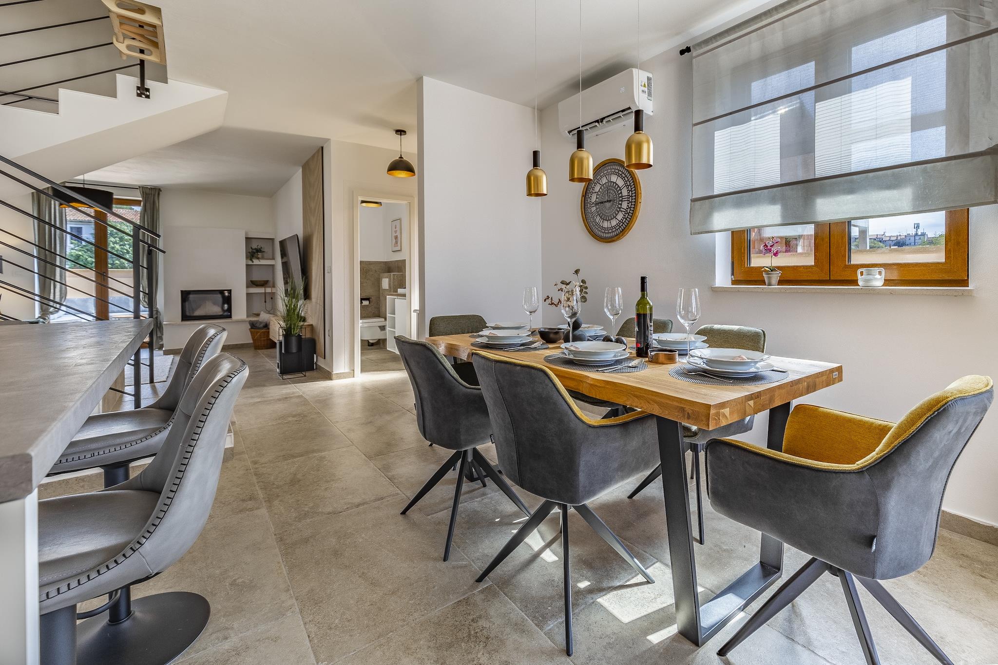 Denne romslige 3-roms villaen ligger kun 1 km fra Vodnjan sentrum, og har plass til opptil 7 gjester og tilbyr en avslappende tilflukt nær Istriakysten. Med havet og stranden kun 5 km unna, og Pula lufthavn kun 9 km unna, er det en praktisk base for å utforske regionens kulturelle og naturlige høydepunkter. Villaen har et fullt utstyrt kjøkken, koselig stue med satellitt-TV og to bad, inkludert ett eget bad med balkong. Soverommene har klimaanlegg, og tilleggsfasiliteter inkluderer et vaskerom, barneseng og barnestol. Utenfor kan du nyte en privat terrasse, inngjerdet hage og grillplass, perfekt for utendørs servering. Gjestene kan slappe av i det private boblebadet, badstuen eller ta en dukkert i utendørsbassenget. Barn vil elske lekeutstyr, bordtennis og bordfotball, mens voksne kan slappe av på solsengene eller samles rundt utendørssalongen. Gratis parkering og Wi-Fi er inkludert.