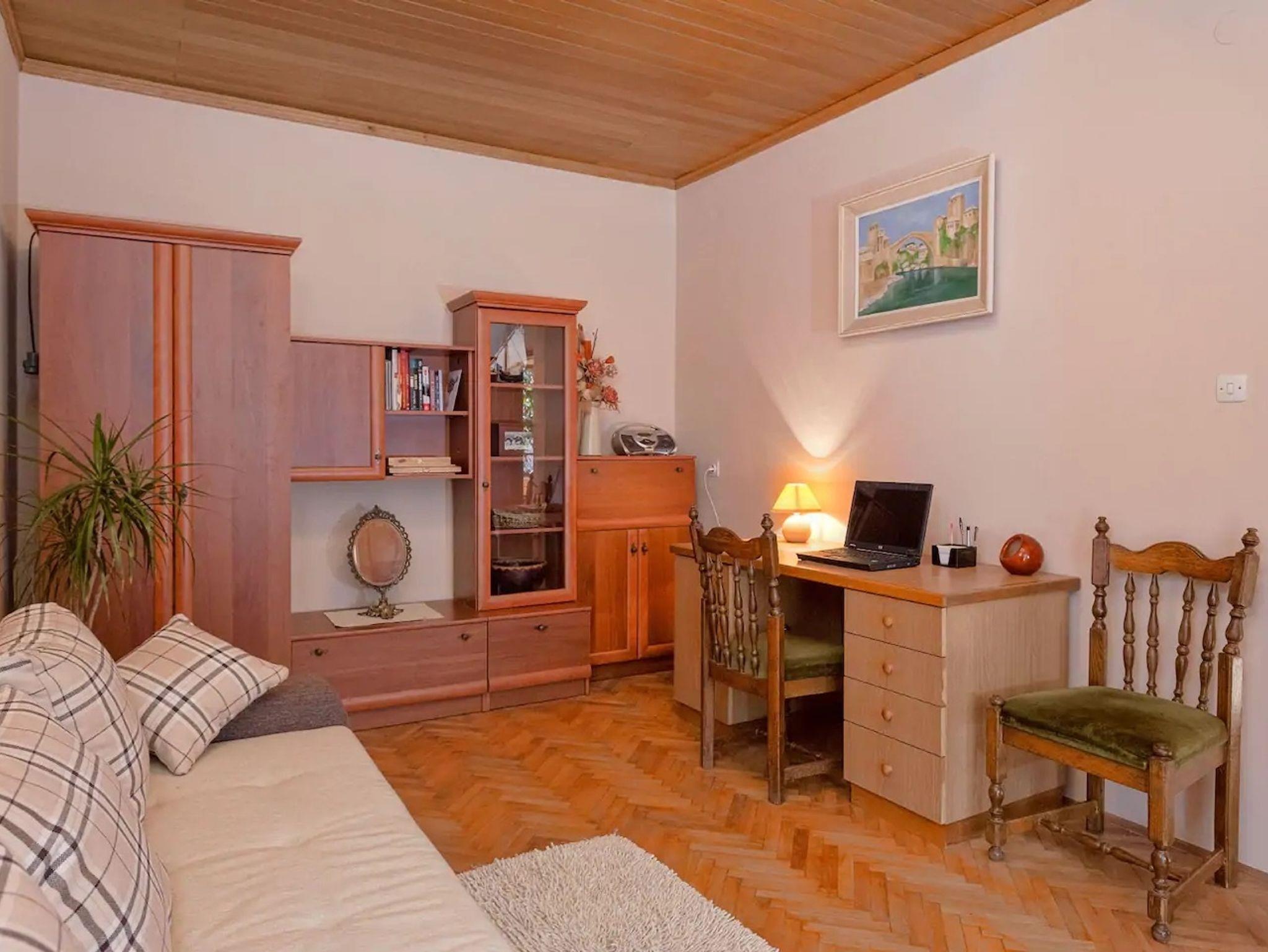 Haus bietet Platz für 11 Gäste. Die Betten sind in Schlafzimmern, die es 4 gibt, und in Wohnzimmer, innerhalb einer Gesamtfläche von 131m2, angeordnet. Die Gäste haben eine eigene Terrasse zur Verfügung, auf der sie in warmen Sommernächten genießen können. Für vollen Genuss und Entspannung gibt es einen privaten Grill für Gäste dieser Unterkunft. In der Unterkunftseinheit besteht die Möglichkeit des Mitbringens von Haustieren gegen Aufpreis. Räume der gebuchten Unterkunftseinheit werden nicht in eine Ganze verbunden. IM PREIS INBEGRIFFEN: Kurtaxe, Endreinigung, Klimatisierung, Parkplatz, Internet, Kinderbett, Zusatzbett, Bügeleisen, Bügelbrett, Föhn, tragbarer Grill. VERBINDLICHE ZUSÄTZLICHE KOSTEN: Aufzahlung für Kurzaufenthalte (prozentualer Zuschlag pro Nächtigungsanzahl: 30% - 1, 20% - 2, 10% - 3). UNVERBINDLICHE ZUSÄTZLICHE KOSTEN: Haustiere (7,00 € pro Nacht). Die Verfügbarkeit zusätzlicher Dienstleistungen in Ihrem reservierten Termin und die Preise derselben (falls nicht aufgeführt) müssen im Voraus überprüft werden. Zusätzliche Dienstleistungen die in der Zahlungsaufforderung nicht aufgeführt sind werden direkt beim Vermieter bezahlt, angenommen der Gast nutzt auch diese. Ermäßigung auf den Grundpreis: Gratistag 21=19 (bei einem Aufenthalt von 21 Tagen oder mehr erhalten Sie 2 Gratistage für den Aufenthalt bis 31.12.26).