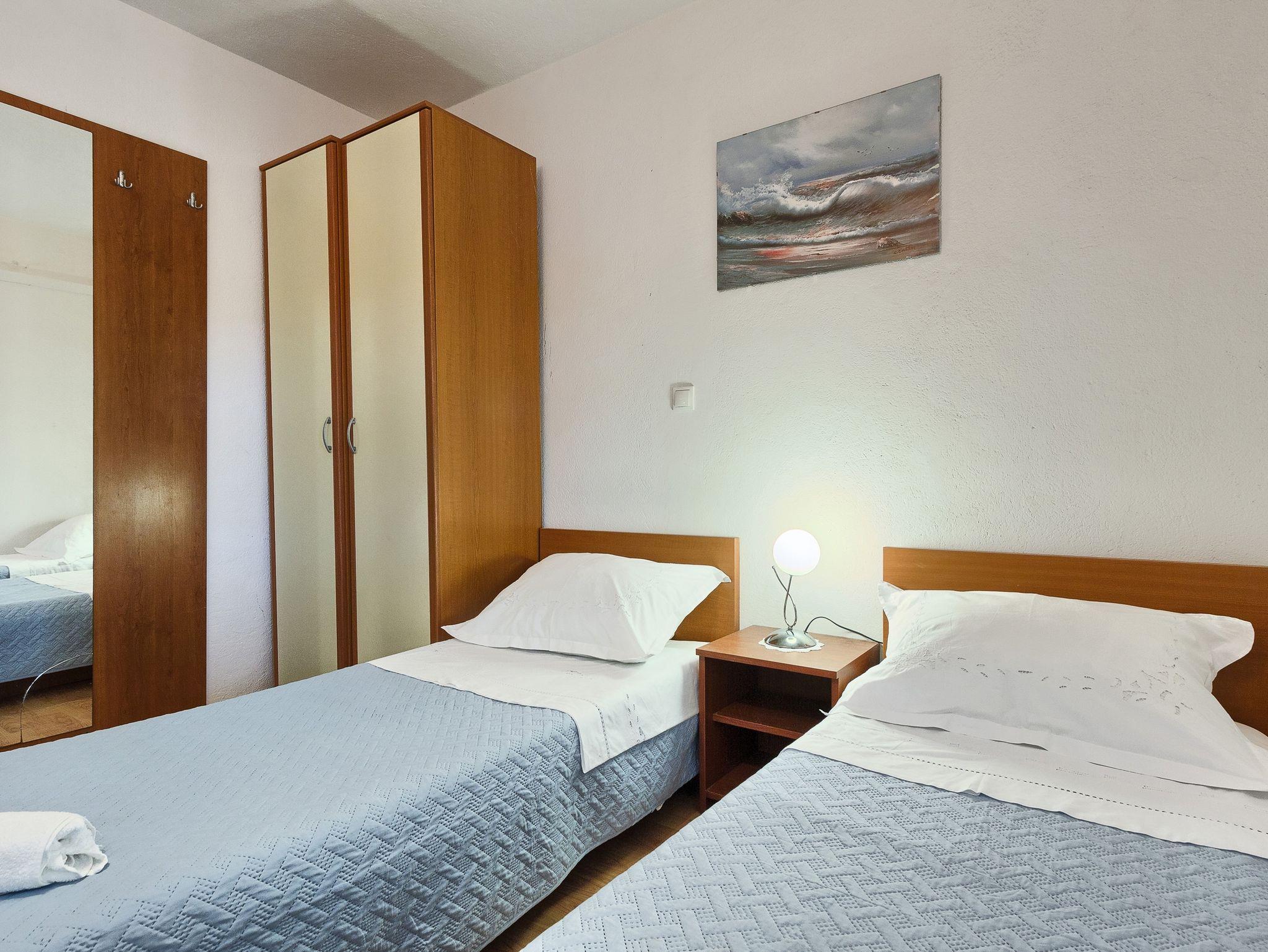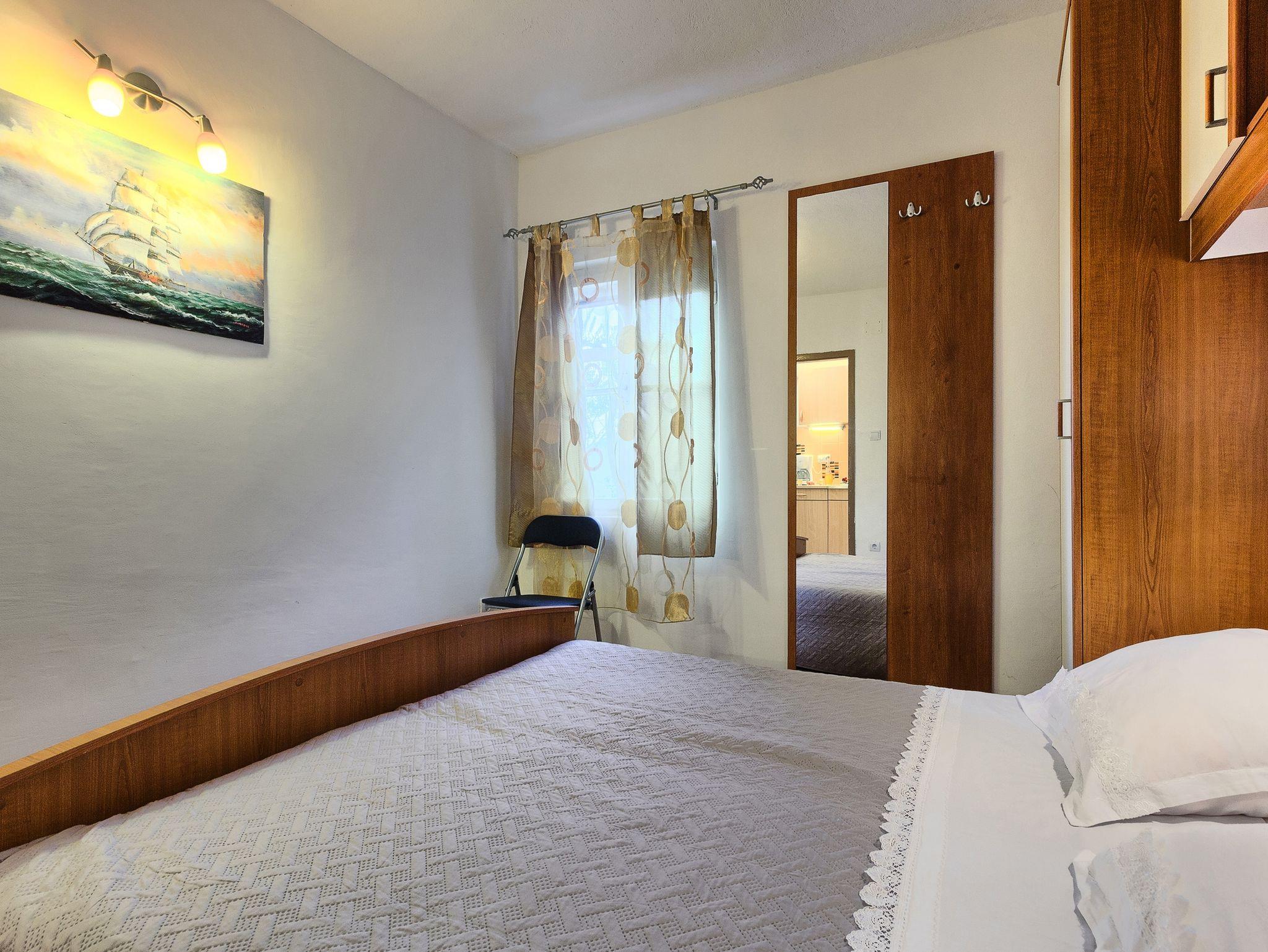 Ferienwohnung bietet Platz für 4 Gäste. Die Betten sind in Schlafzimmern, die es 2 gibt, innerhalb einer Gesamtfläche von 33m2, angeordnet. Die Gäste haben eine eigene Terrasse zur Verfügung, auf der sie in warmen Sommernächten genießen können. Das Apartment bietet Meerblick. Es ist erlaubt, Speisen auf dem Gemeinschafts-Grill vorzubereiten. In der Unterkunftseinheit besteht die Möglichkeit des Mitbringens von Haustieren gegen Aufpreis. IM PREIS INBEGRIFFEN: Kurtaxe, Endreinigung, Klimatisierung, Parkplatz, Internet, Wäschewaschen, Kinderbett, Bügeleisen, Bügelbrett, Föhn. VERBINDLICHE ZUSÄTZLICHE KOSTEN: Aufzahlung für Kurzaufenthalte (prozentualer Zuschlag pro Nächtigungsanzahl: 30% - 1, 20% - 2, 10% - 3). UNVERBINDLICHE ZUSÄTZLICHE KOSTEN: Bootsanlegeplatz (10,00 € pro Nacht), Haustiere (10,00 € pro Nacht). Die Verfügbarkeit zusätzlicher Dienstleistungen in Ihrem reservierten Termin und die Preise derselben (falls nicht aufgeführt) müssen im Voraus überprüft werden. Zusätzliche Dienstleistungen die in der Zahlungsaufforderung nicht aufgeführt sind werden direkt beim Vermieter bezahlt, angenommen der Gast nutzt auch diese.