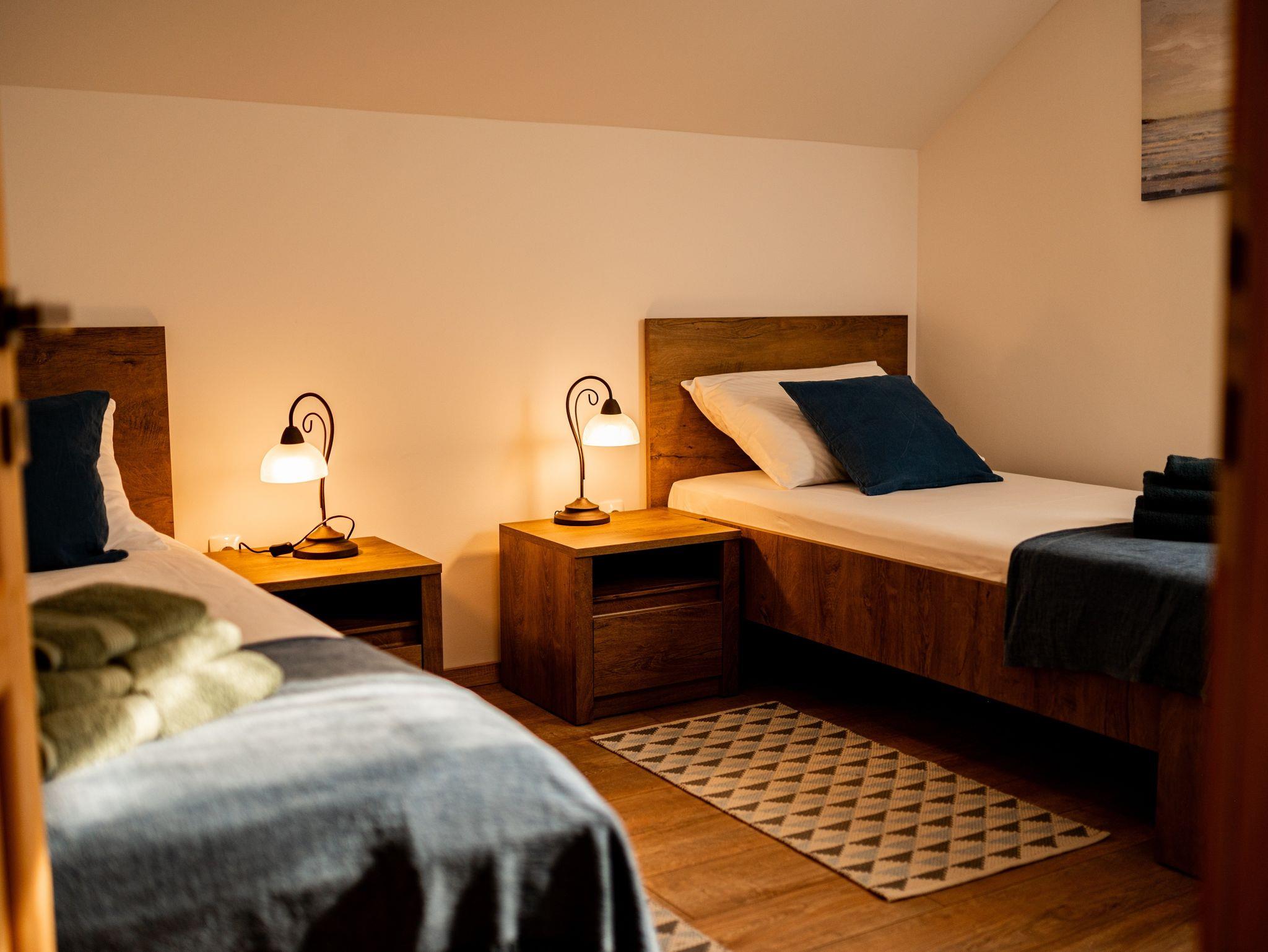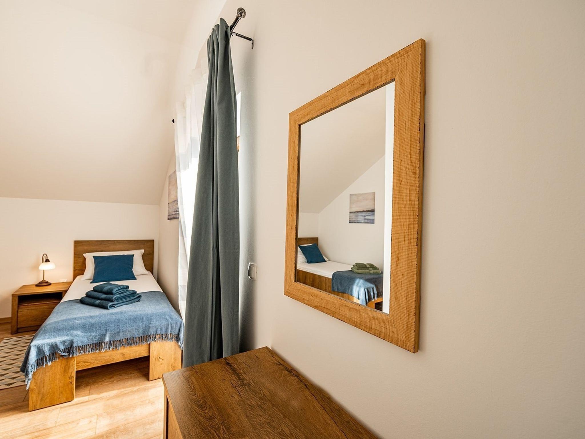 Haus bietet Platz für 8 Gäste. Die Betten sind in Schlafzimmern, die es 3 gibt, und in Wohnzimmer, innerhalb einer Gesamtfläche von 80m2, angeordnet. Die Gäste haben eine eigene Terrasse zur Verfügung, auf der sie in warmen Sommernächten genießen können. Für vollen Genuss und Entspannung gibt es einen privaten Grill für Gäste dieser Unterkunft. Während ihres Aufenthalts können sich Gäste im privaten Schwimmbad entspannen. In der Unterkunftseinheit besteht die Möglichkeit des Mitbringens von Haustieren gegen Aufpreis. Räume der gebuchten Unterkunftseinheit werden nicht in eine Ganze verbunden. IM PREIS INBEGRIFFEN: Kurtaxe, Endreinigung, Klimatisierung, Pool, Parkplatz, Internet, Kinderbett, Bügeleisen, Bügelbrett, Föhn. UNVERBINDLICHE ZUSÄTZLICHE KOSTEN: Haustiere (10,00 € pro Nacht). Die Verfügbarkeit zusätzlicher Dienstleistungen in Ihrem reservierten Termin und die Preise derselben (falls nicht aufgeführt) müssen im Voraus überprüft werden. Zusätzliche Dienstleistungen die in der Zahlungsaufforderung nicht aufgeführt sind werden direkt beim Vermieter bezahlt, angenommen der Gast nutzt auch diese.