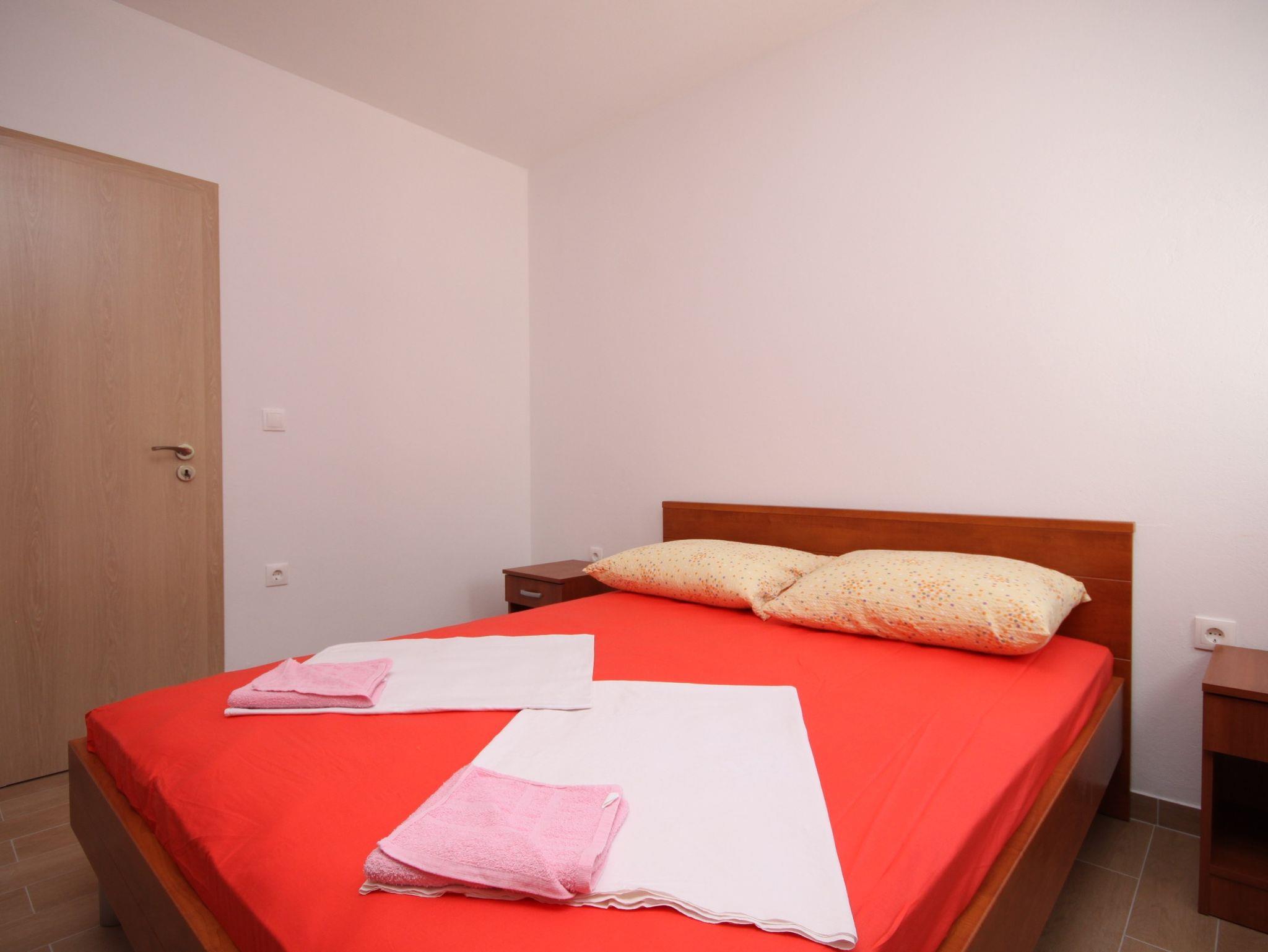 Ferienwohnung bietet Platz für 6 Gäste. Die Betten sind in Schlafzimmern, die es 2 gibt, und in Wohnzimmer, innerhalb einer Gesamtfläche von 59m2, angeordnet. Die Gäste haben eine eigene Terrasse zur Verfügung, auf der sie in warmen Sommernächten genießen können. Das Apartment bietet Meerblick. Es ist erlaubt, Speisen auf dem Gemeinschafts-Grill vorzubereiten. In der Unterkunftseinheit besteht die Möglichkeit des Mitbringens von Haustieren gegen Aufpreis. IM PREIS INBEGRIFFEN: Kurtaxe, Endreinigung, Klimatisierung, Parkplatz, Internet, Bügeleisen, Föhn. VERBINDLICHE ZUSÄTZLICHE KOSTEN: Aufzahlung für Kurzaufenthalte (prozentualer Zuschlag pro Nächtigungsanzahl: 30% - 1, 20% - 2, 10% - 3). UNVERBINDLICHE ZUSÄTZLICHE KOSTEN: Wäschewaschen (5,00 € Waschen), Bootsanlegeplatz (5,00 € pro Nacht), Haustiere (7,00 € pro Nacht), Zusatzbett (10,00 € pro Nacht). Die Verfügbarkeit zusätzlicher Dienstleistungen in Ihrem reservierten Termin und die Preise derselben (falls nicht aufgeführt) müssen im Voraus überprüft werden. Zusätzliche Dienstleistungen die in der Zahlungsaufforderung nicht aufgeführt sind werden direkt beim Vermieter bezahlt, angenommen der Gast nutzt auch diese.