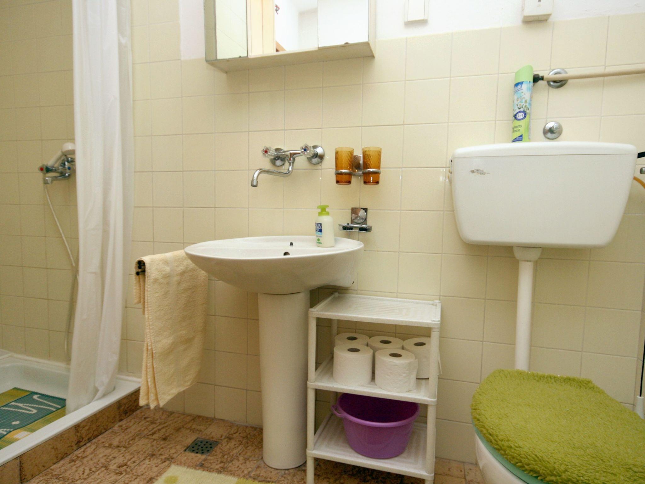 Ferienwohnung bietet Platz für 6 Gäste. Die Betten sind in Schlafzimmern, die es 2 gibt, und in Wohnzimmer, innerhalb einer Gesamtfläche von 46m2, angeordnet. Die Gäste haben eine eigene Terrasse zur Verfügung, auf der sie in warmen Sommernächten genießen können. Das Apartment bietet Meerblick. Für vollen Genuss und Entspannung gibt es einen privaten Grill für Gäste dieser Unterkunft. IM PREIS INBEGRIFFEN: Kurtaxe, Endreinigung, Klimatisierung, Parkplatz, Internet, Bügeleisen, Bügelbrett, Föhn. VERBINDLICHE ZUSÄTZLICHE KOSTEN: Aufzahlung für Kurzaufenthalte (prozentualer Zuschlag pro Nächtigungsanzahl: 30% - 1, 20% - 2, 10% - 3). UNVERBINDLICHE ZUSÄTZLICHE KOSTEN: Wäschewaschen (7,00 € Waschen). Die Verfügbarkeit zusätzlicher Dienstleistungen in Ihrem reservierten Termin und die Preise derselben (falls nicht aufgeführt) müssen im Voraus überprüft werden. Zusätzliche Dienstleistungen die in der Zahlungsaufforderung nicht aufgeführt sind werden direkt beim Vermieter bezahlt, angenommen der Gast nutzt auch diese.