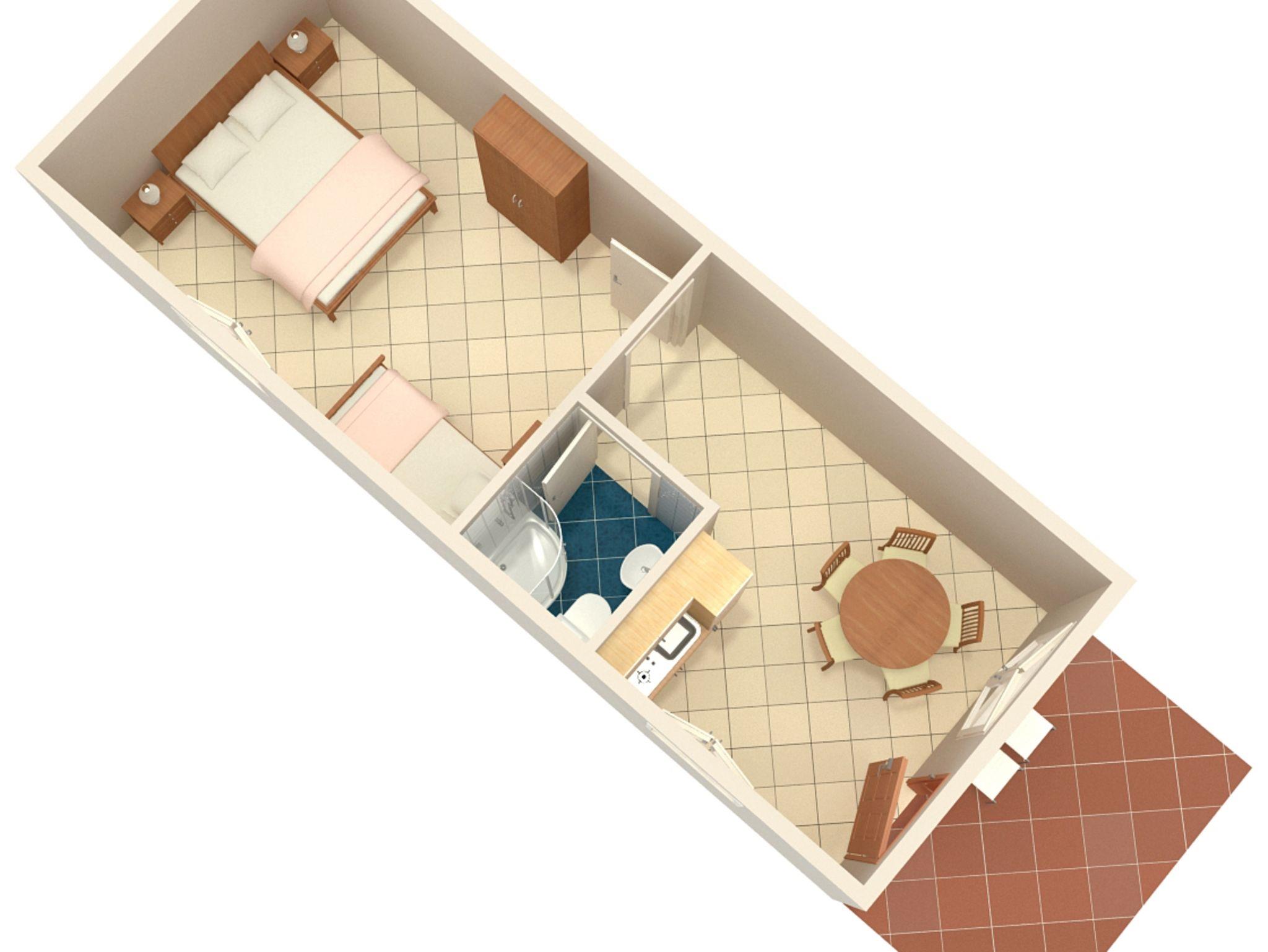 Ferienwohnung bietet Platz für 2 Gäste. Die Betten sind in Schlafzimmern, die es 1 gibt, innerhalb einer Gesamtfläche von 25m2, angeordnet. Die Gäste haben eine eigene Terrasse zur Verfügung, auf der sie in warmen Sommernächten genießen können. Das Apartment bietet Meerblick. Es ist erlaubt, Speisen auf dem Gemeinschafts-Grill vorzubereiten. IM PREIS INBEGRIFFEN: Kurtaxe, Endreinigung, Parkplatz, Internet, Bügeleisen, Bügelbrett, Föhn. VERBINDLICHE ZUSÄTZLICHE KOSTEN: Aufzahlung für Kurzaufenthalte (prozentualer Zuschlag pro Nächtigungsanzahl: 30% - 1, 20% - 2, 10% - 3). UNVERBINDLICHE ZUSÄTZLICHE KOSTEN: Klimatisierung (7,00 € pro Nacht), Wäschewaschen (10,00 € Waschen), 1 Bett für Kinder (15,00 € Person/Tag). Die Verfügbarkeit zusätzlicher Dienstleistungen in Ihrem reservierten Termin und die Preise derselben (falls nicht aufgeführt) müssen im Voraus überprüft werden. Zusätzliche Dienstleistungen die in der Zahlungsaufforderung nicht aufgeführt sind werden direkt beim Vermieter bezahlt, angenommen der Gast nutzt auch diese.