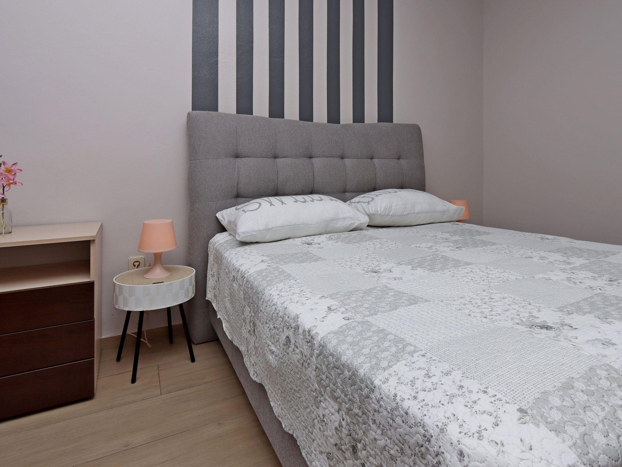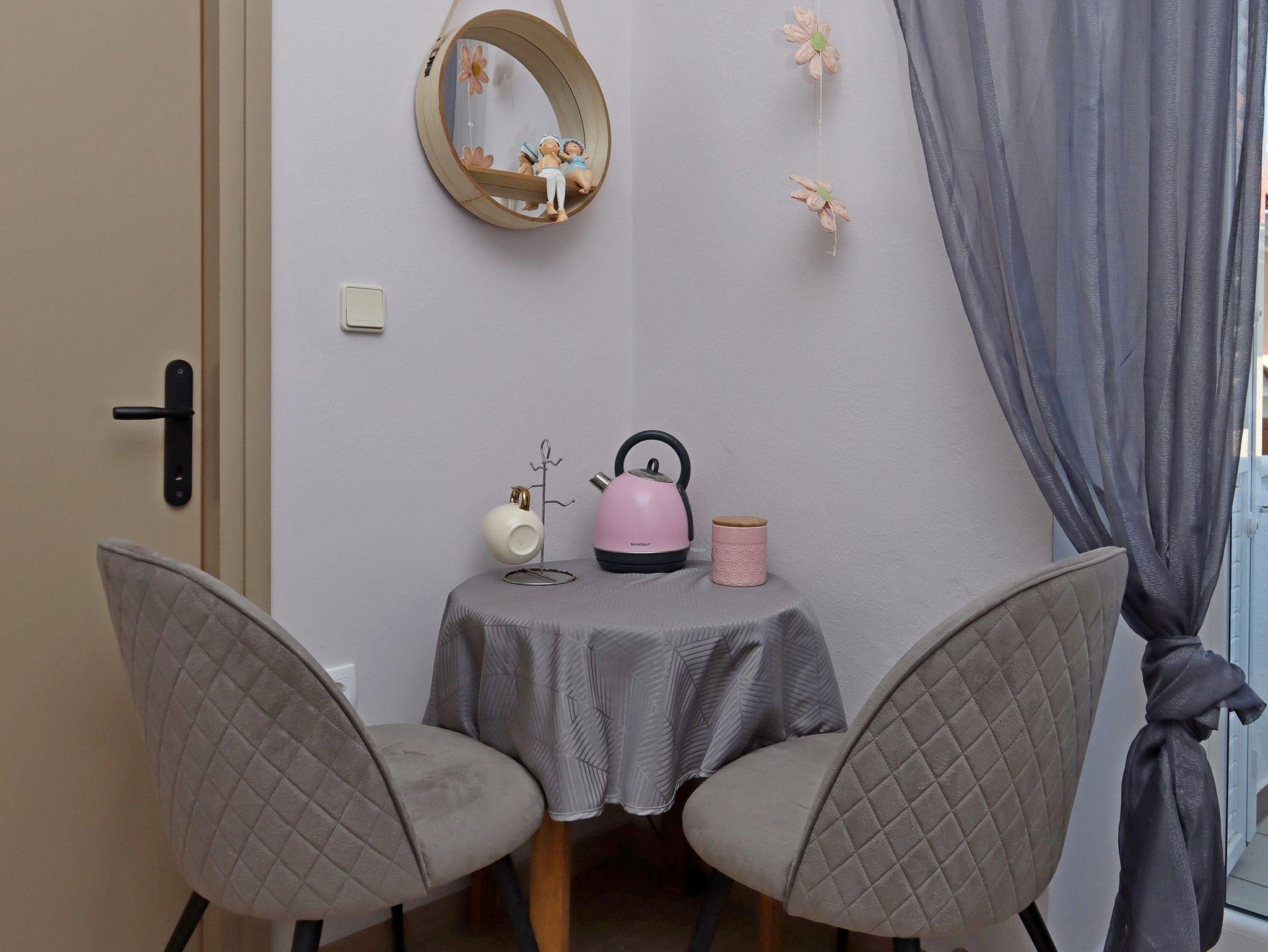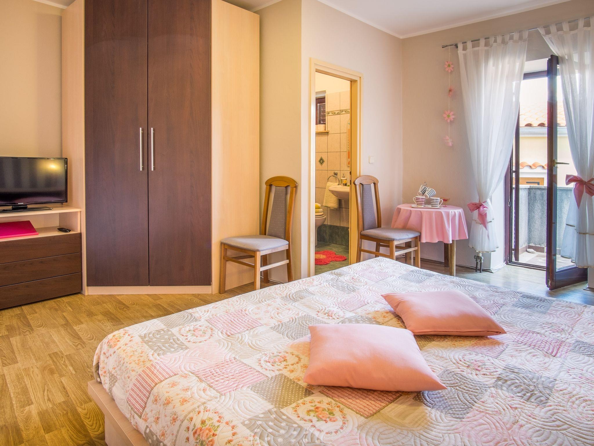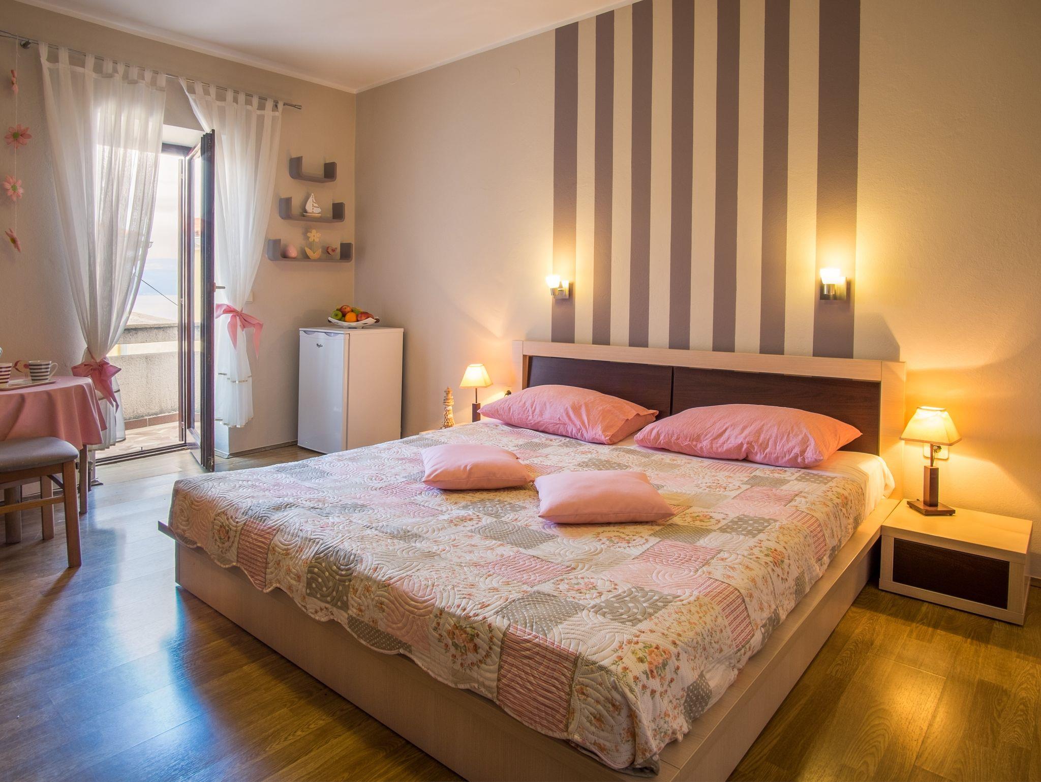 Zimmer bietet Platz für 2 Gäste. Die Betten sind in Schlafzimmern, die es 1 gibt, innerhalb einer Gesamtfläche von 18m2, angeordnet. Die Gäste haben einen eigenen Balkon zur Verfügung, auf der sie in warmen Sommernächten genießen können. Das Zimmer bietet Meerblick. Die reservierte Unterkunftseinheit ist ein Zimmer mit eigenem Badezimmer ohne die Möglichkeit der Nutzung einer Küche. IM PREIS INBEGRIFFEN: Kurtaxe, Endreinigung, Klimatisierung, Zentralheizung, Parkplatz, Internet, Bügeleisen, Föhn. VERBINDLICHE ZUSÄTZLICHE KOSTEN: Aufzahlung für Kurzaufenthalte (prozentualer Zuschlag pro Nächtigungsanzahl: 30% - 1, 20% - 2, 10% - 3). Die Verfügbarkeit zusätzlicher Dienstleistungen in Ihrem reservierten Termin und die Preise derselben (falls nicht aufgeführt) müssen im Voraus überprüft werden. Zusätzliche Dienstleistungen die in der Zahlungsaufforderung nicht aufgeführt sind werden direkt beim Vermieter bezahlt, angenommen der Gast nutzt auch diese. Ermäßigung auf den Grundpreis: Gratistag 21=19 (bei einem Aufenthalt von 21 Tagen oder mehr erhalten Sie 2 Gratistage für den Aufenthalt bis 31.12.26).