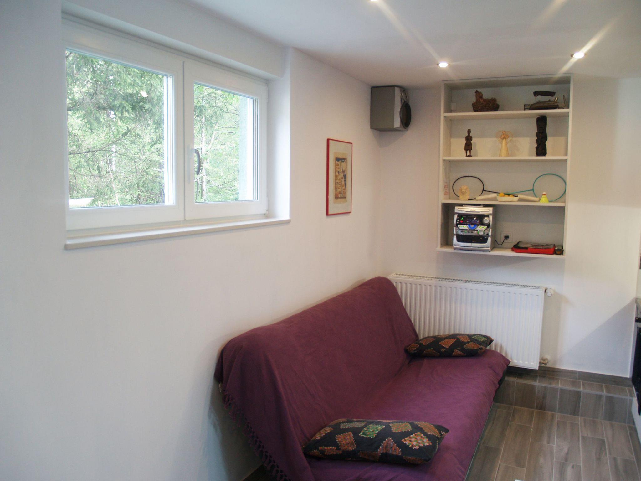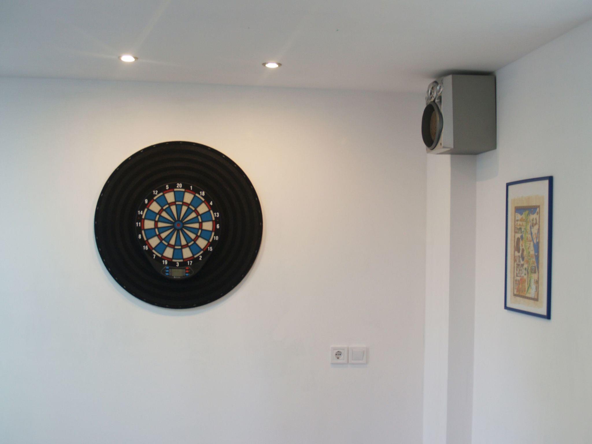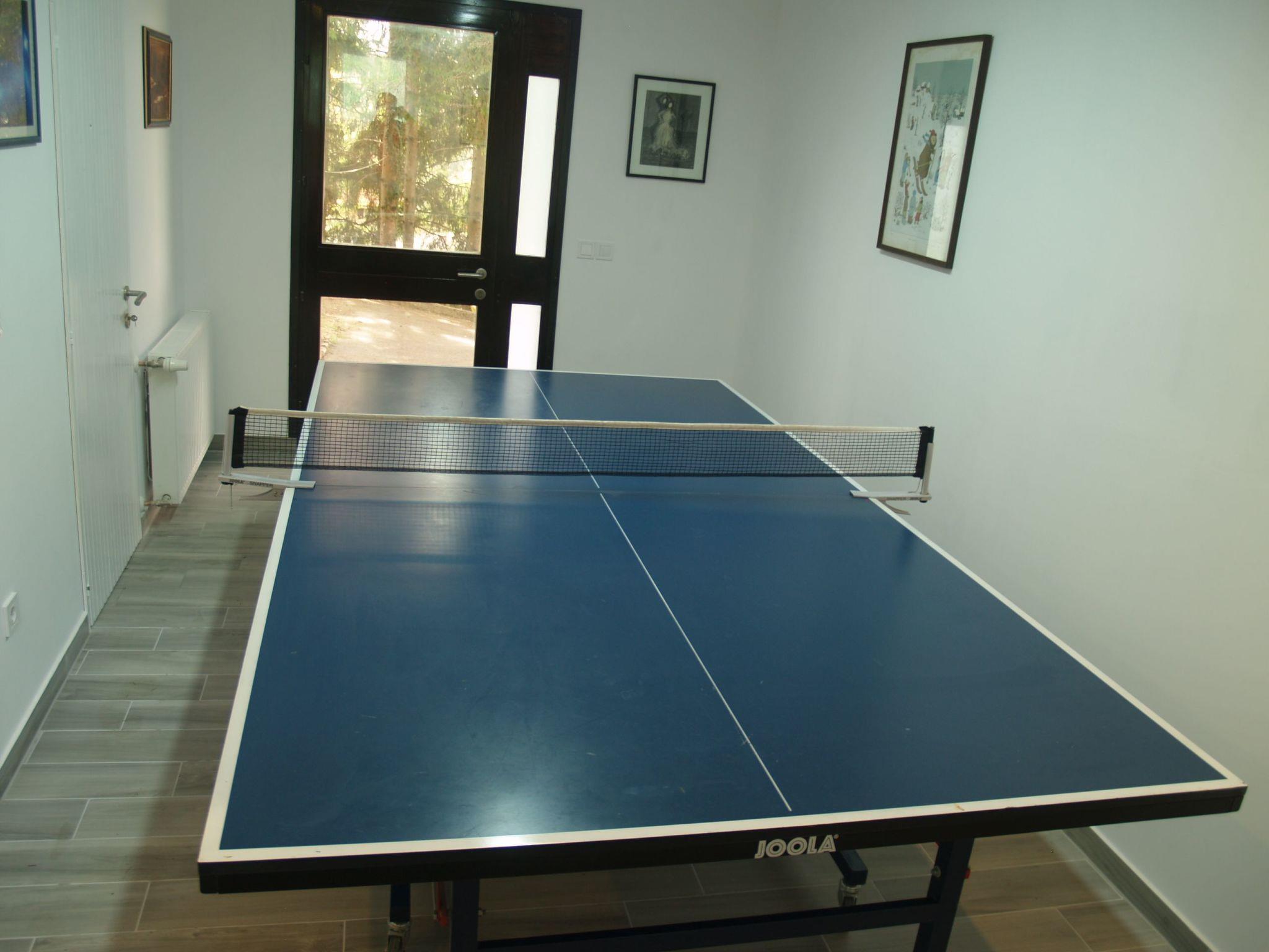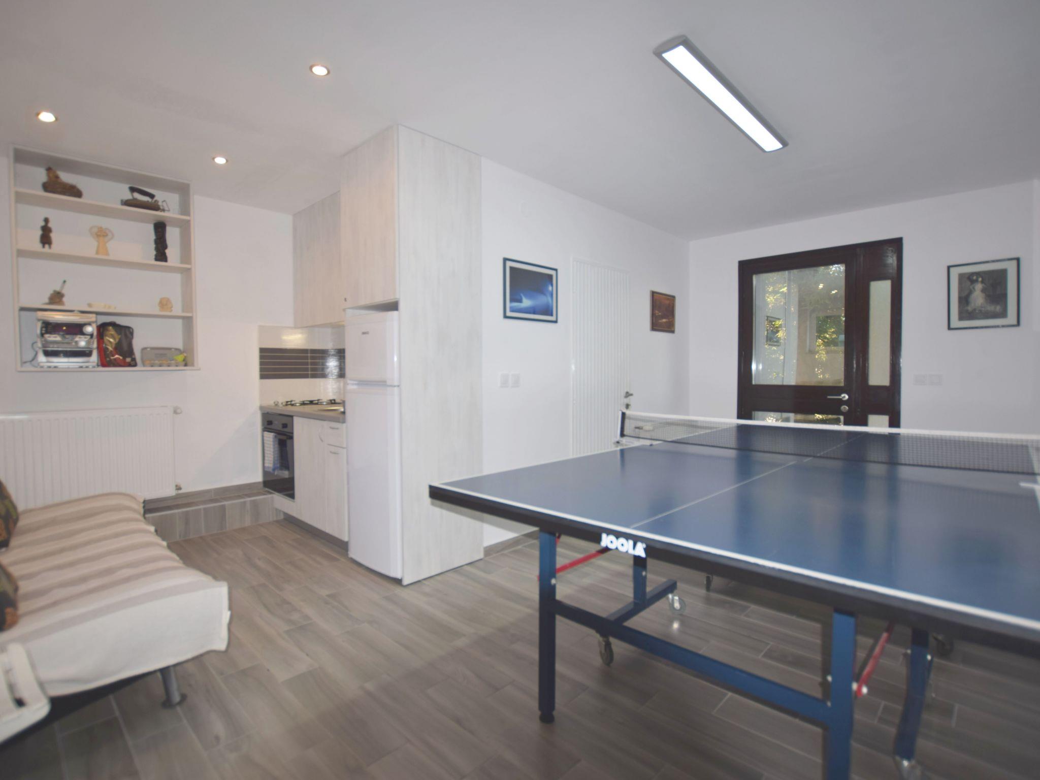 Space for party guests on the ground floor with a separate entrance has an additional kitchen, extra bed, music, and equipment for a variety of activities: table tennis, darts, badminton, sledges, chairs and a table on the outdoor terrace, deck chairs