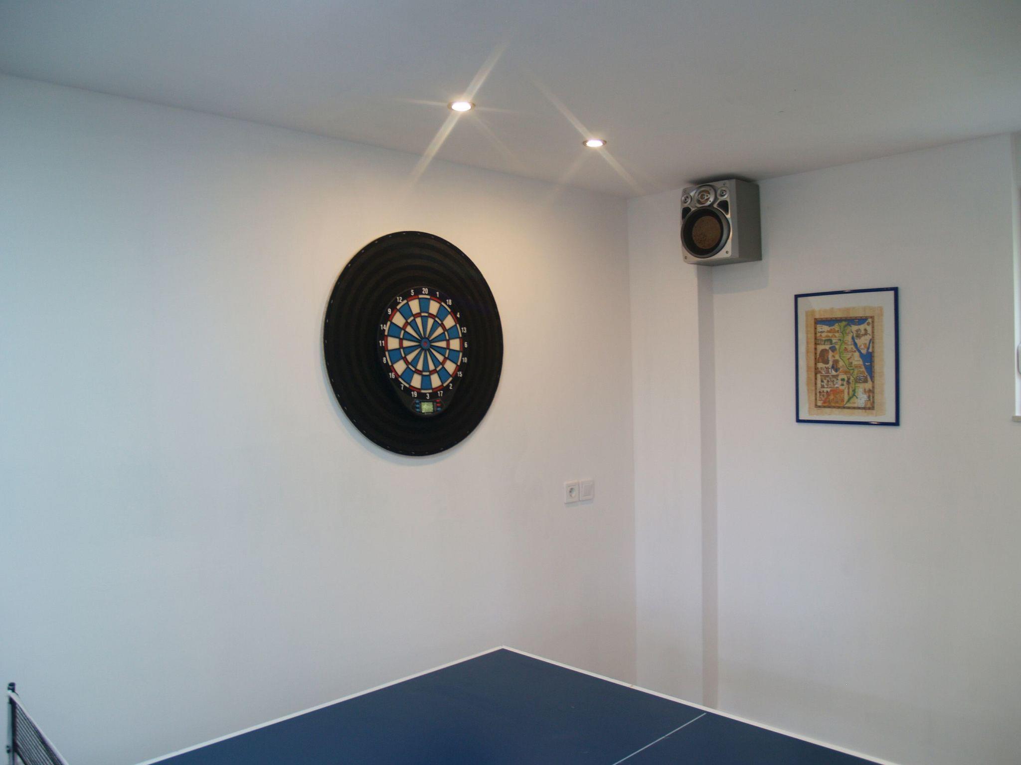 - Space for party guests on the ground floor with a separate entrance has an additional kitchen, extra bed, music, and equipment for a variety of activities: table tennis, darts, badminton, sledges, chairs and a table on the outdoor terrace, deck chairs