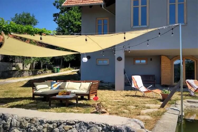 Dette nydelige feriehuset ligger i hjertet av det fjellrike Gorski Kotar, hvor du kan oppleve Kroatiens uberørte natur. Ligger i sørlig skråning med fantastisk utsikt på de omkringliggende åsene, furuskoger, felt og landsbyer, tilbyr dette huset en komfortabel innkvartering for inntil 8 personer. Ditt hus sprer seg over tre nivåer. Hovedinngangen ligger i første etasje hvor du kan finne et fullt utstyrt åpen kjøkkenløsning som er forbundet med spisestuen og en stue med peis. Et soverom og et bad er også plassert der. To mer elegante soverom, et bad og et lekerom er plassert ovenpå. I lekerommet kan du spille biljard, skyte dart, spille spill og mye mer. På det laveste nivået av huset er det en badstue, et tredje bad og et herlig avslappingsområde. Fra verandaen går du inn i en romslig hage som består av en naturlig dam med svømmebasseng, boblebad og solterrasse. Tenk på et ideelt sted å nyte naturen omgitt av trær og blomster. Hus eiere kan gi deg noen innenlandske økologiske produkter som brød, egg, ost, sesongens frukt og så videre. De kan også hjelpe til med å organisere rafting eller kajakkpadling, familie turer, ridning, paintball ...