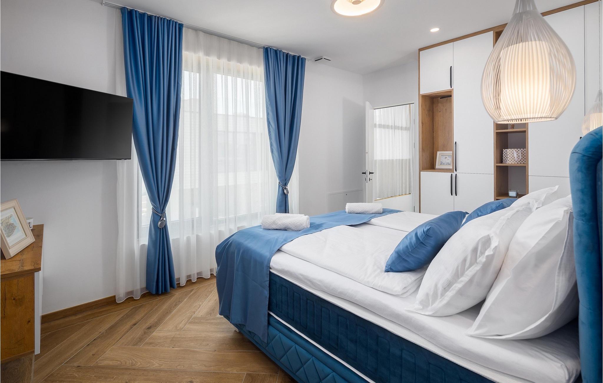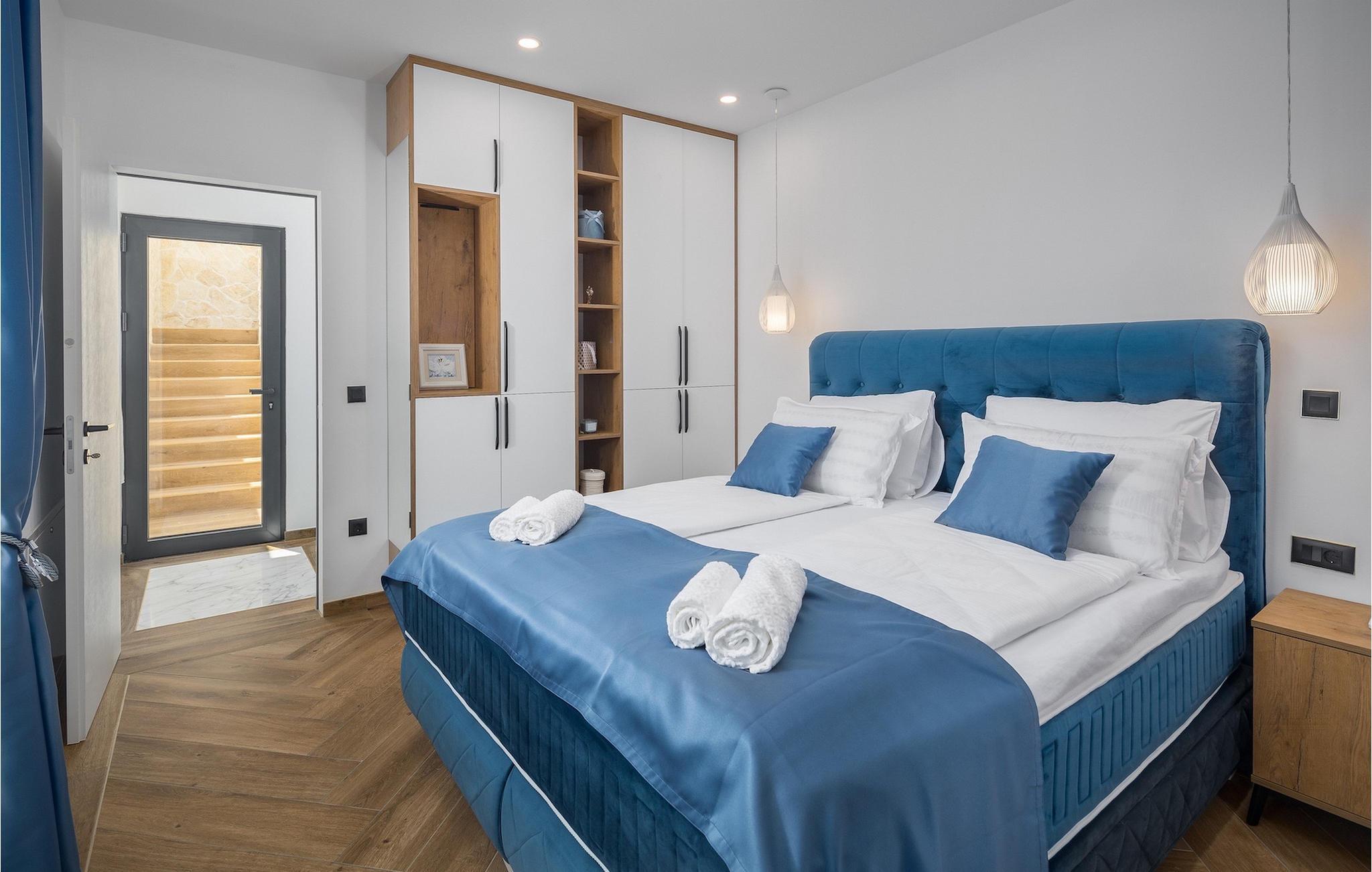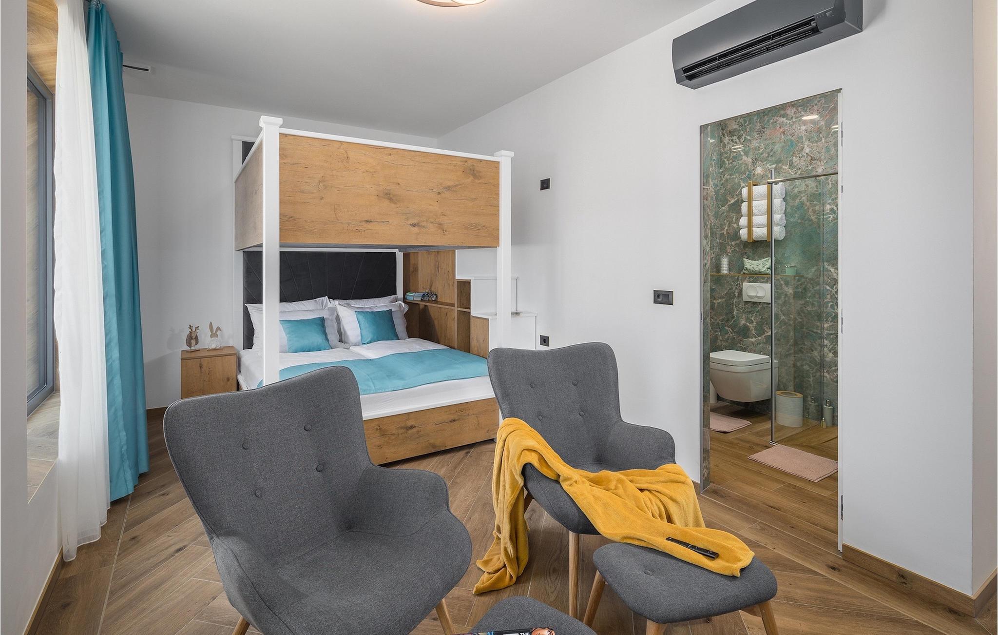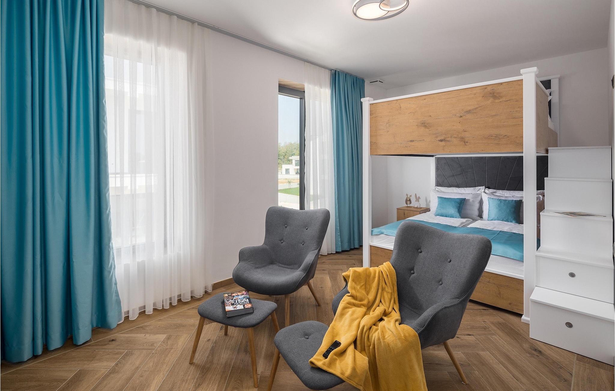 Hvis du går opp trappen til første etasje, finner du de resterende tre soverommene, hvert med sitt eget bad. Hvert rom er unikt innredet og kjennetegnes av at det er lagt vekt på hver minste detalj. Hovedsoverommet skiller seg imidlertid ut, med sin egen store balkong med utsikt over bassenget og utendørsterrassen. Å kunne drikke morgenkaffen i fred og ro på sin egen balkong gjør det mye lettere å våkne om morgenen, selv på ferie! Funtana er en liten by i Istria, som ligger ved kysten mellom byene Vrsar og Pore. Med sin beliggenhet rett ved kysten har du alle fordelene ved en sommerferie like i nærheten, med en rekke strender som Funtana, Puntica og hundestranden Bijela Uvala. Besøk den vakre byen Vrsar, bare 4 kilometer unna, eller ta en dagstur til Pore, som er mest kjent for Eufrasius-basilikaen. Basilikaen ble bygget på 600-tallet, under biskop Eufrasius og keiser Justinian I, og er et karakteristisk monument over bysantinsk kunst. Den er til og med oppført på UNESCOs verdensarvliste. Gå ikke glipp av endagsutflukter til den sentrale delen av Istria, der det finnes mange tavernaer og vingårder hvor du kan smake på istriske delikatesser som prosciutto og karakteristiske vintyper.