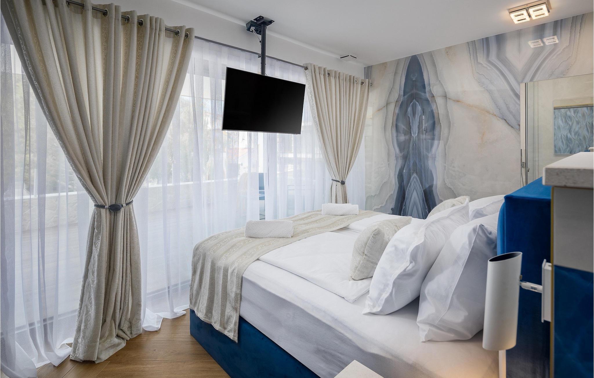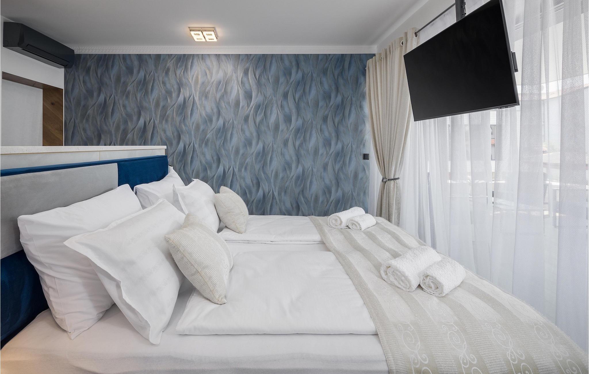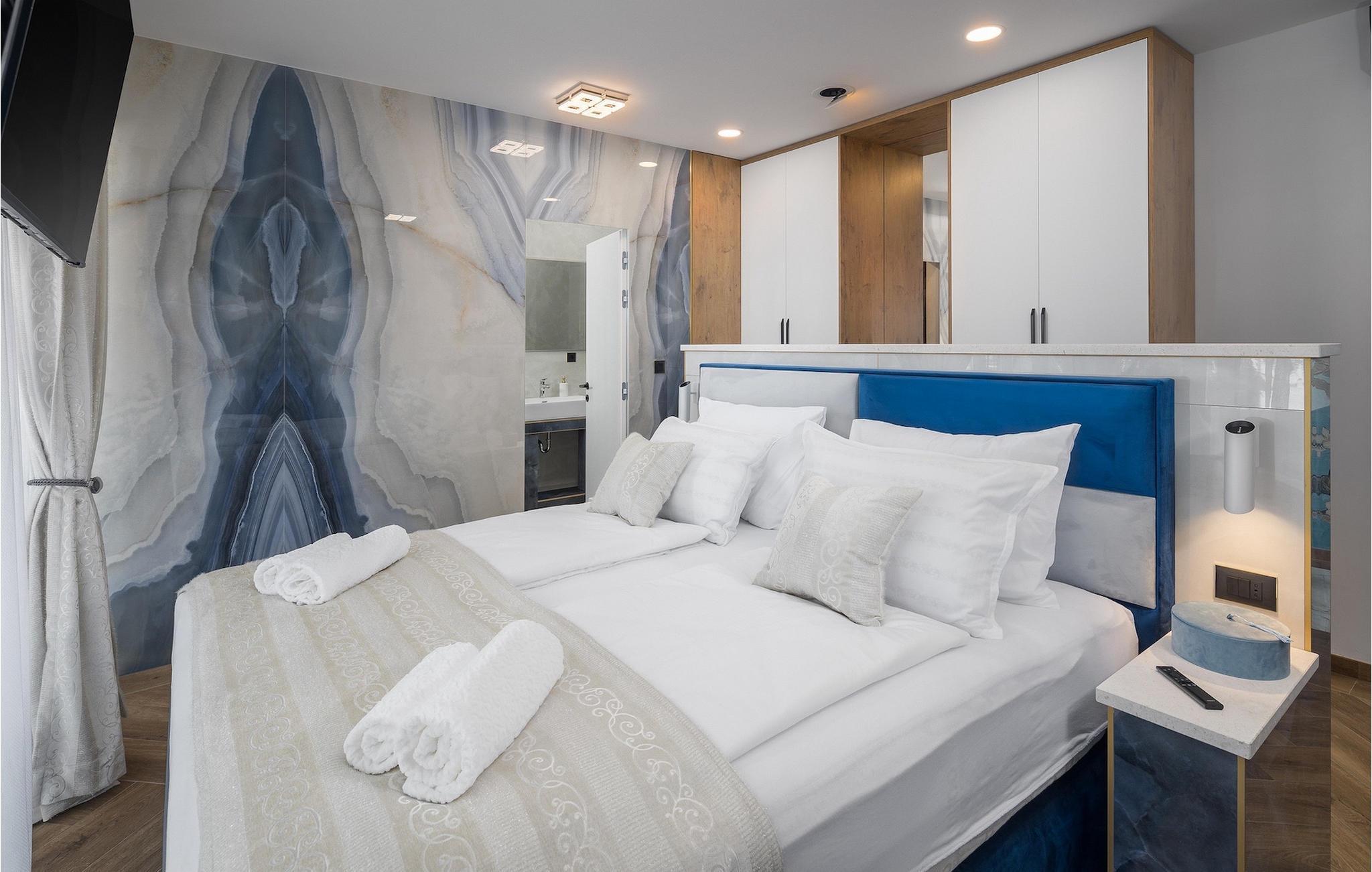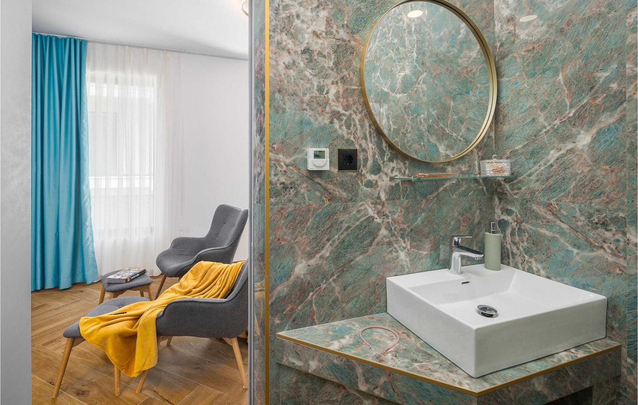 Hvis du går opp trappen til første etasje, finner du de resterende tre soverommene, hvert med sitt eget bad. Hvert rom er unikt innredet og kjennetegnes av at det er lagt vekt på hver minste detalj. Hovedsoverommet skiller seg imidlertid ut, med sin egen store balkong med utsikt over bassenget og utendørsterrassen. Å kunne drikke morgenkaffen i fred og ro på sin egen balkong gjør det mye lettere å våkne om morgenen, selv på ferie! Funtana er en liten by i Istria, som ligger ved kysten mellom byene Vrsar og Pore. Med sin beliggenhet rett ved kysten har du alle fordelene ved en sommerferie like i nærheten, med en rekke strender som Funtana, Puntica og hundestranden Bijela Uvala. Besøk den vakre byen Vrsar, bare 4 kilometer unna, eller ta en dagstur til Pore, som er mest kjent for Eufrasius-basilikaen. Basilikaen ble bygget på 600-tallet, under biskop Eufrasius og keiser Justinian I, og er et karakteristisk monument over bysantinsk kunst. Den er til og med oppført på UNESCOs verdensarvliste. Gå ikke glipp av endagsutflukter til den sentrale delen av Istria, der det finnes mange tavernaer og vingårder hvor du kan smake på istriske delikatesser som prosciutto og karakteristiske vintyper.