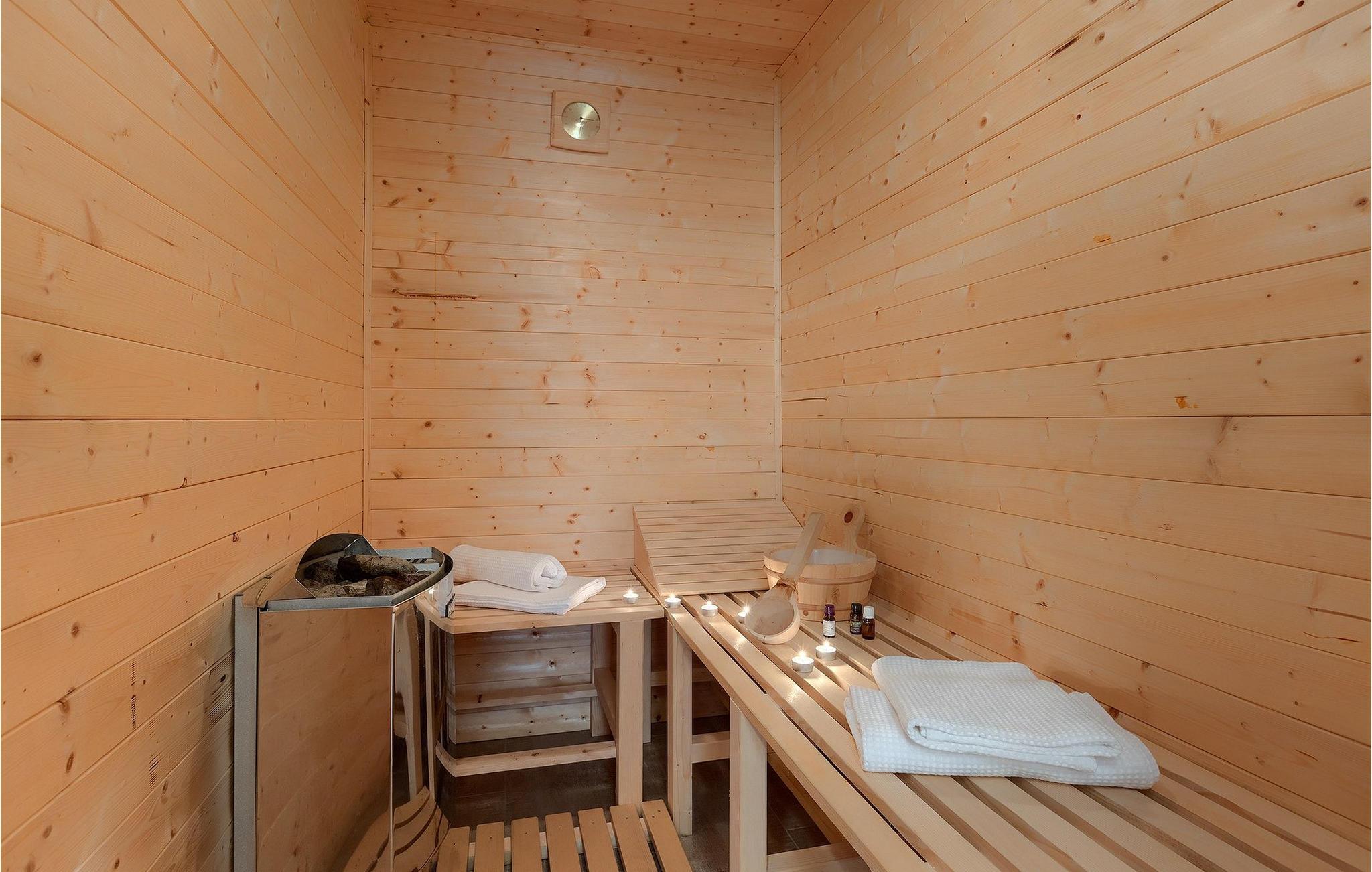 Første etasje har en koselig og romslig stue med peis, som er forbundet med kjøkken og spiseplass, samt et bad. I første etasje finner du også din egen badstue, som innbyr til avslapping i fred og ro. Øverste etasje består av fire soverom - tre med dobbeltseng og ett med to enkeltsenger - og tre bad. To av soverommene har eget bad og utgang til den overbygde terrassen, det ideelle stedet for morgenkaffen.