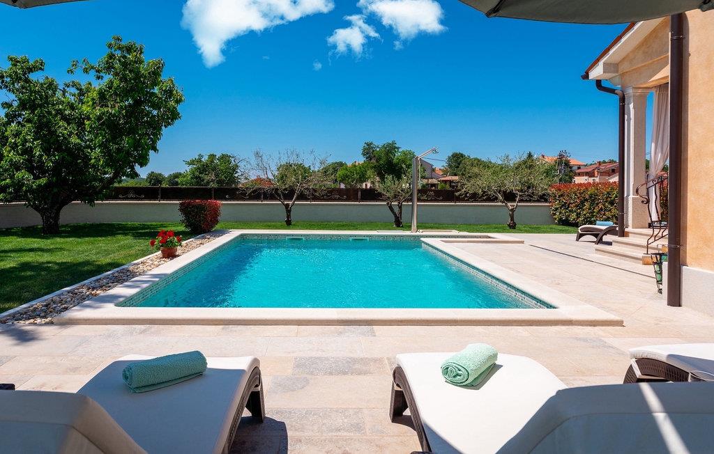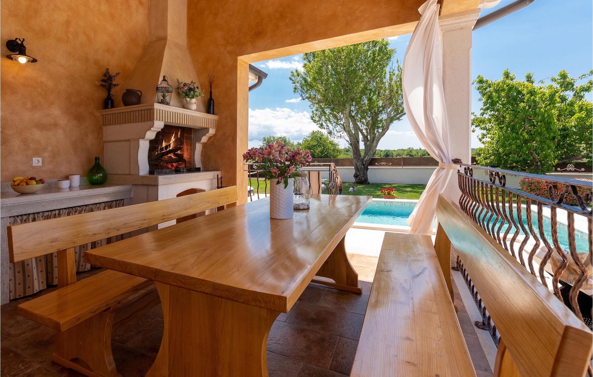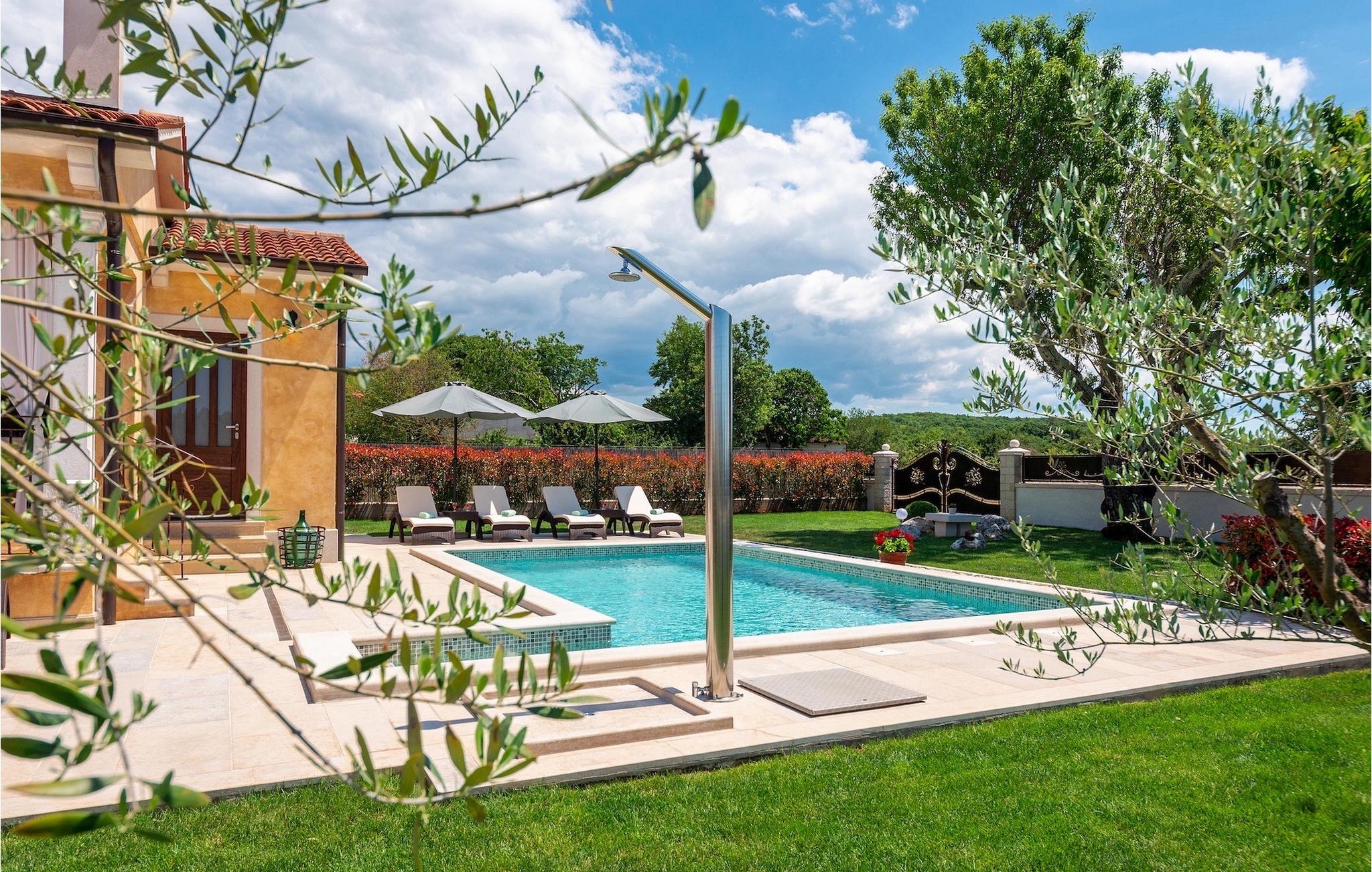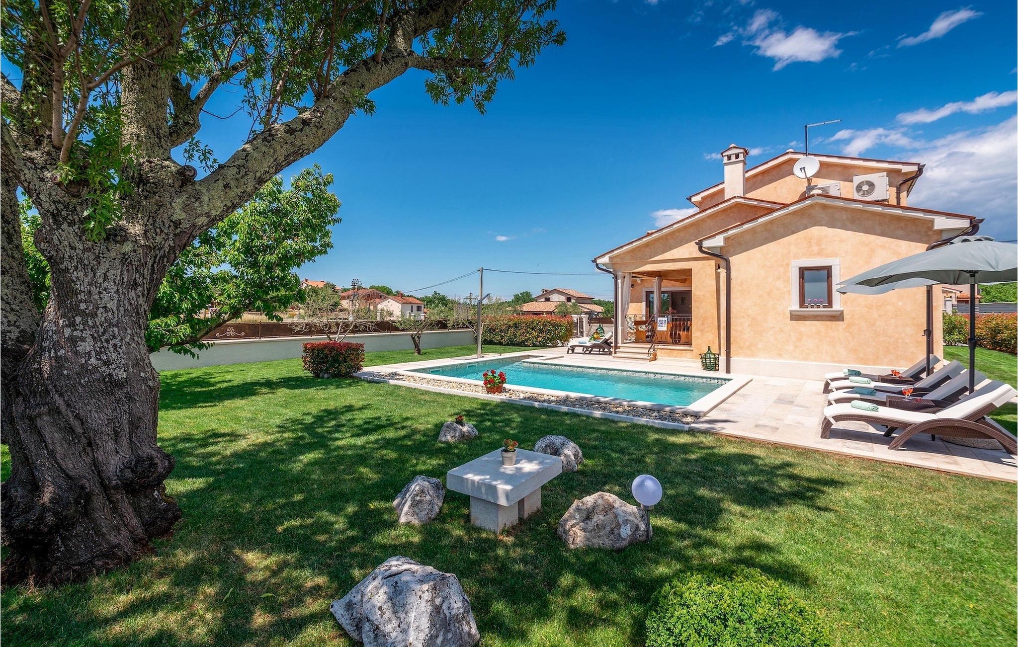 Hvis du ikke har lyst til å lage mat, er det til og med fire restauranter i gangavstand som serverer deilige regionale spesialiteter.Villa Rotonda har en praktisk beliggenhet ved veien som fører deg direkte til den magiske Lim-bukten, samt til den pittoreske fiskerlandsbyen Vrsar og de vakre strendene. Denne sjarmerende lille landsbyen med en rik historisk arv har utsikt over en skjærgård med 18 øyer som ligger i det store blå havet. Det er et paradis for seilere, men her tilbys også fallskjermhopping, paragliding og panoramaflyvninger, i tillegg til mange andre muligheter for en aktiv ferie. Hvis du liker fotturer, sykling og ridning, venter det fantastiske landskapet på deg. Naturreservatet Lim Bay er et berømt blåskjell- og fiskeoppdrettsanlegg og et yndet sted for friklatrere. I innlandet finner du det vakre skogreservatet Kontija og en rekke sjarmerende, autentiske byer og landsbyer. Men uansett hva du har i tankene: Du bør absolutt besøke Istrias berømte juveler, Porec og Rovinj.