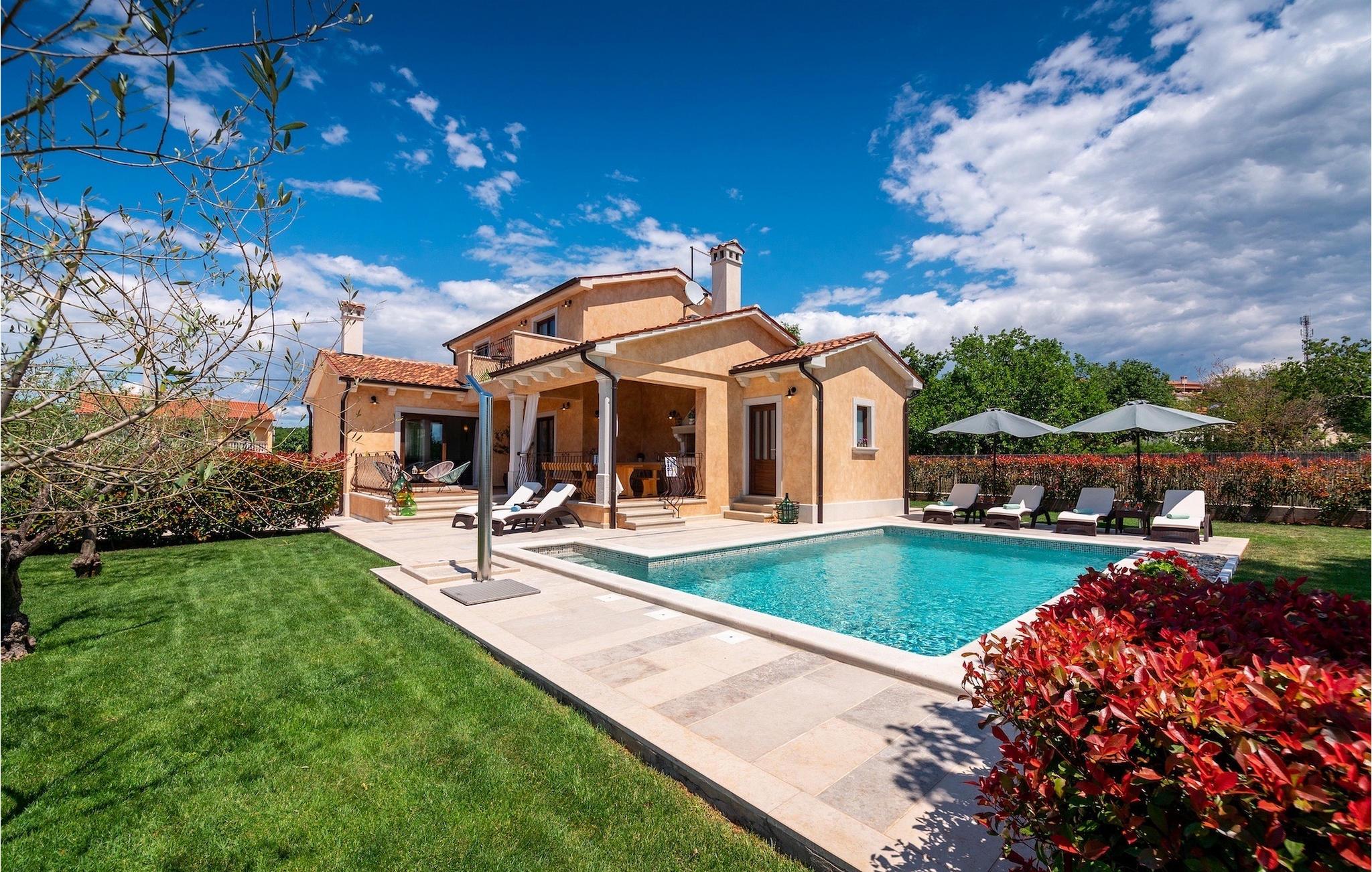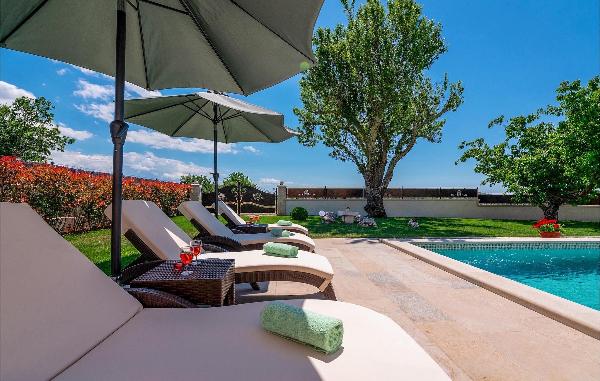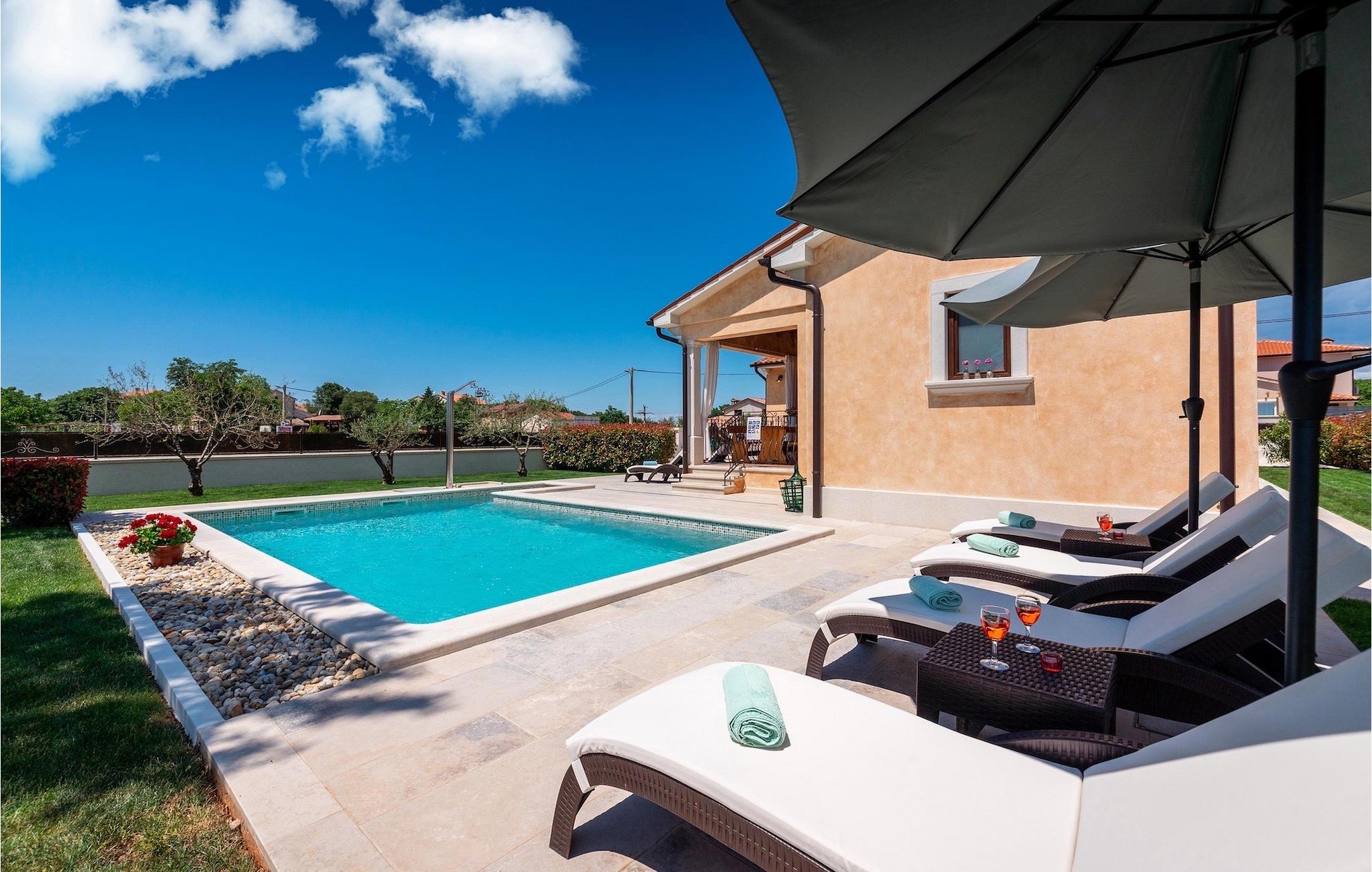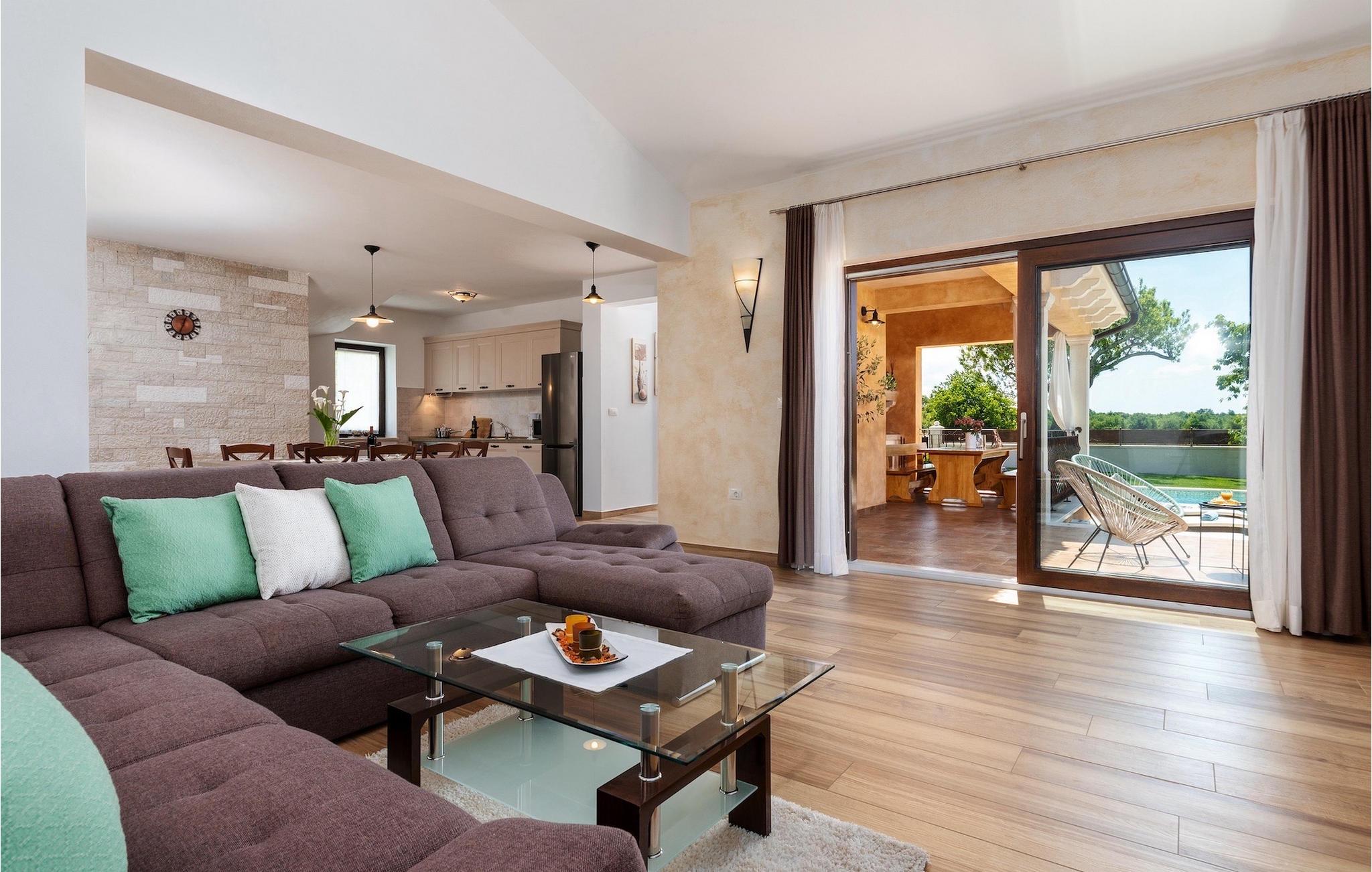 Hvis du ikke har lyst til å lage mat, er det til og med fire restauranter i gangavstand som serverer deilige regionale spesialiteter.Villa Rotonda har en praktisk beliggenhet ved veien som fører deg direkte til den magiske Lim-bukten, samt til den pittoreske fiskerlandsbyen Vrsar og de vakre strendene. Denne sjarmerende lille landsbyen med en rik historisk arv har utsikt over en skjærgård med 18 øyer som ligger i det store blå havet. Det er et paradis for seilere, men her tilbys også fallskjermhopping, paragliding og panoramaflyvninger, i tillegg til mange andre muligheter for en aktiv ferie. Hvis du liker fotturer, sykling og ridning, venter det fantastiske landskapet på deg. Naturreservatet Lim Bay er et berømt blåskjell- og fiskeoppdrettsanlegg og et yndet sted for friklatrere. I innlandet finner du det vakre skogreservatet Kontija og en rekke sjarmerende, autentiske byer og landsbyer. Men uansett hva du har i tankene: Du bør absolutt besøke Istrias berømte juveler, Porec og Rovinj.