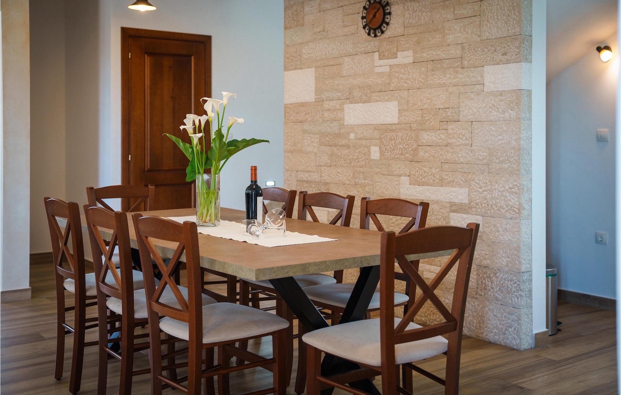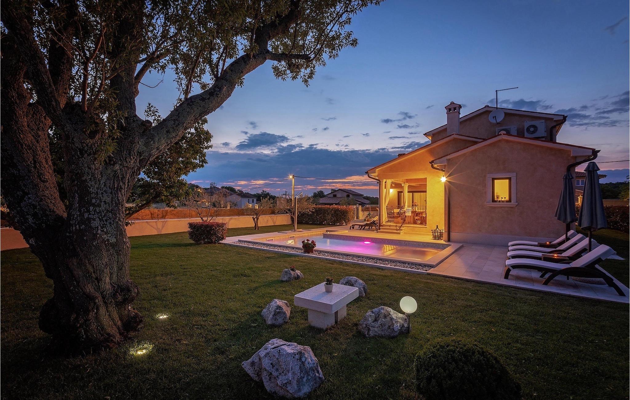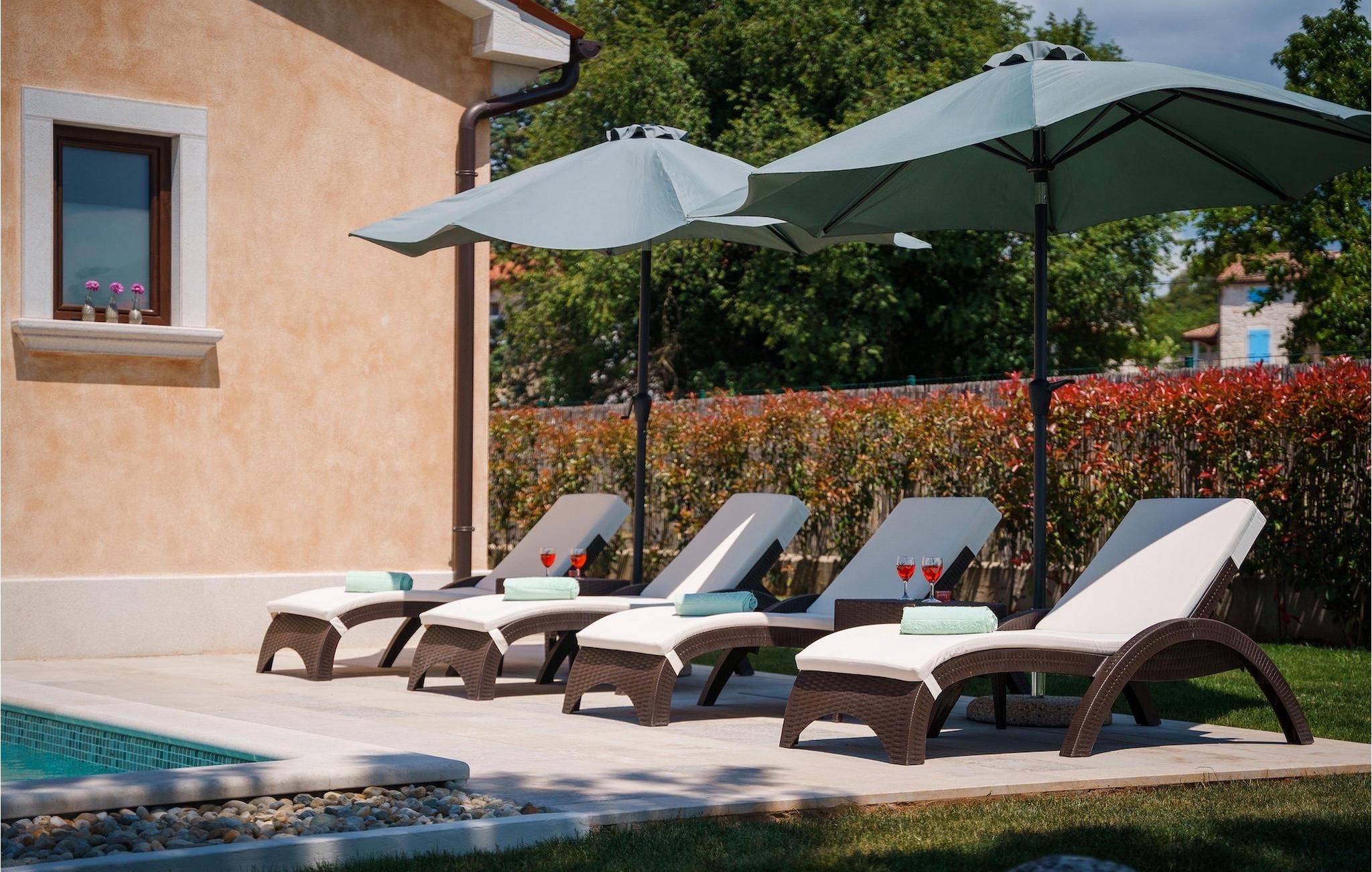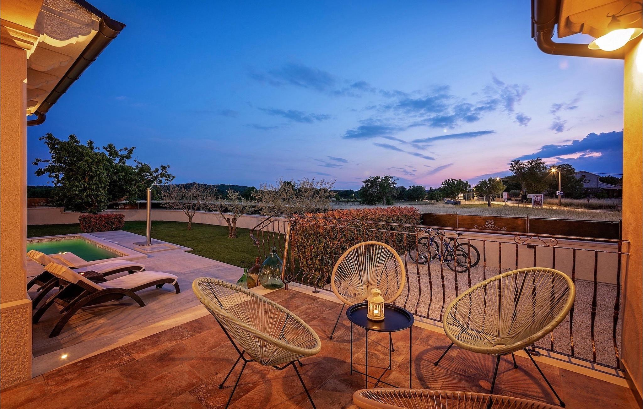 Hvis du ikke har lyst til å lage mat, er det til og med fire restauranter i gangavstand som serverer deilige regionale spesialiteter.Villa Rotonda har en praktisk beliggenhet ved veien som fører deg direkte til den magiske Lim-bukten, samt til den pittoreske fiskerlandsbyen Vrsar og de vakre strendene. Denne sjarmerende lille landsbyen med en rik historisk arv har utsikt over en skjærgård med 18 øyer som ligger i det store blå havet. Det er et paradis for seilere, men her tilbys også fallskjermhopping, paragliding og panoramaflyvninger, i tillegg til mange andre muligheter for en aktiv ferie. Hvis du liker fotturer, sykling og ridning, venter det fantastiske landskapet på deg. Naturreservatet Lim Bay er et berømt blåskjell- og fiskeoppdrettsanlegg og et yndet sted for friklatrere. I innlandet finner du det vakre skogreservatet Kontija og en rekke sjarmerende, autentiske byer og landsbyer. Men uansett hva du har i tankene: Du bør absolutt besøke Istrias berømte juveler, Porec og Rovinj.