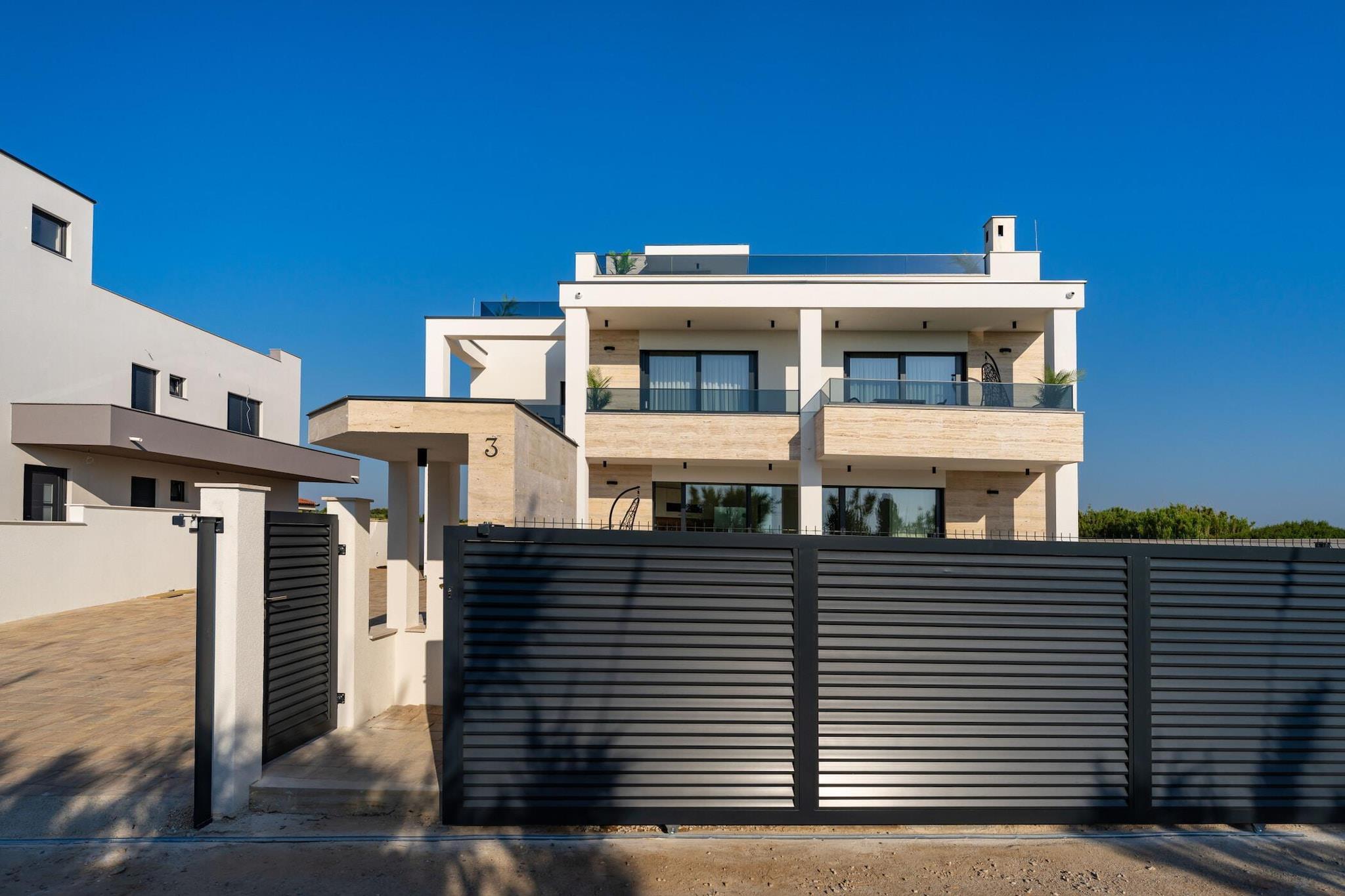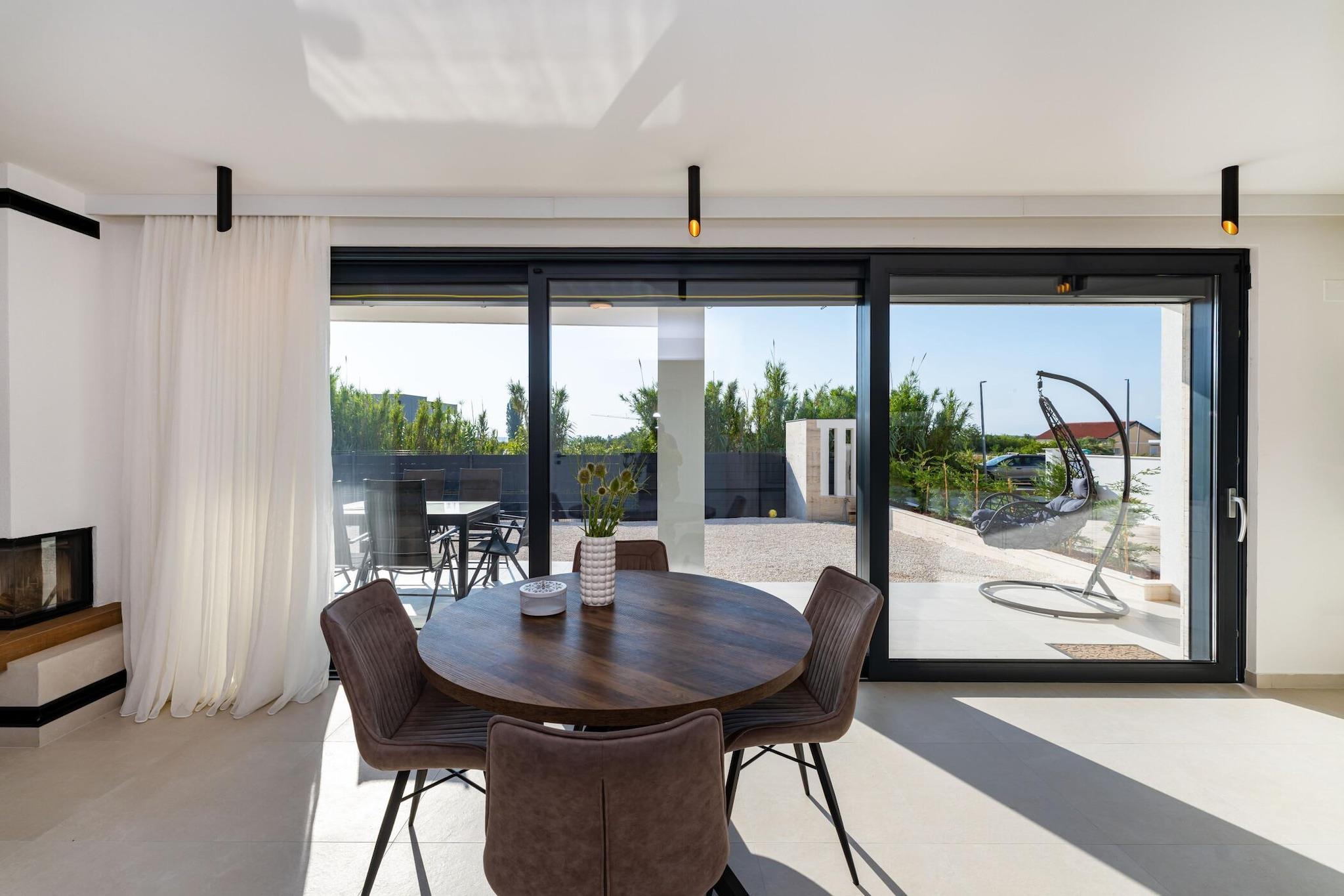 Denne nybygde leiligheten i Vrsi ligger bare en kort spasertur fra sandstranden og tilbyr en fredelig kystferie nær Zadar. Leiligheten er designet for opptil fem gjester og har et lyst, moderne interiør med to soverom med aircondition, et stilig bad og en romslig åpen stue og spisestue. Den overbygde terrassen er det perfekte stedet for avslappede måltider utendørs, omgitt av en hyggelig hageatmosfære. Gjestene kan benytte seg av den felles takterrassen, som er utstyrt med solsenger, spisebord og solbrus, og som tilbyr vakker utsikt over havet og fjellene. Andre fasiliteter inkluderer et velutstyrt kjøkken med oppvaskmaskin, vaskemaskin, høyhastighets Wi-Fi og privat parkering. Felles grillfasiliteter og gjennomtenkte detaljer som myggnett og smart-TV-er sørger for et komfortabelt og bekymringsfritt opphold. Leiligheten ligger bare 200 meter fra stranden, og beliggenheten gjør det enkelt å utforske attraksjonene i nærheten. Restauranter, butikker og bakerier ligger innen gangavstand, mens den historiske byen Zadar ligger 25 minutters kjøretur unna. Fra sandstrendene i Nin og Ljubac til øyene Pag og Vir, som alle er forbundet med broer, tilbyr området en rekke natur- og kulturskatter. Beach Apartment LaMag er et ideelt utgangspunkt for familier og venner som ønsker en avslappende ferie ved Adriaterhavet.