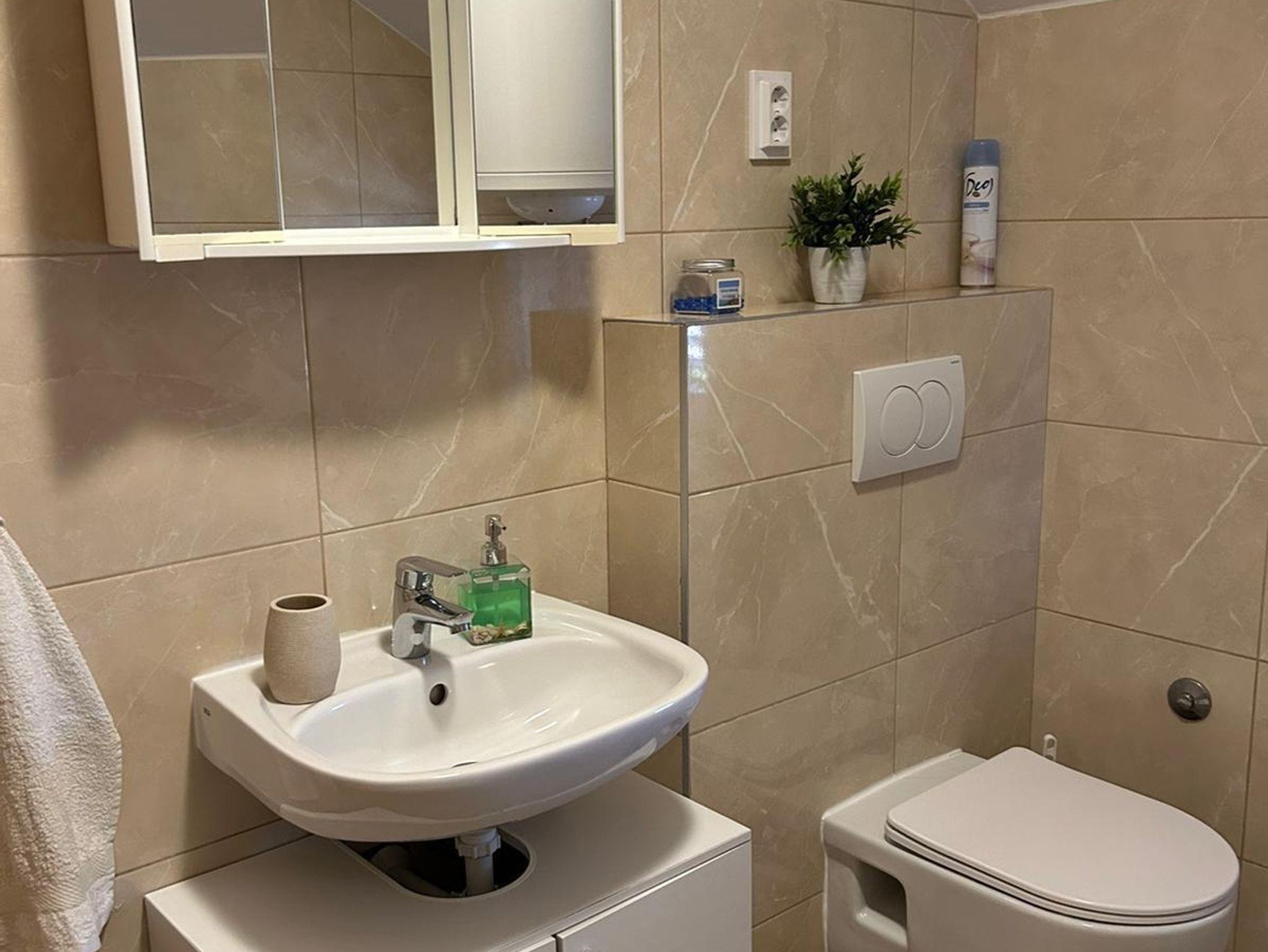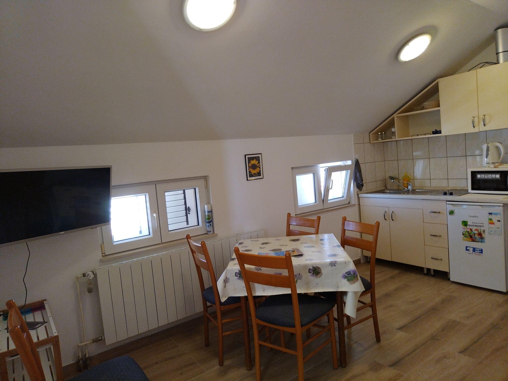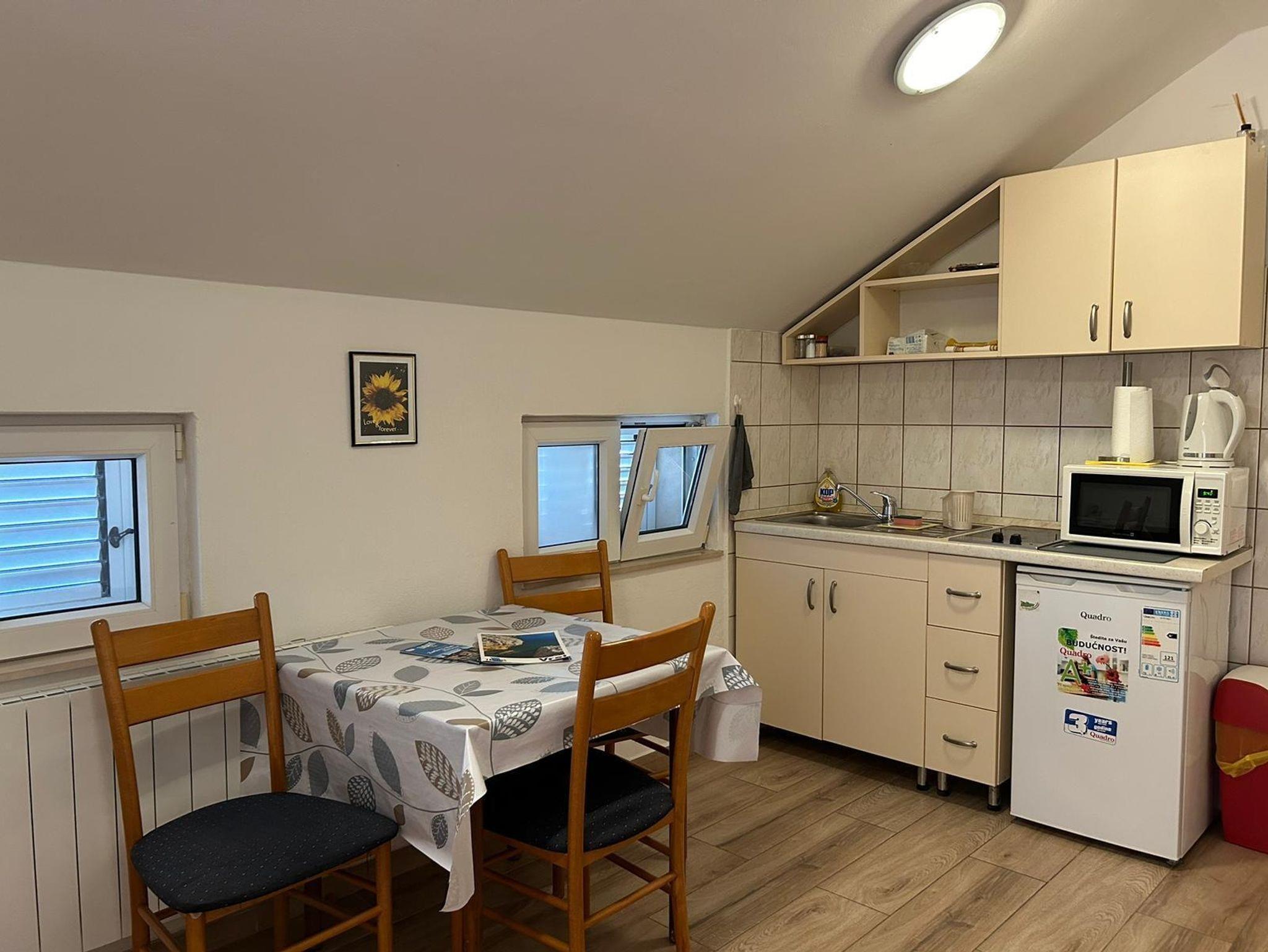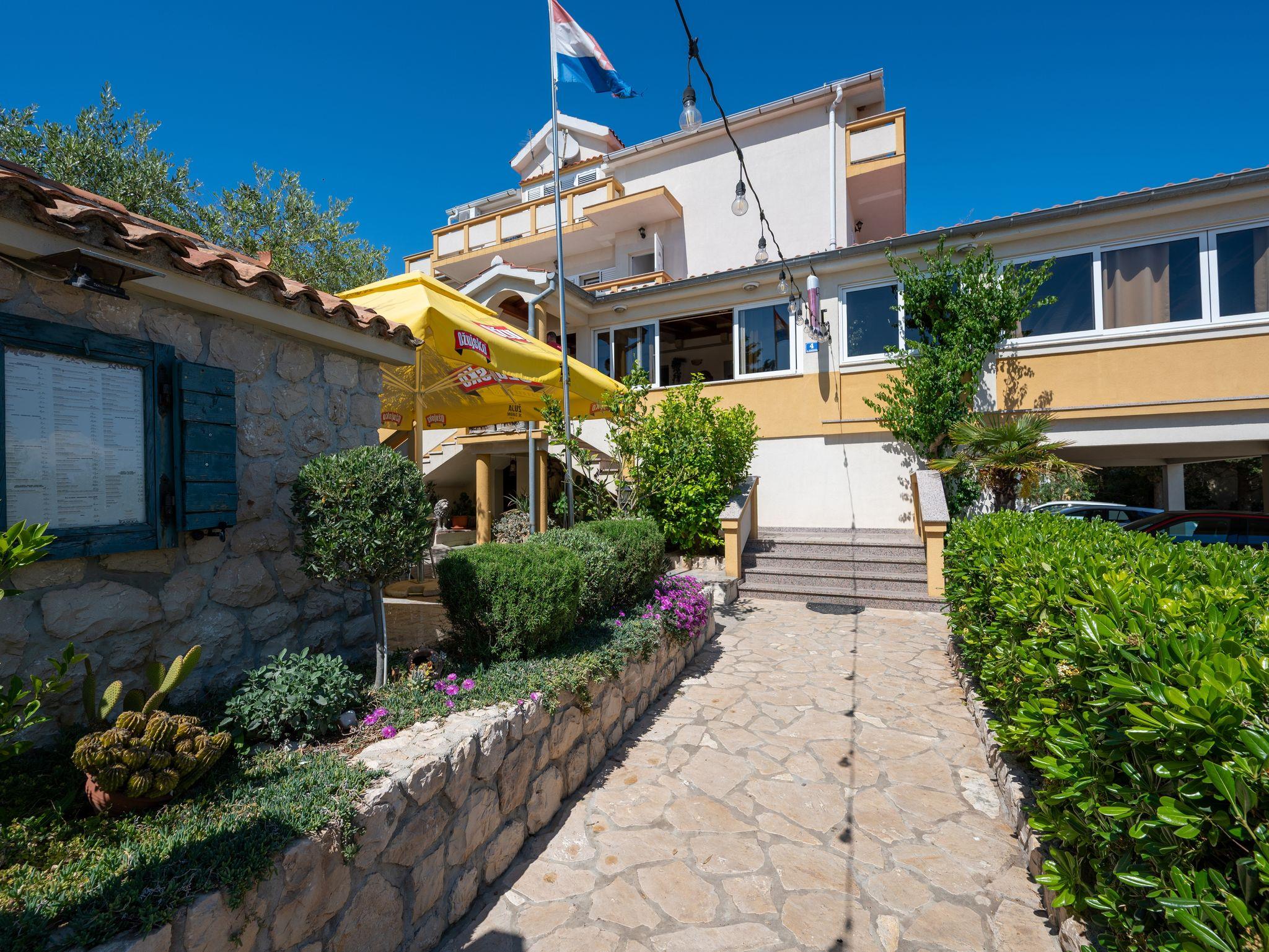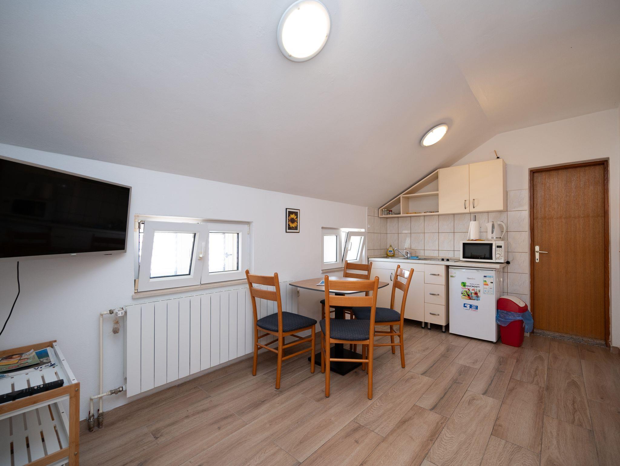 Ferienwohnung bietet Platz für 4 Gäste. Die Betten sind in Schlafzimmern, die es 1 gibt, und in Wohnzimmer, innerhalb einer Gesamtfläche von 28m2, angeordnet. Die Gäste haben eine eigene Terrasse zur Verfügung, auf der sie in warmen Sommernächten genießen können. Das Apartment bietet Meerblick. Es ist erlaubt, Speisen auf dem Gemeinschafts-Grill vorzubereiten. In der Unterkunftseinheit besteht die Möglichkeit des Mitbringens von Haustieren gegen Aufpreis. IM PREIS INBEGRIFFEN: Kurtaxe, Endreinigung, Klimatisierung, Zentralheizung, Parkplatz, Internet, Zusatzbett, Bügeleisen, Bügelbrett, Föhn. VERBINDLICHE ZUSÄTZLICHE KOSTEN: Aufzahlung für Kurzaufenthalte (prozentualer Zuschlag pro Nächtigungsanzahl: 30% - 1, 20% - 2, 10% - 3). UNVERBINDLICHE ZUSÄTZLICHE KOSTEN: Frühstück (12,00 €, 50% Nachlass für Kinder zwischen 4 und 12 Jahren, Kinder bis 4 Jahre sind frei.), Halbpension (25,00 €, 50% Nachlass für Kinder zwischen 4 und 12 Jahren, Kinder bis 4 Jahre sind frei.), Vollpension (40,00 €, 50% Nachlass für Kinder zwischen 4 und 12 Jahren, Kinder bis 4 Jahre sind frei.), Haustiere (5,00 € pro Nacht). Die Verfügbarkeit zusätzlicher Dienstleistungen in Ihrem reservierten Termin und die Preise derselben (falls nicht aufgeführt) müssen im Voraus überprüft werden. Zusätzliche Dienstleistungen die in der Zahlungsaufforderung nicht aufgeführt sind werden direkt beim Vermieter bezahlt, angenommen der Gast nutzt auch diese.