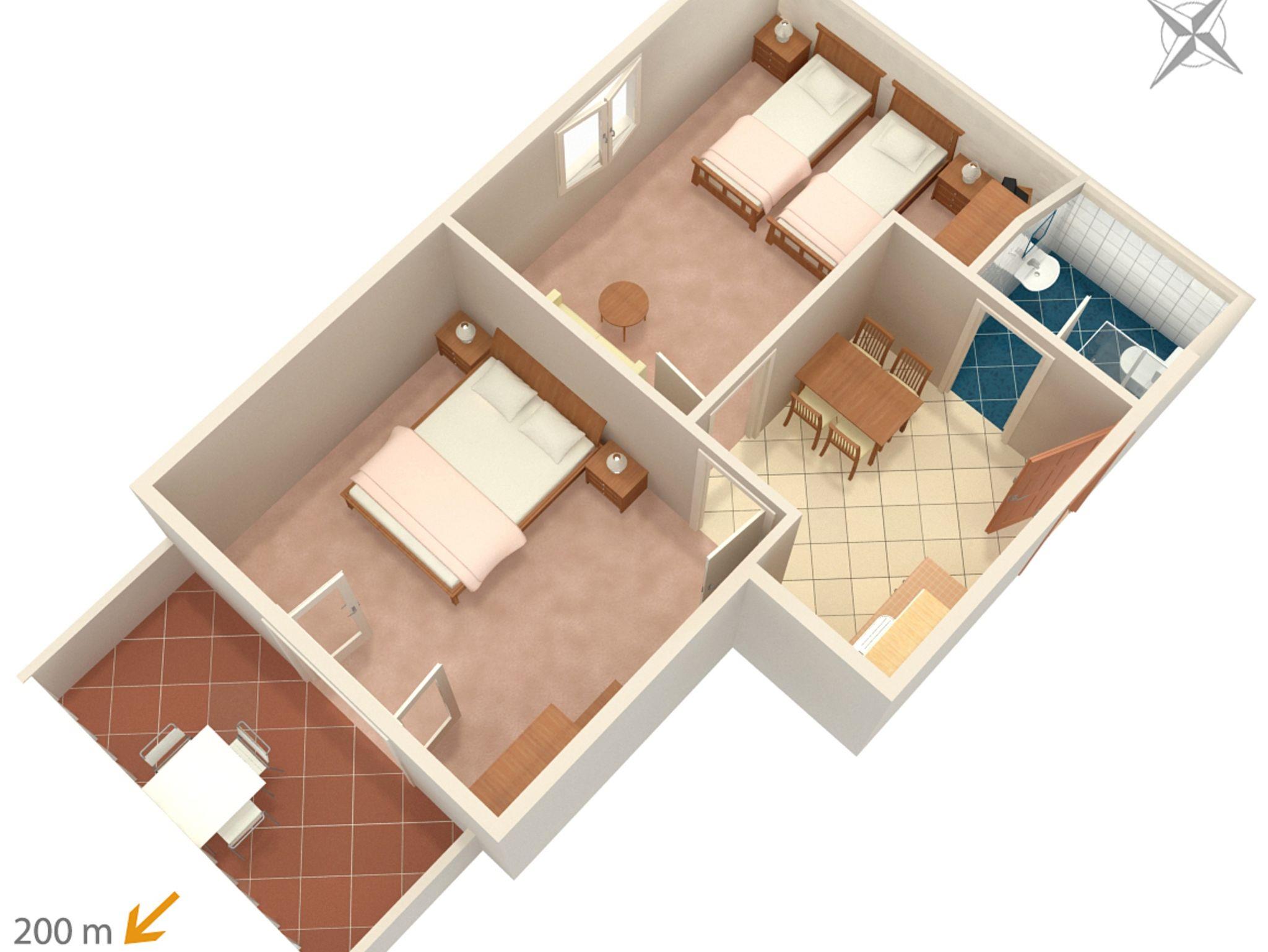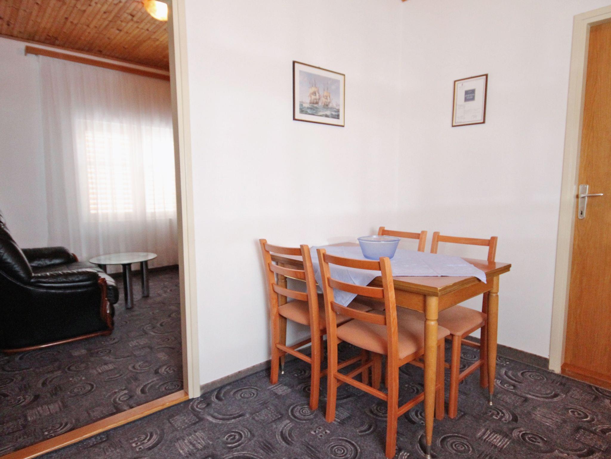 Ferienwohnung bietet Platz für 4 Gäste. Die Betten sind in Schlafzimmern, die es 2 gibt, innerhalb einer Gesamtfläche von 44m2, angeordnet. Die Gäste haben eine eigene Terrasse zur Verfügung, auf der sie in warmen Sommernächten genießen können. Das Apartment bietet Meerblick. Es ist erlaubt, Speisen auf dem Gemeinschafts-Grill vorzubereiten. IM PREIS INBEGRIFFEN: Kurtaxe, Endreinigung, Klimatisierung, Parkplatz, Internet, tragbarer Grill, 1 Bett für Kinder (im Preis enthalten). VERBINDLICHE ZUSÄTZLICHE KOSTEN: Aufzahlung für Kurzaufenthalte (prozentualer Zuschlag pro Nächtigungsanzahl: 30% - 1, 20% - 2, 10% - 3). Die Verfügbarkeit zusätzlicher Dienstleistungen in Ihrem reservierten Termin und die Preise derselben (falls nicht aufgeführt) müssen im Voraus überprüft werden. Zusätzliche Dienstleistungen die in der Zahlungsaufforderung nicht aufgeführt sind werden direkt beim Vermieter bezahlt, angenommen der Gast nutzt auch diese.