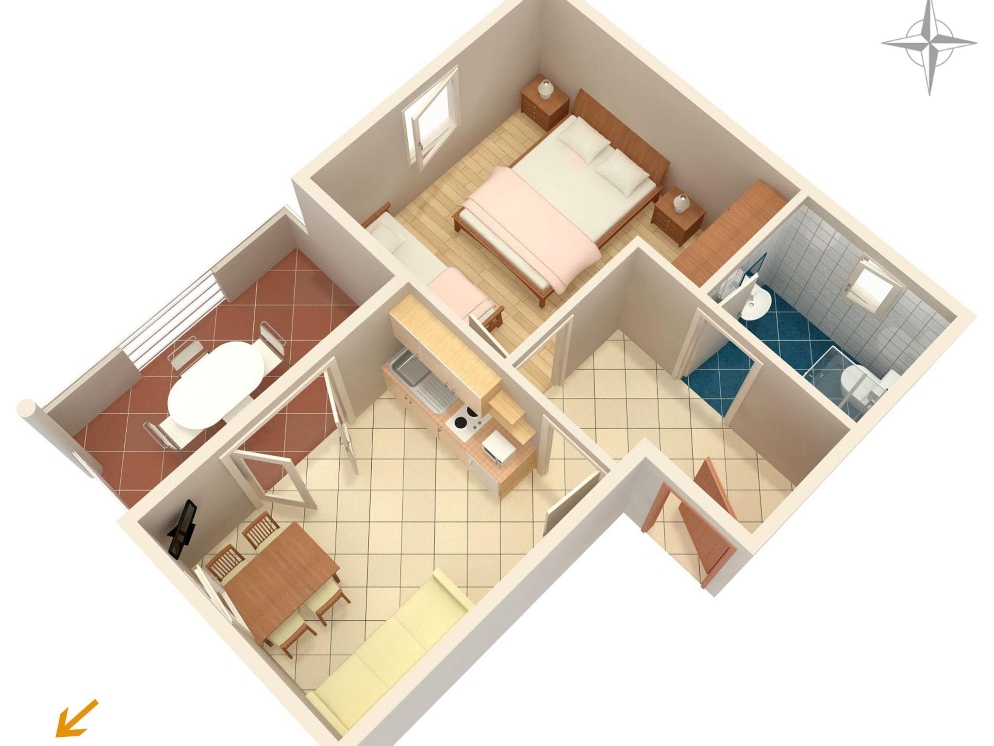 Ferienwohnung bietet Platz für 4 Gäste. Die Betten sind in Schlafzimmern, die es 1 gibt, und in Esszimmer, innerhalb einer Gesamtfläche von 30m2, angeordnet. Die Gäste haben eine eigene Terrasse zur Verfügung, auf der sie in warmen Sommernächten genießen können. Das Apartment bietet Meerblick. Es ist erlaubt, Speisen auf dem Gemeinschafts-Grill vorzubereiten. IM PREIS INBEGRIFFEN: Kurtaxe, Endreinigung, Klimatisierung, Parkplatz, Internet, Wäschewaschen, Kinderbett, Bügeleisen, Bügelbrett, Föhn, Sonnenschirm, Liegestühle. VERBINDLICHE ZUSÄTZLICHE KOSTEN: Aufzahlung für Kurzaufenthalte (prozentualer Zuschlag pro Nächtigungsanzahl: 30% - 1, 20% - 2, 10% - 3). UNVERBINDLICHE ZUSÄTZLICHE KOSTEN: Zusatzbett (8,00 € pro Nacht). Die Verfügbarkeit zusätzlicher Dienstleistungen in Ihrem reservierten Termin und die Preise derselben (falls nicht aufgeführt) müssen im Voraus überprüft werden. Zusätzliche Dienstleistungen die in der Zahlungsaufforderung nicht aufgeführt sind werden direkt beim Vermieter bezahlt, angenommen der Gast nutzt auch diese.