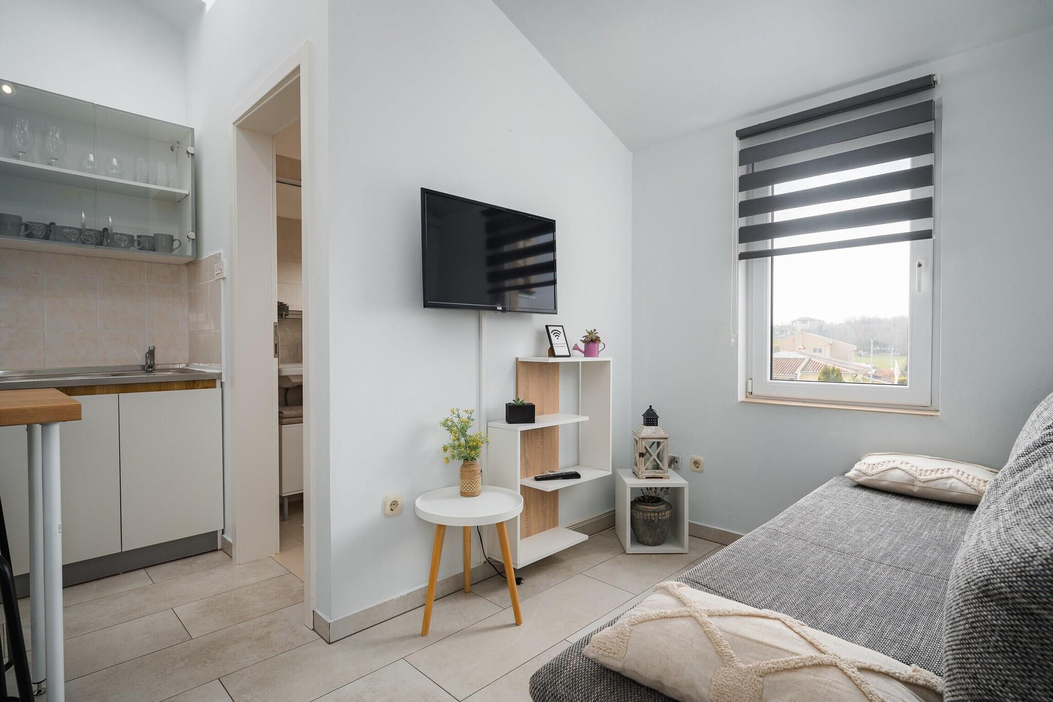 Ferieboligen har 4 soverom, med plass til opptil 10 gjester, med mulighet for ekstra senger tilgjengelig på forespørsel. Stuen har en koselig sofa, ideell for avslapning, mens den private balkongen lar gjestene nyte utendørsutsikten. Denne eiendommen er kjæledyrvennlig, og sikrer et innbydende miljø for dine lodne følgesvenner. Gratis Wi-Fi er tilgjengelig i hele hjemmet, og utendørsparkering er tilgjengelig på stedet. Gjestene kan også dra nytte av tilleggstjenester som vaskeritjenester, grill og klimaanlegg. Eiendommen har en ideell beliggenhet, og tilbyr praktisk tilgang til flere viktige attraksjoner i området. Stranden ligger bare 1 km unna, og tilbyr både stein- og sandstrandmuligheter for besøkende. Sentrum ligger også i nærheten, noe som gjør det enkelt å utforske lokale butikker, restauranter og historiske steder. For de som søker eventyr, ligger Aquacolors badeland bare 5 km unna, og Funtana Dino Park ligger 9 km fra hjemmet. Den nærmeste busstasjonen ligger 3 km unna, mens både Pula lufthavn (58 km) og Pula jernbanestasjon (59 km) er lett tilgjengelig for gjester som reiser med fly eller tog. Eiendommen er utstyrt med et fullt uavhengig kjøkken med gasskomfyr, kjøleskap, mikrobølgeovn, stekeovn og oppvaskmaskin. I tillegg til standard kjøkkenutstyr som servise, bestikk og kjøkkenutstyr, er kjøkkenet også utstyrt med kaffemaskin, brødrister og vannkoker for ekstra bekvemmelighet. Andre fasiliteter inkluderer satellitt-TV med engelske og tyske kanaler, varme- og kjølesystemer og en vaskemaskin for å sikre et problemfritt opphold.
