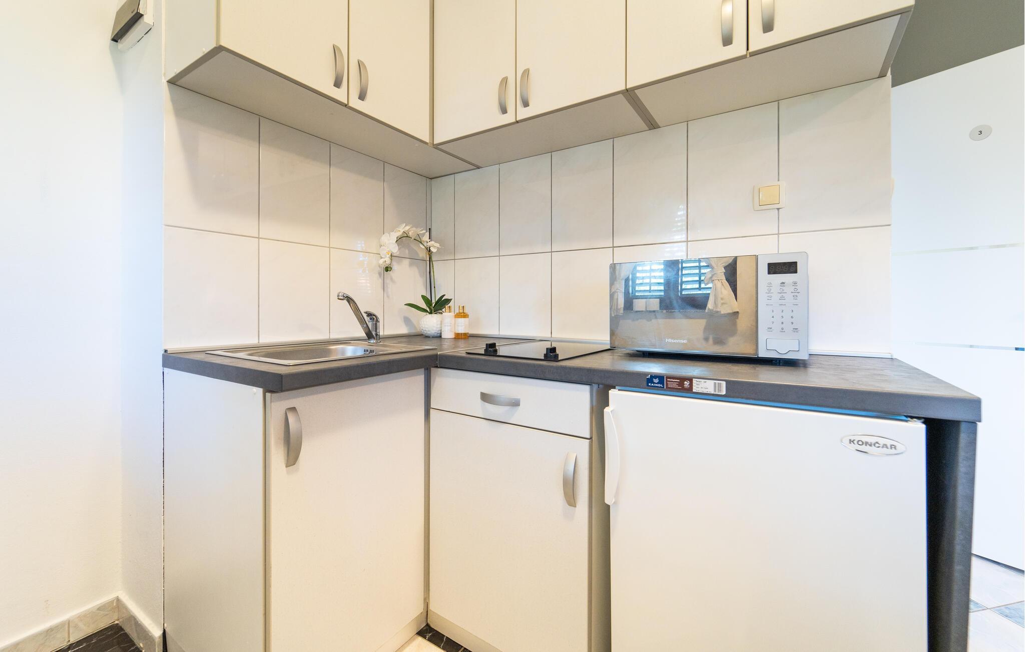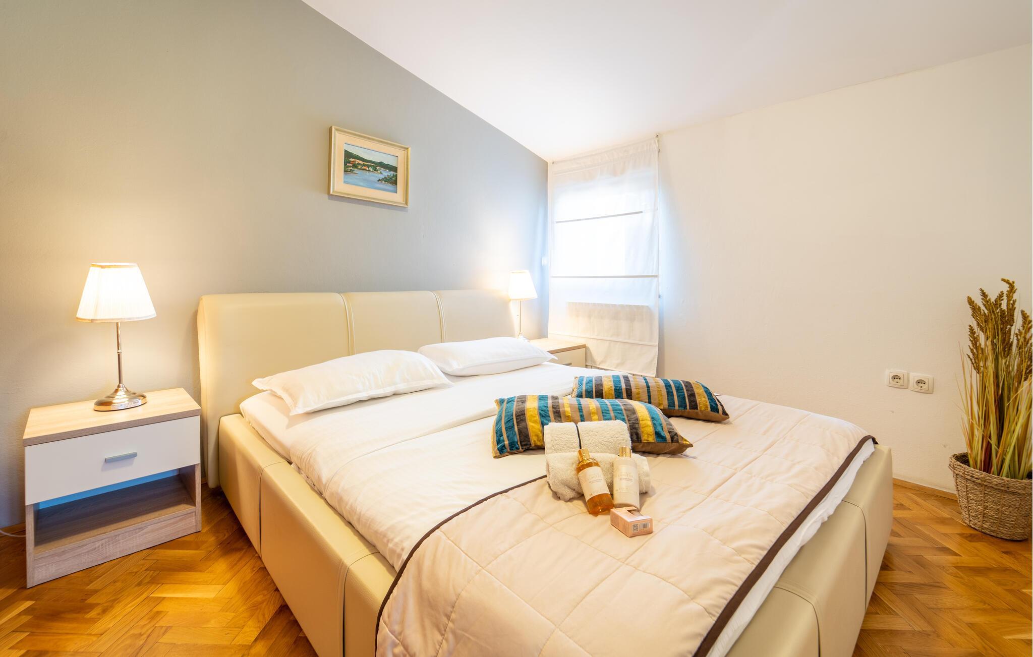 Enten dere er et par eller en liten familie, kan dere se frem til en avslappende ferie i denne innbydende og koselige ferieleiligheten. Den elegante atmosfæren i leiligheten etterlater ingenting å ønske, og lover deg vellykkede timer med å se på film og spise måltider sammen, omgitt av en moderne atmosfære. Begynn morgenen med dampende kaffe på balkongen og la blikket vandre over vannet og landskapet.