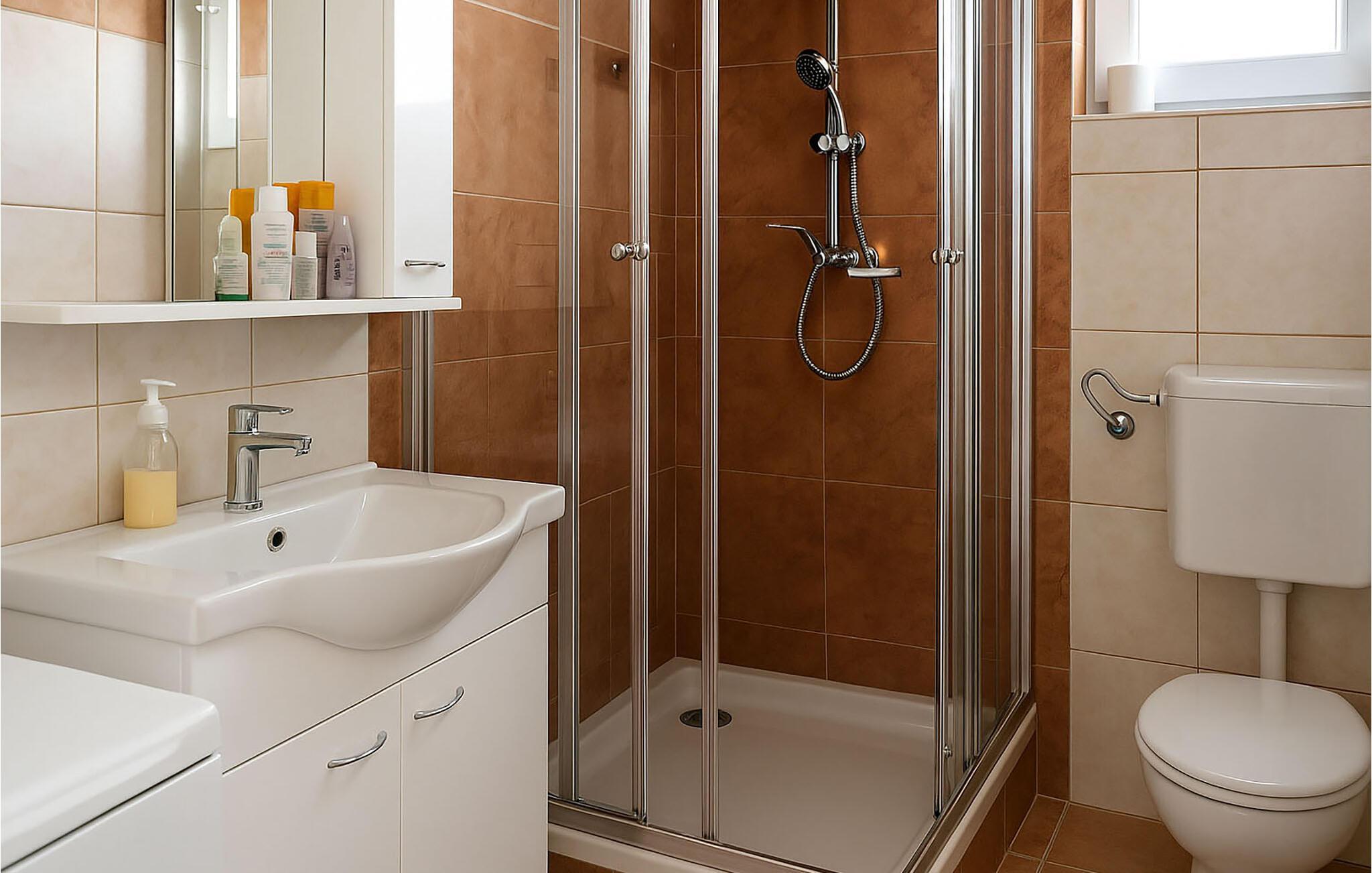 Baderom 5m2 (nr. 3) - WC: Varmt og kaldt vann. Dusj