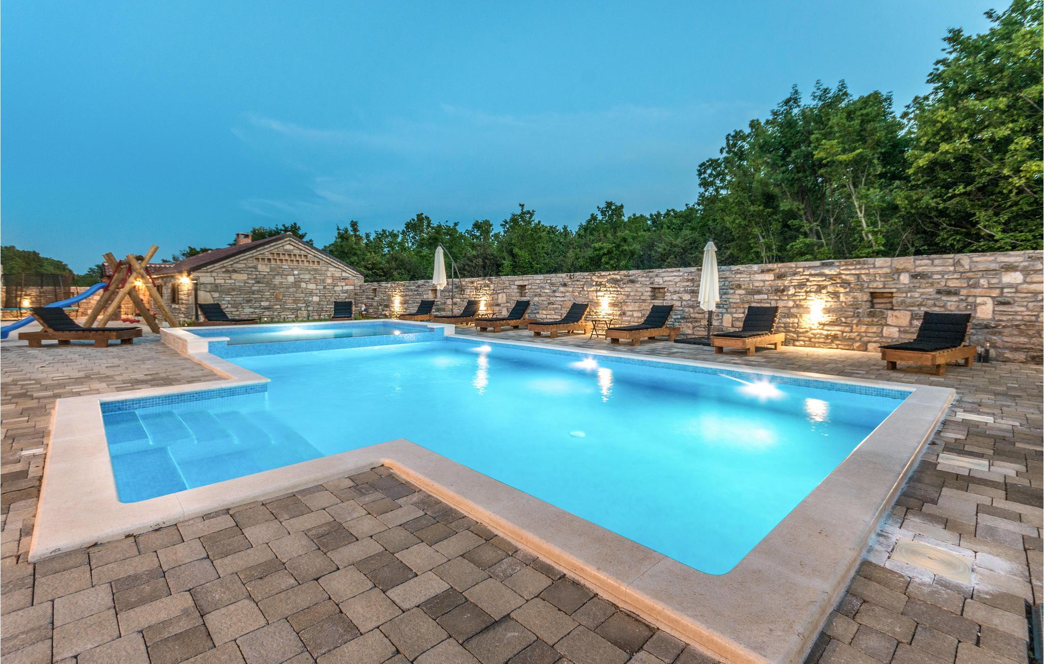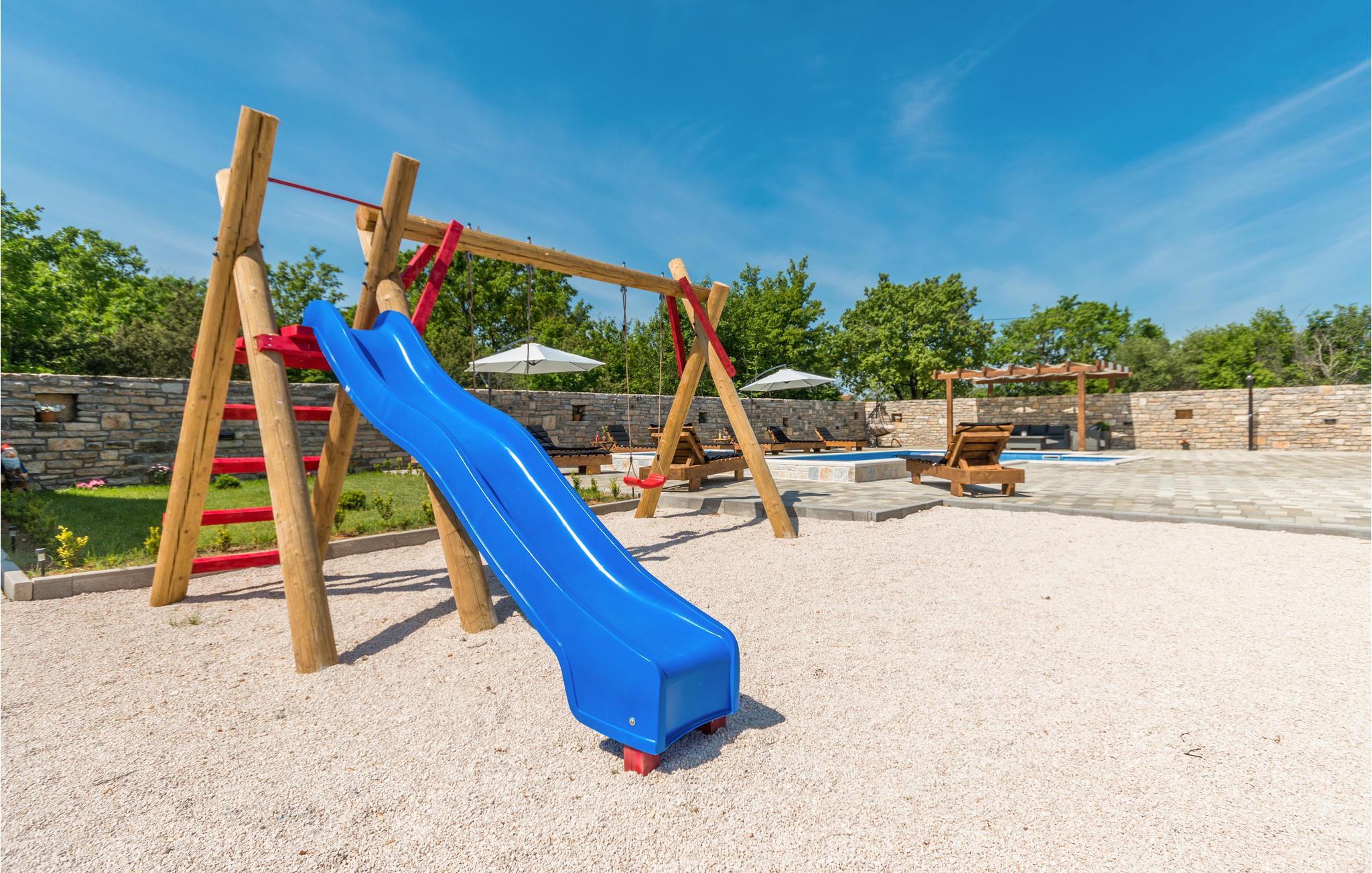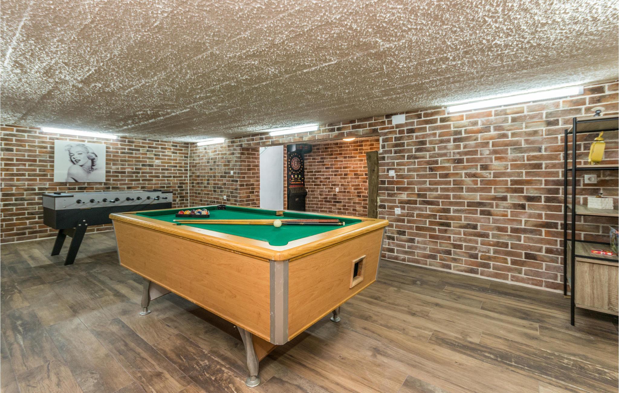 Dette store huset med en vakker beliggenhet vekk fra kysten er ideelt egnet for en bekymringsløs, avslappet ferie i en sosial gruppe. Fremfor alt vil du glede deg over god plass til å spre deg, da det er plass til opptil 10 personer på over 350 kvadratmeter boareal. Alt er også forberedt for mindre barn, slik at en eller to vennlige familier kan feriere her sammen. Tren i treningsstudioet eller ta en forfriskende dukkert i det store bassenget før du drar ut på en ny dag med aktiviteter og utforskning.