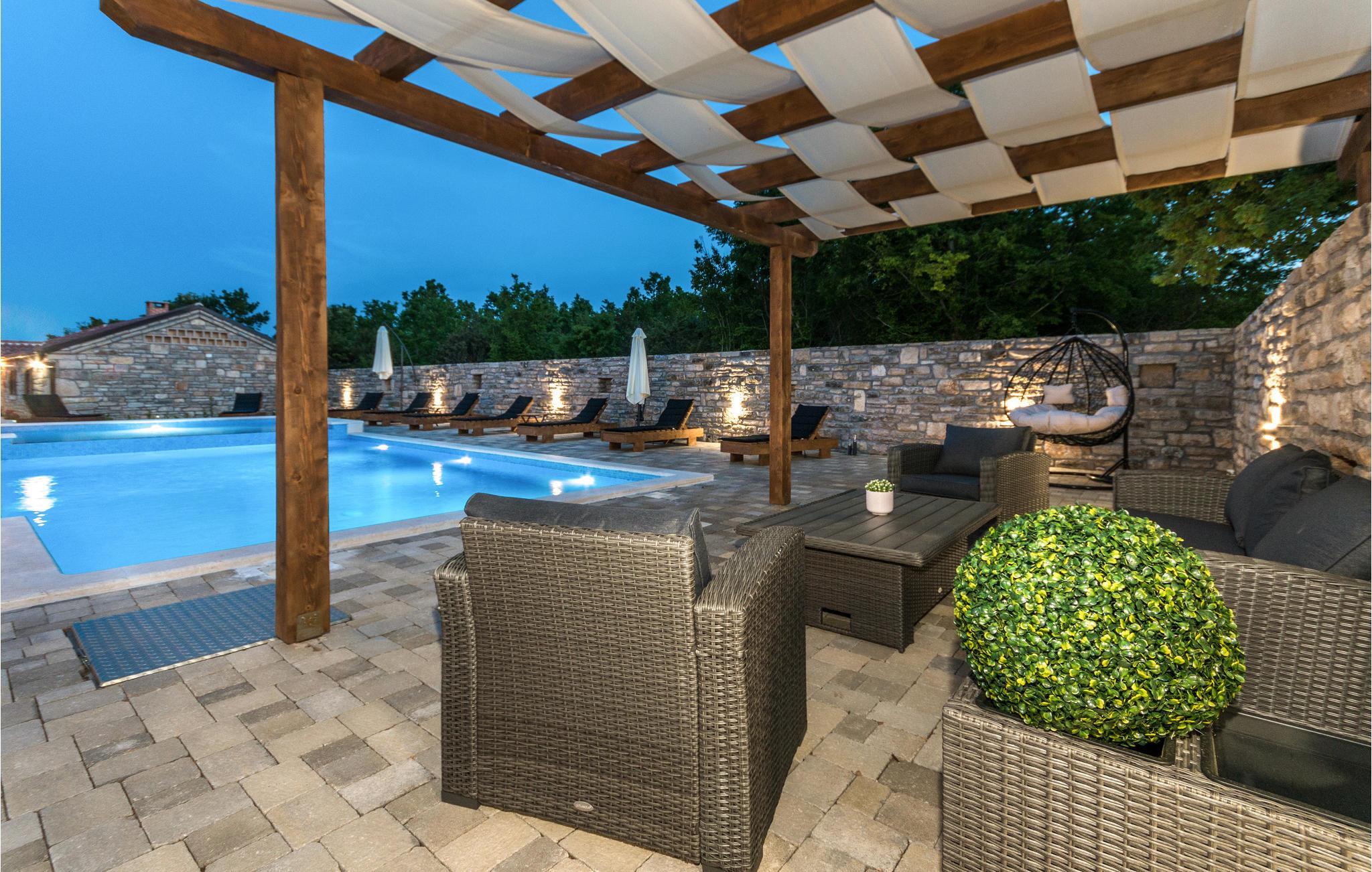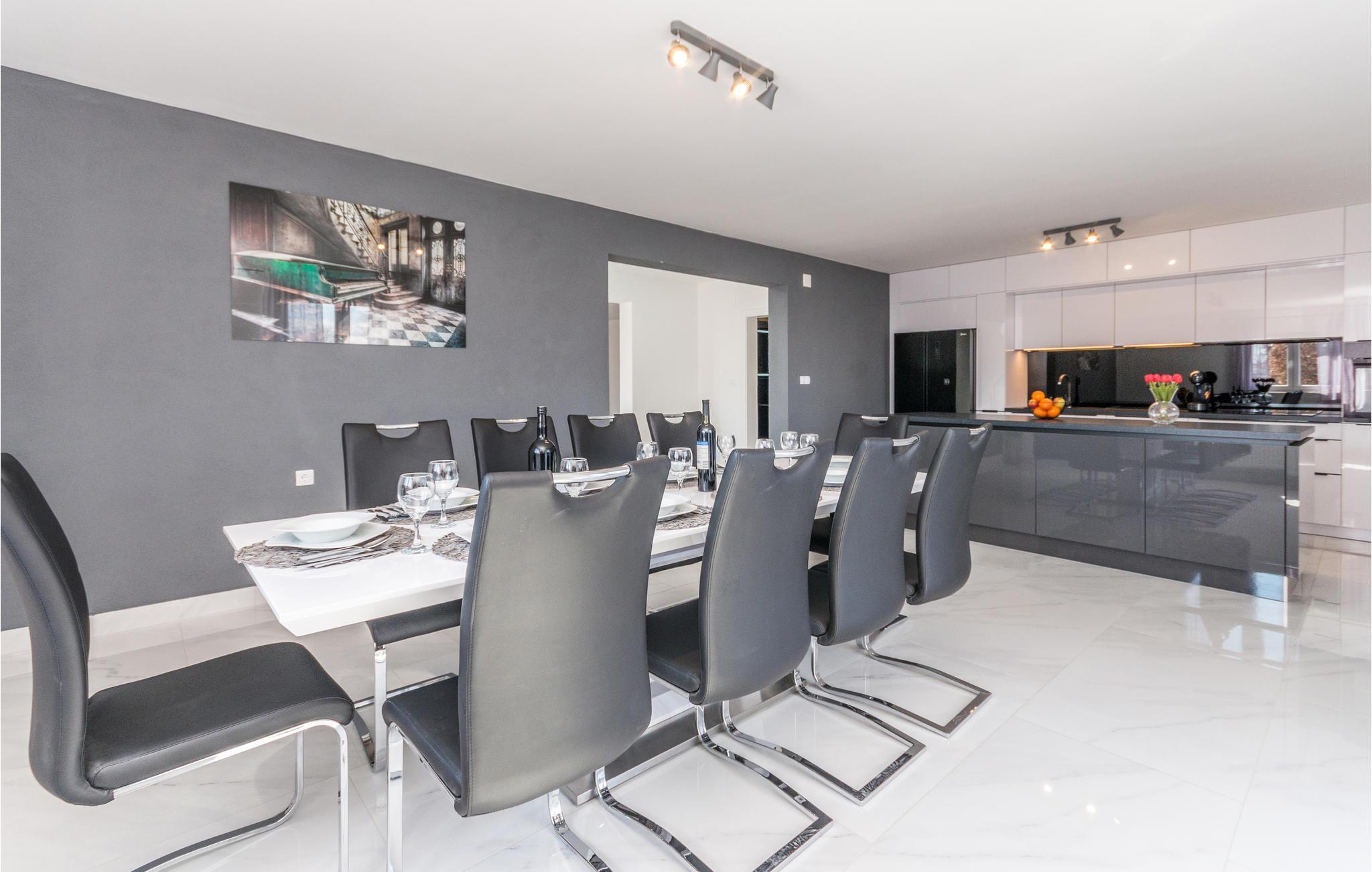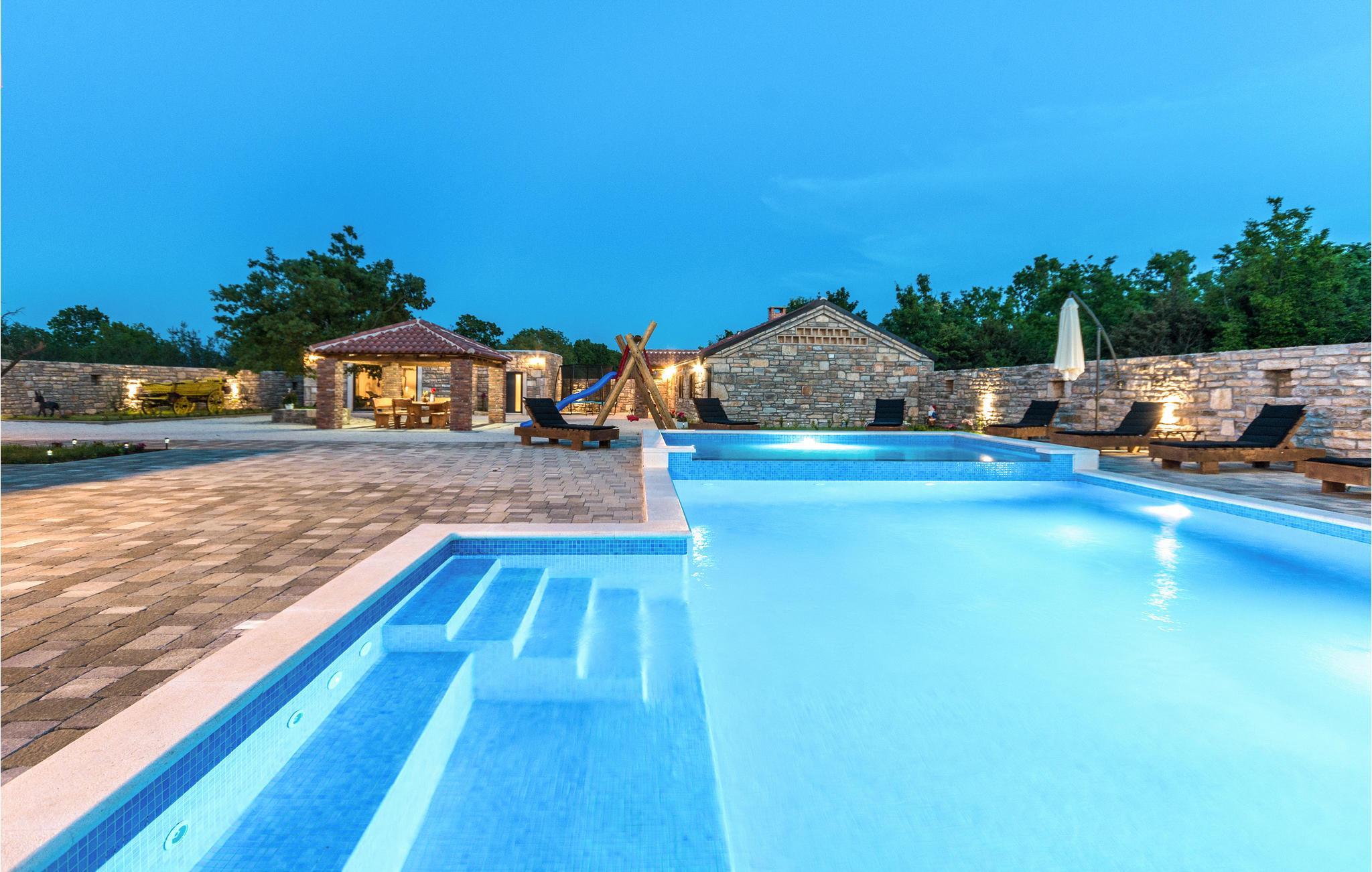 Dette store huset med en vakker beliggenhet vekk fra kysten er ideelt egnet for en bekymringsløs, avslappet ferie i en sosial gruppe. Fremfor alt vil du glede deg over god plass til å spre deg, da det er plass til opptil 10 personer på over 350 kvadratmeter boareal. Alt er også forberedt for mindre barn, slik at en eller to vennlige familier kan feriere her sammen. Tren i treningsstudioet eller ta en forfriskende dukkert i det store bassenget før du drar ut på en ny dag med aktiviteter og utforskning.