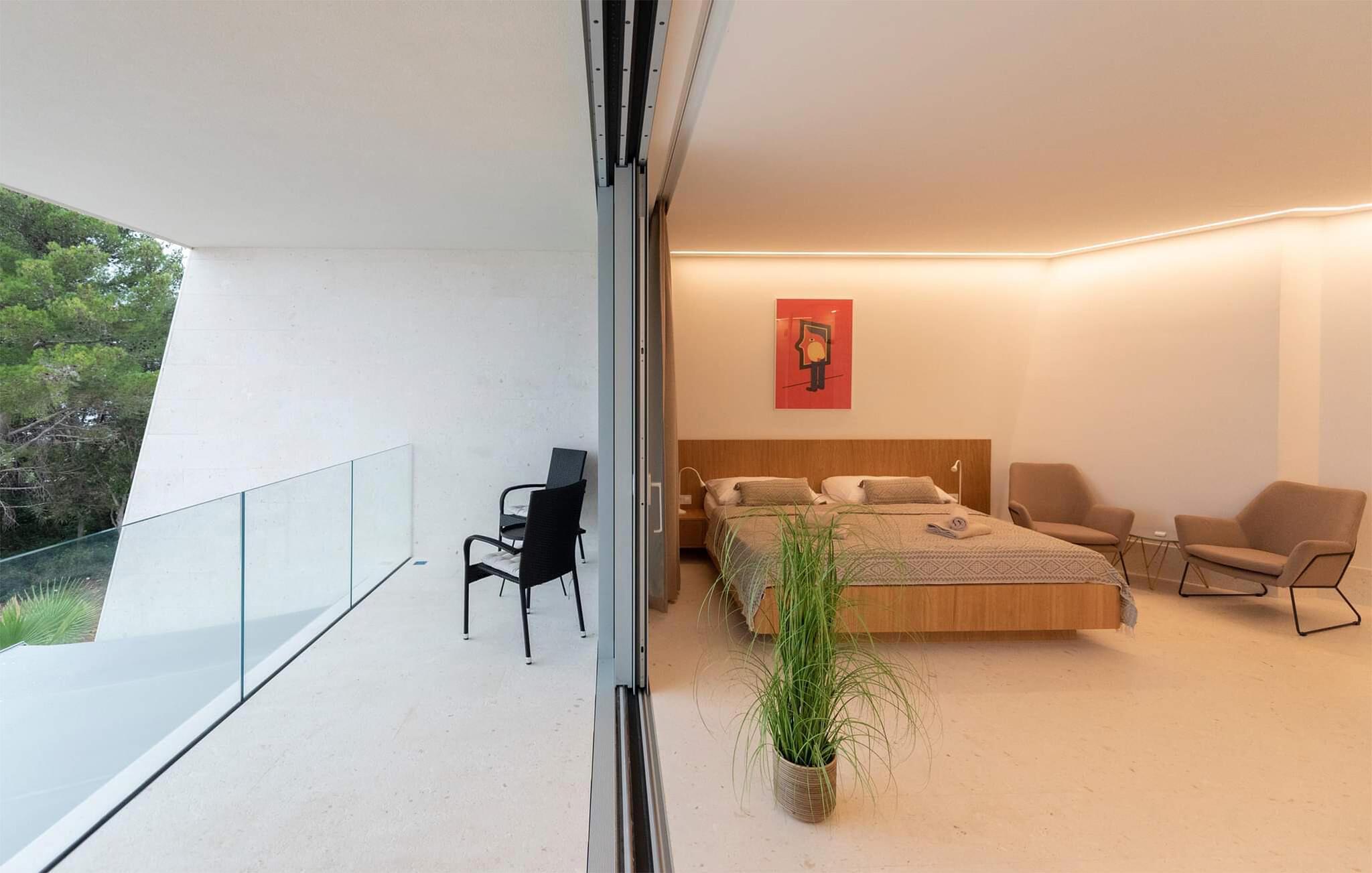 Moderne og arkitektonisk tiltalende feriehus med basseng og havutsikt.